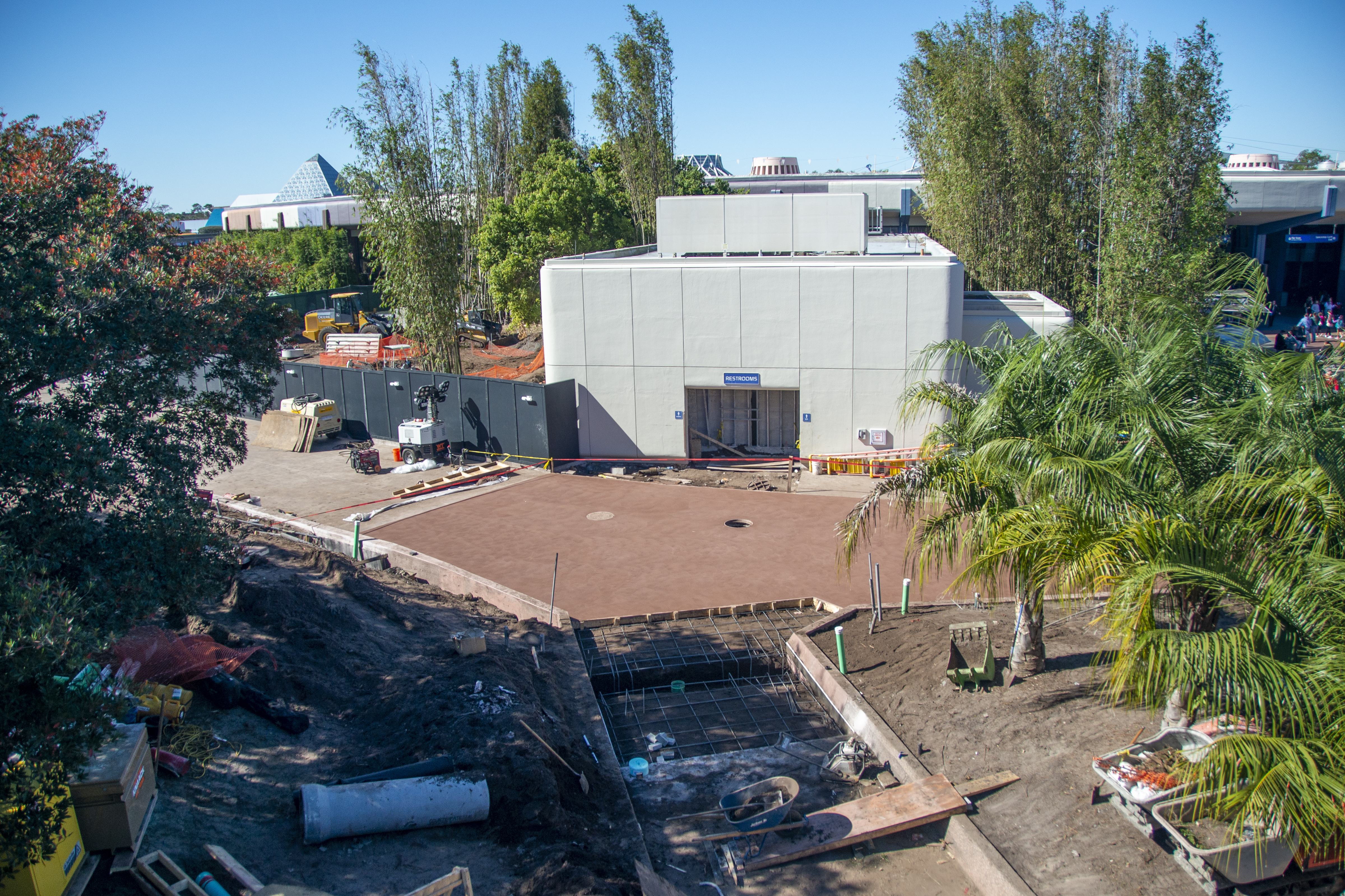 Paving of the walkway that will connect the restrooms by Test Track to the playground near World Showcase is nearly completed.