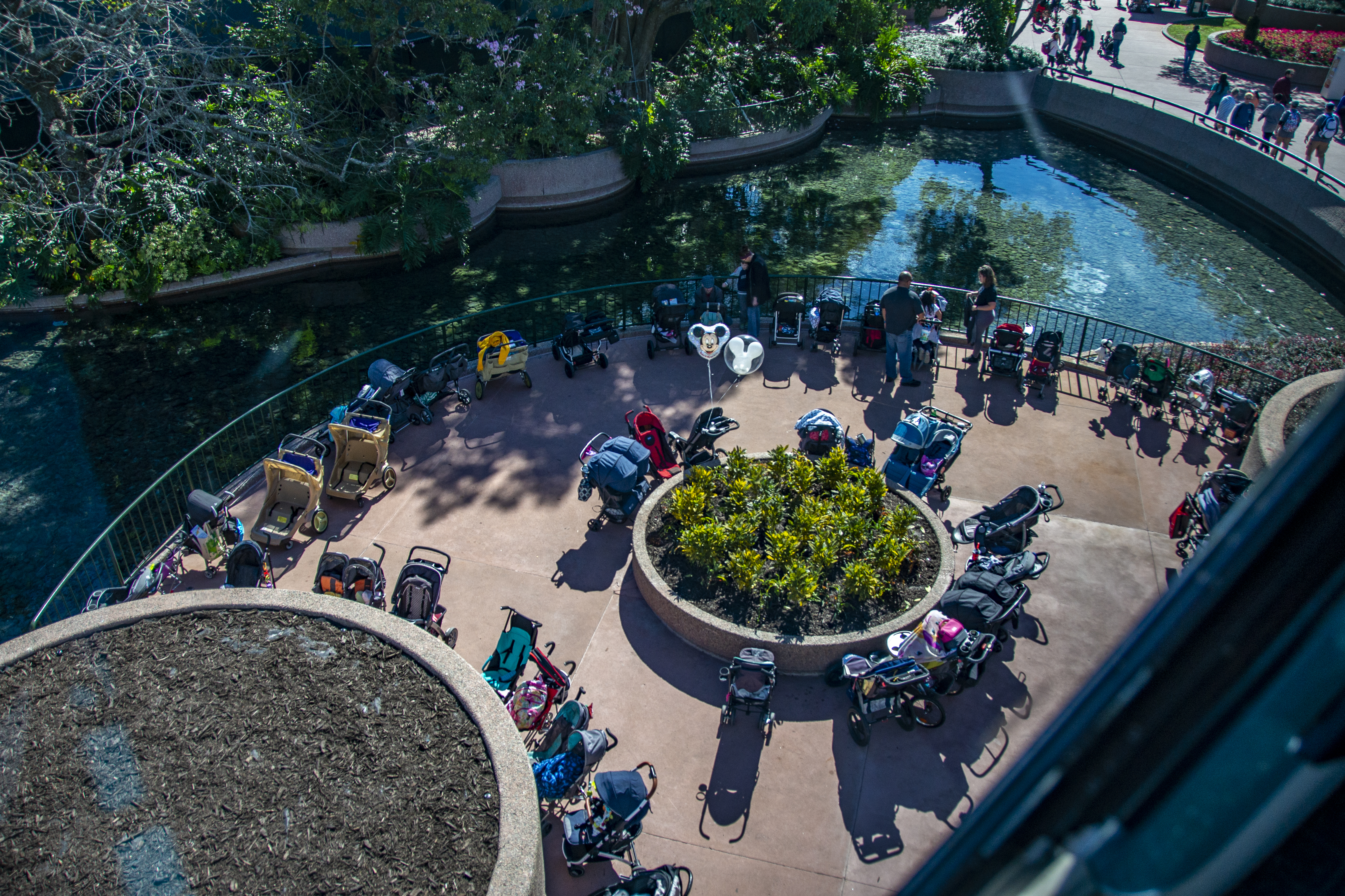 Outside The Seas with Nemo and Friends, one of the renovated planters that is now used for stroller parking has seen plants now added to it.