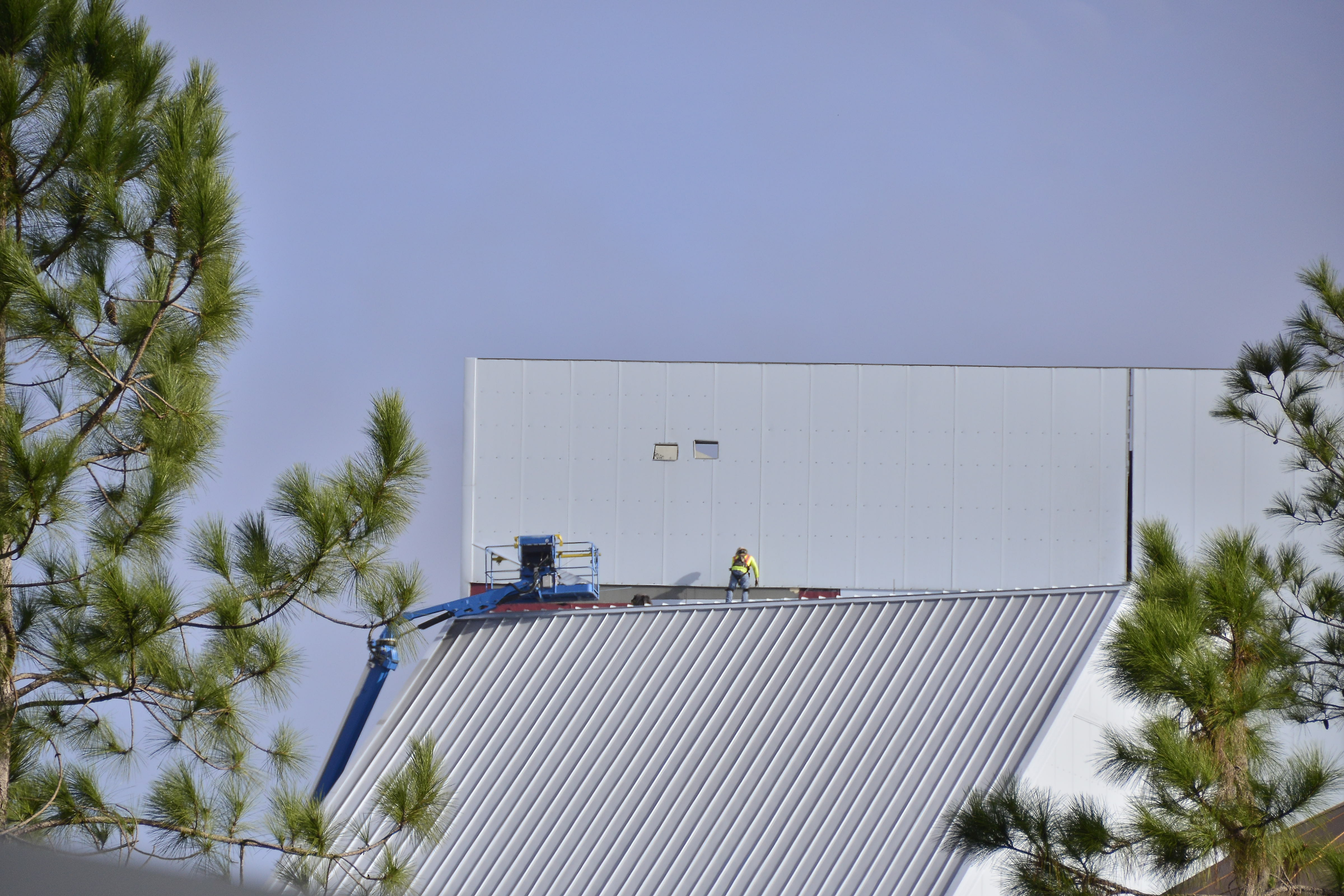 Over at the Guardians of the Galaxy: Cosmic Rewind site, all was relatively quiet, except for this lone worker at the very top of the show building.