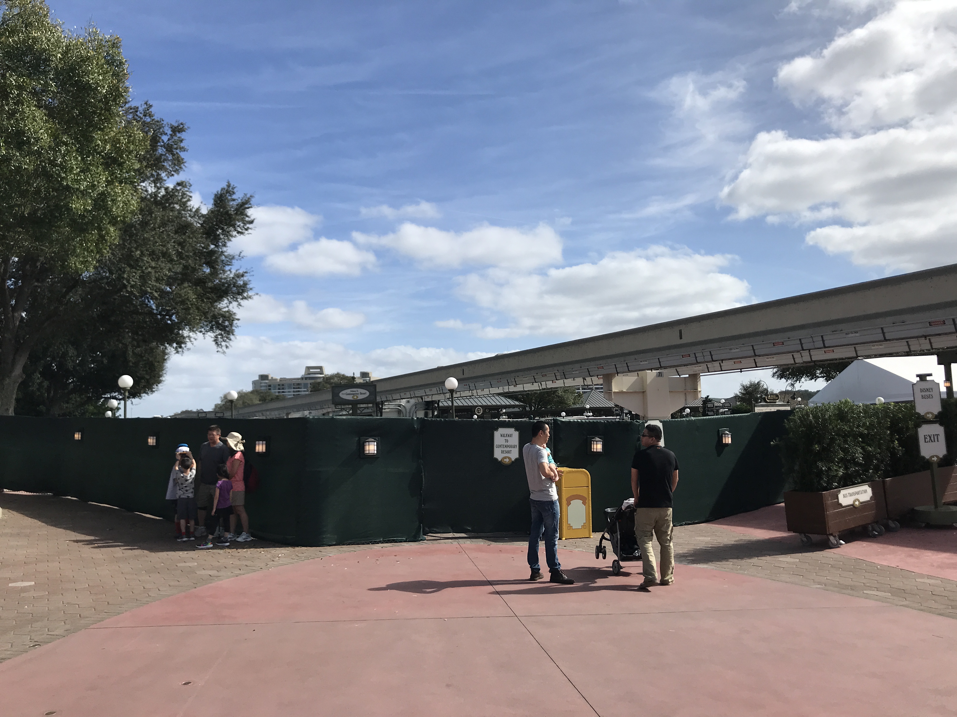 Sections of Magic Kingdom’s bus loop closed on January 13 in order to accommodate other aspects of the arrival enhancements, such as the construction on the new walkway to Disney’s Contemporary Resort. The current Contemporary Resort walkway has been rerouted to avoid the closed bus loop area. Instead of walking straight ahead, the walkway now veers to the left coming from the Contemporary.