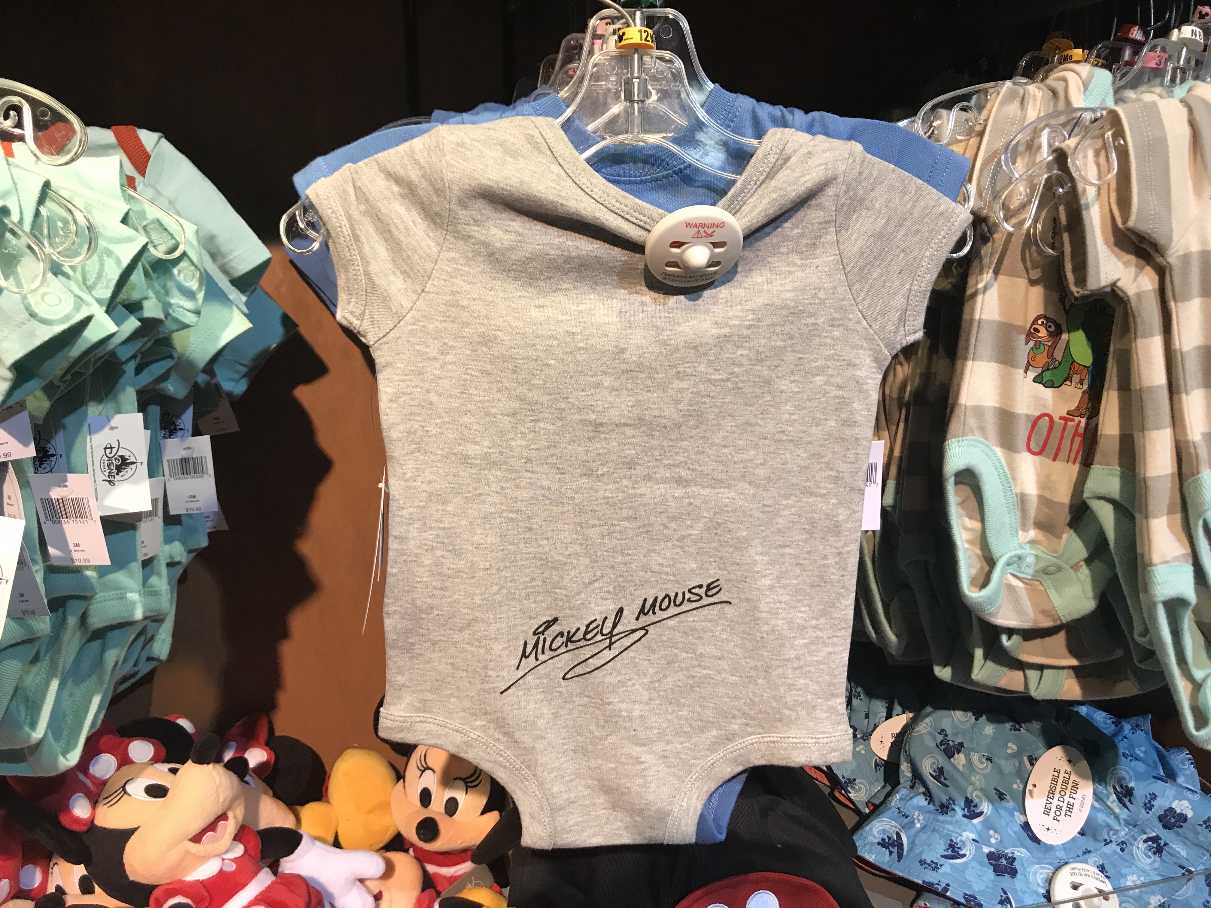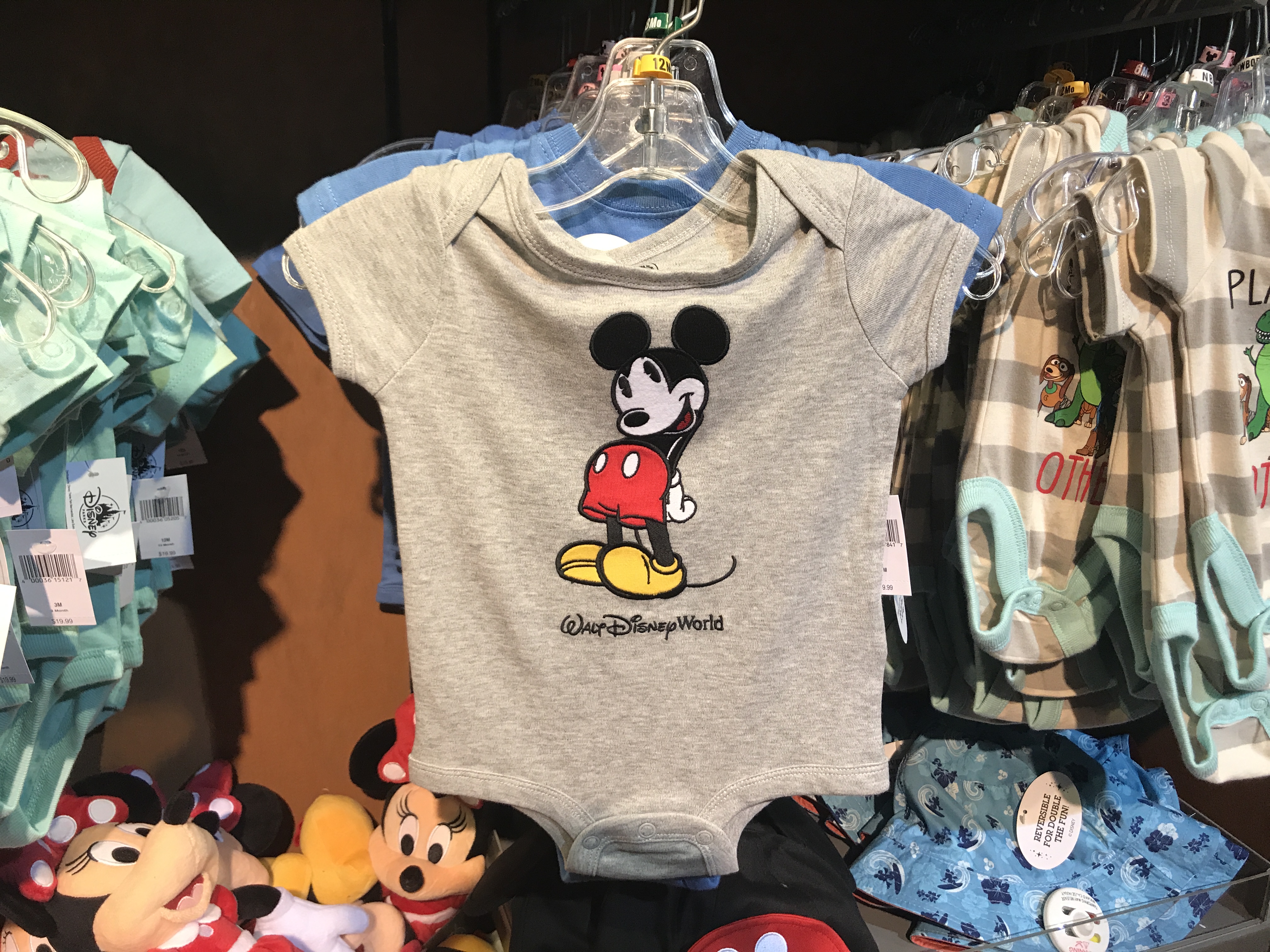 The last onesie we found was a gray one with an adorable embroidered Mickey standing bashfully.