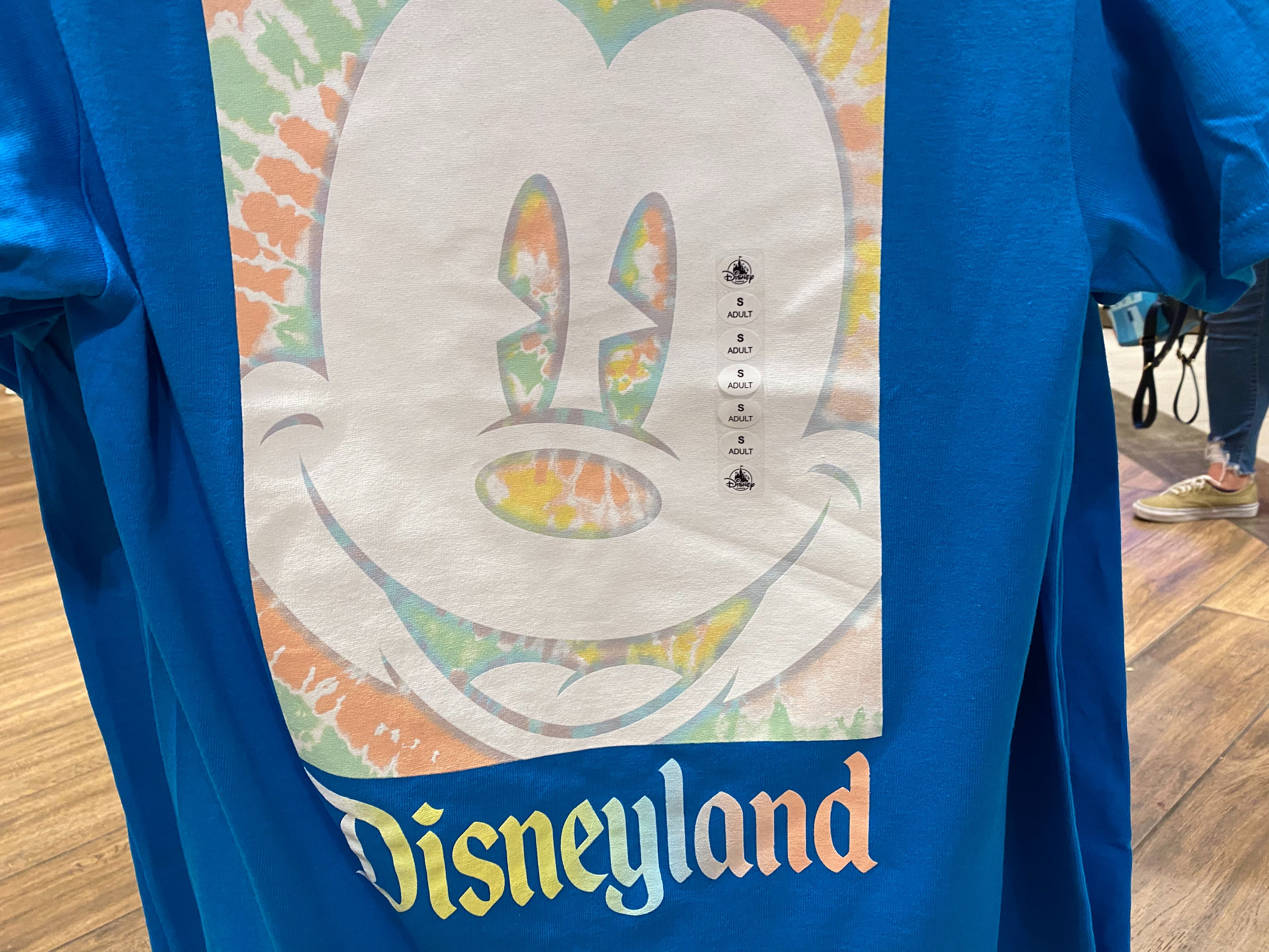 What’s Disneyland without Mickey Mouse? This blue t-shirt features Mickey’s face on a tie-dye background.