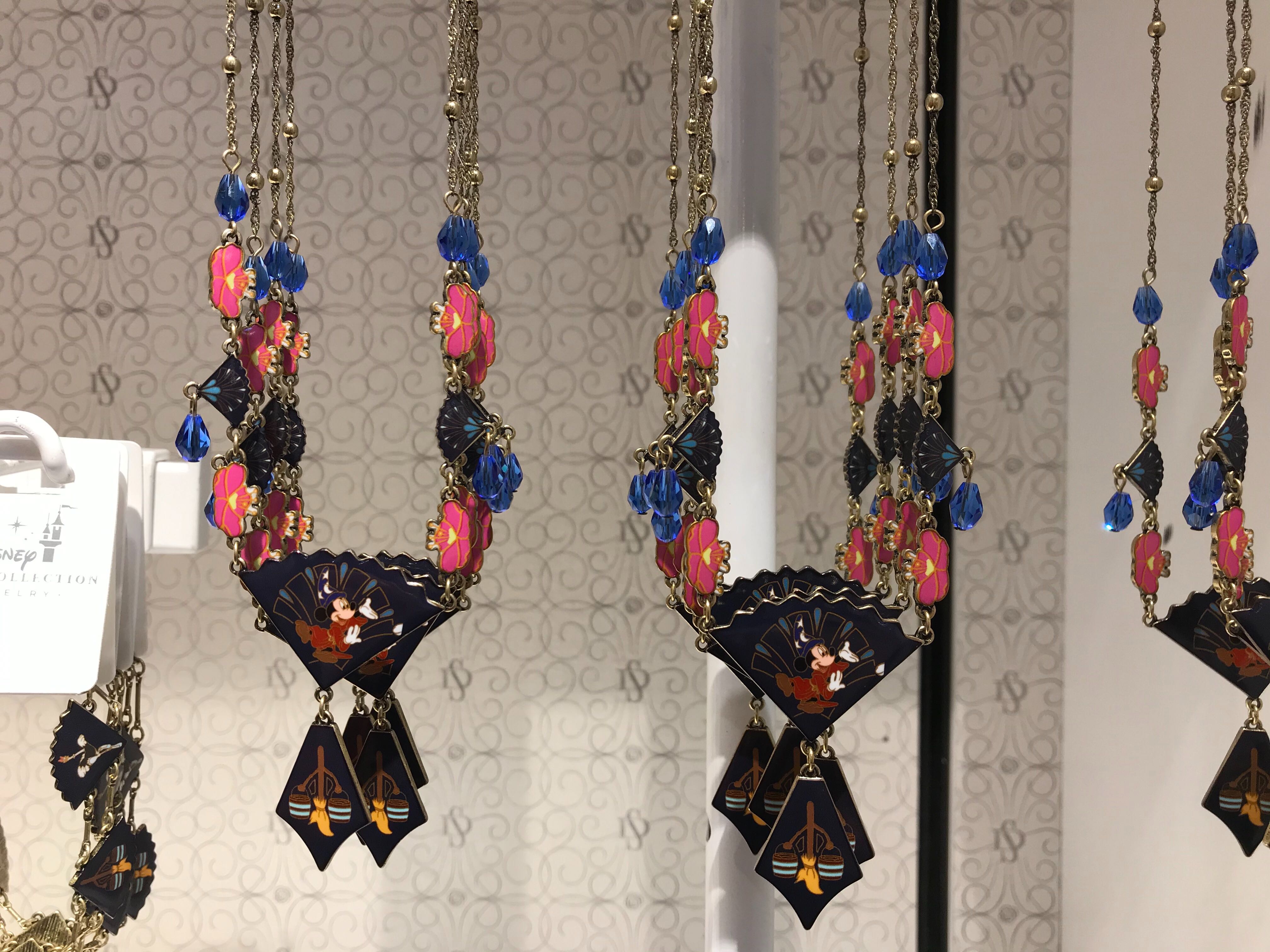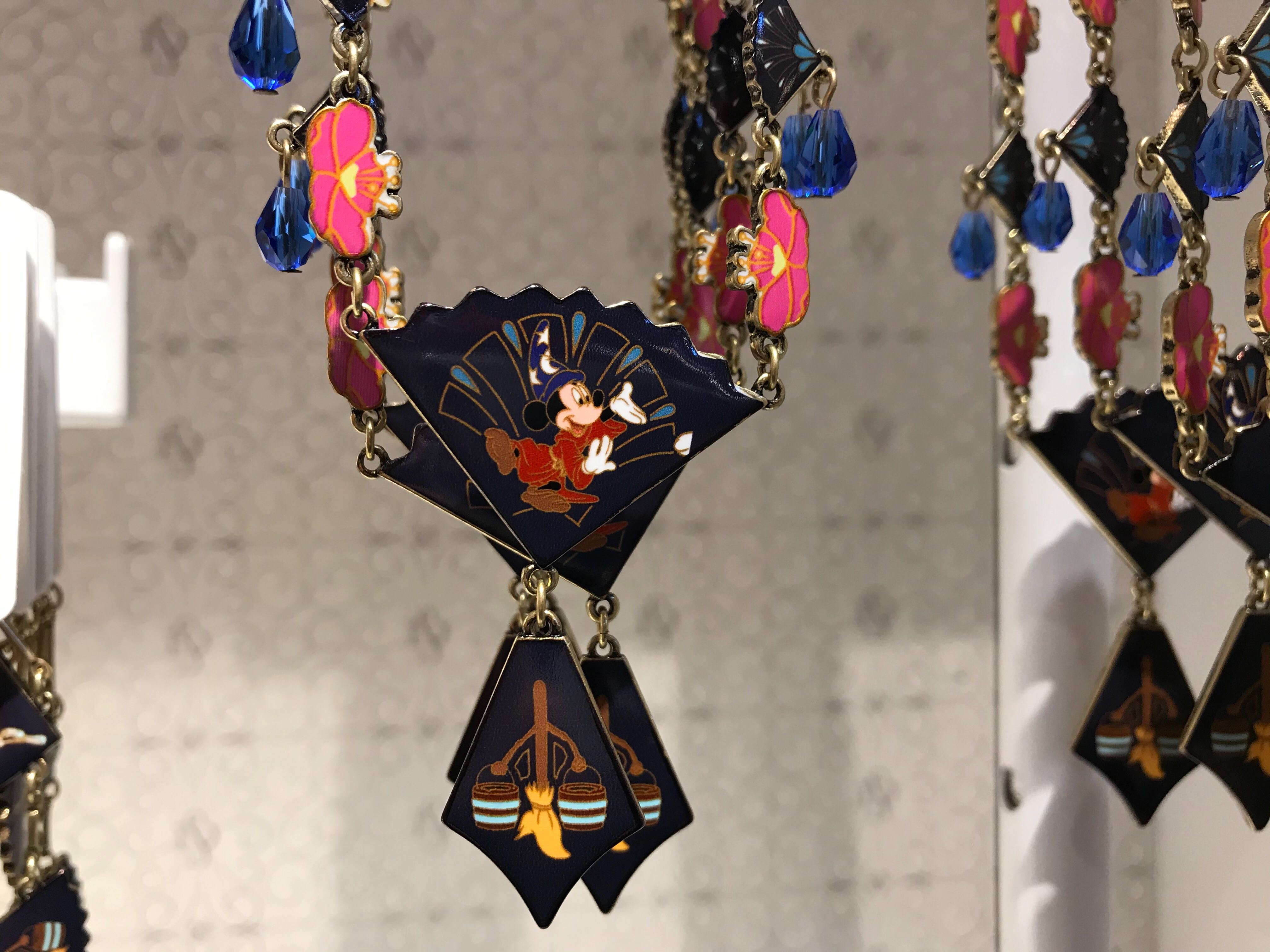 To round out the collection, there’s a lovely necklace featuring the flower, Sorcerer Mickey, and the broom.