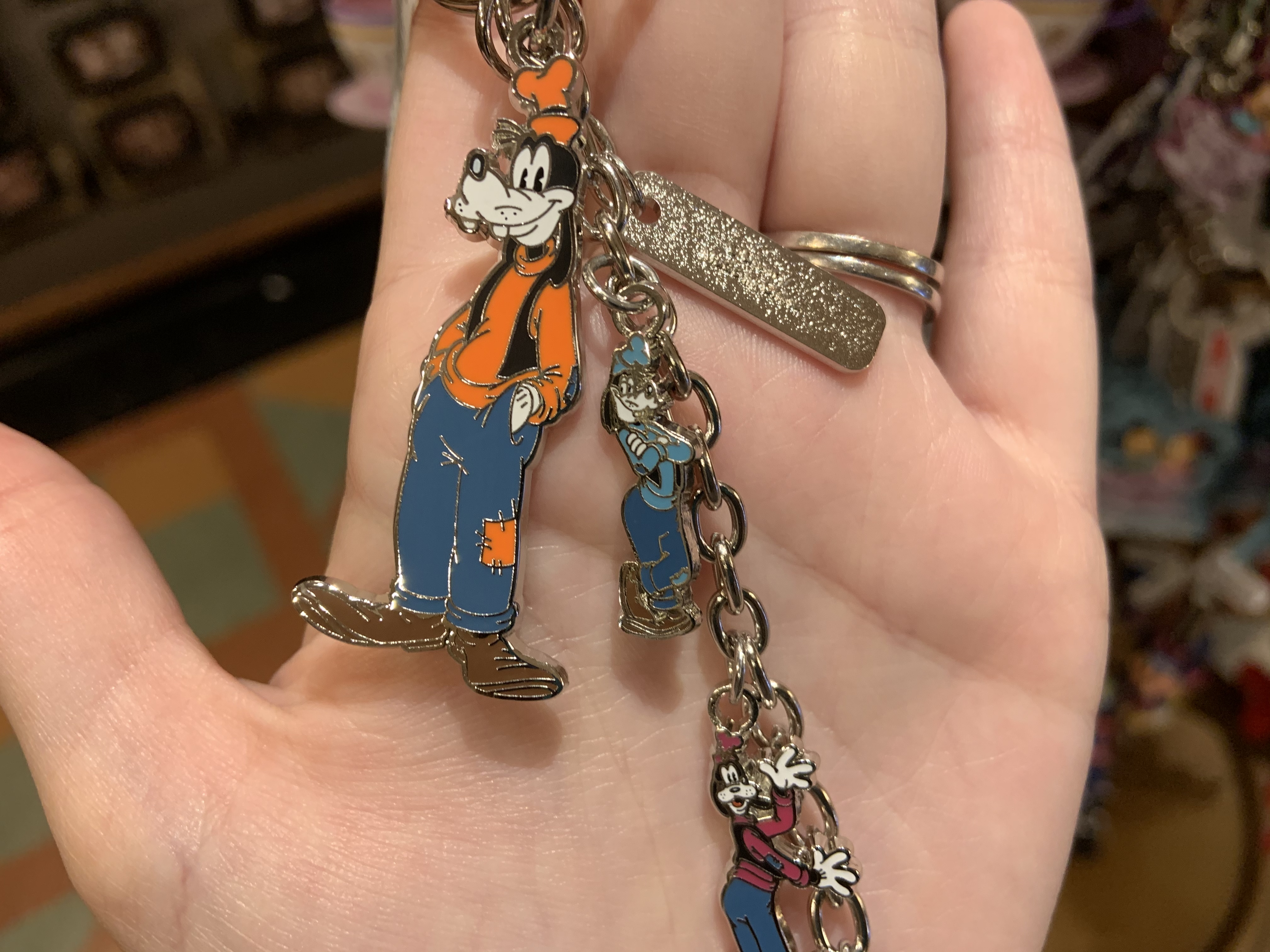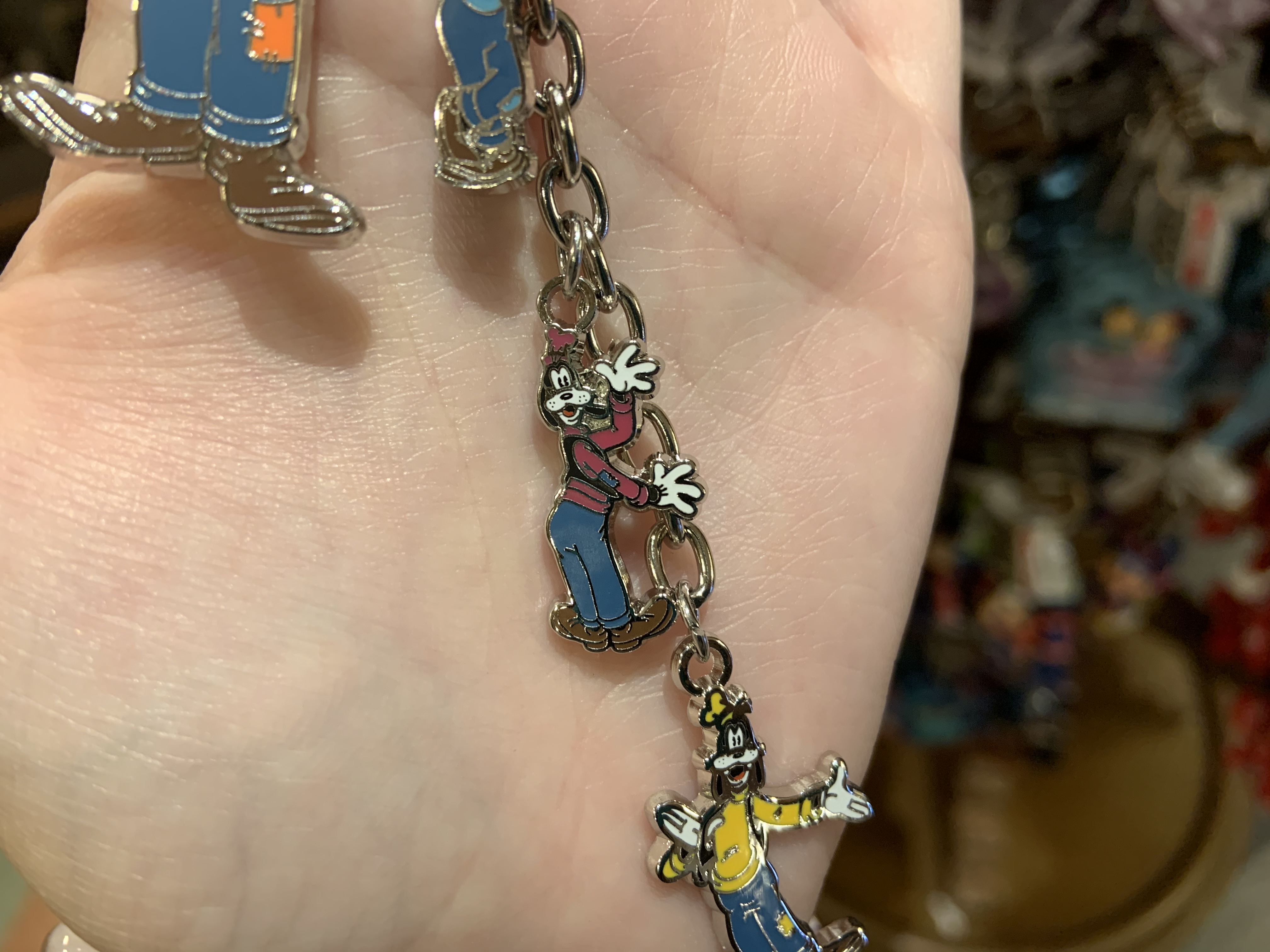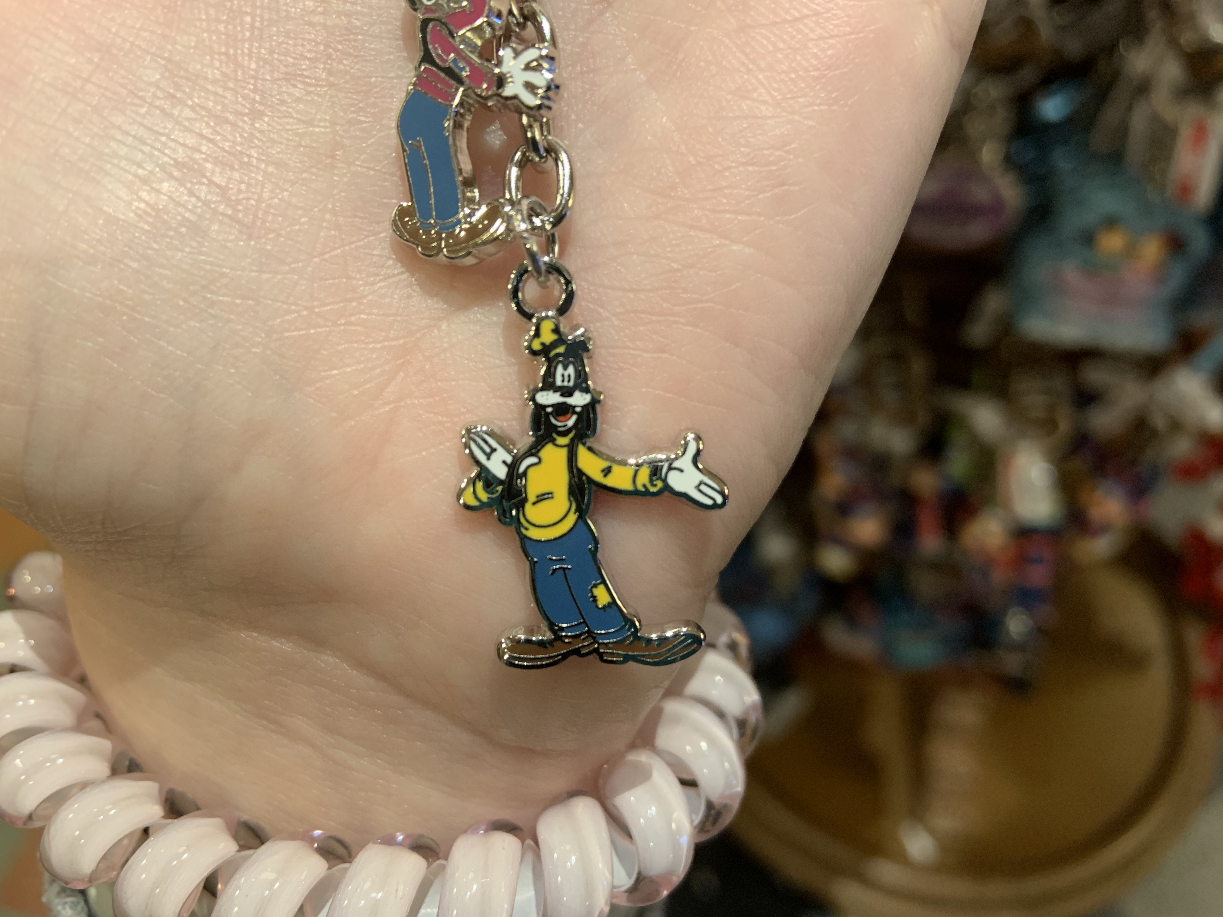 The smaller Goofy charms are also much thinner than the others. One charm shows a sly Goofy propped up against an unseen wall in a blue outfit, another shows him being, well… goofy. And the last one is Goofy presenting something in a yellow getup.