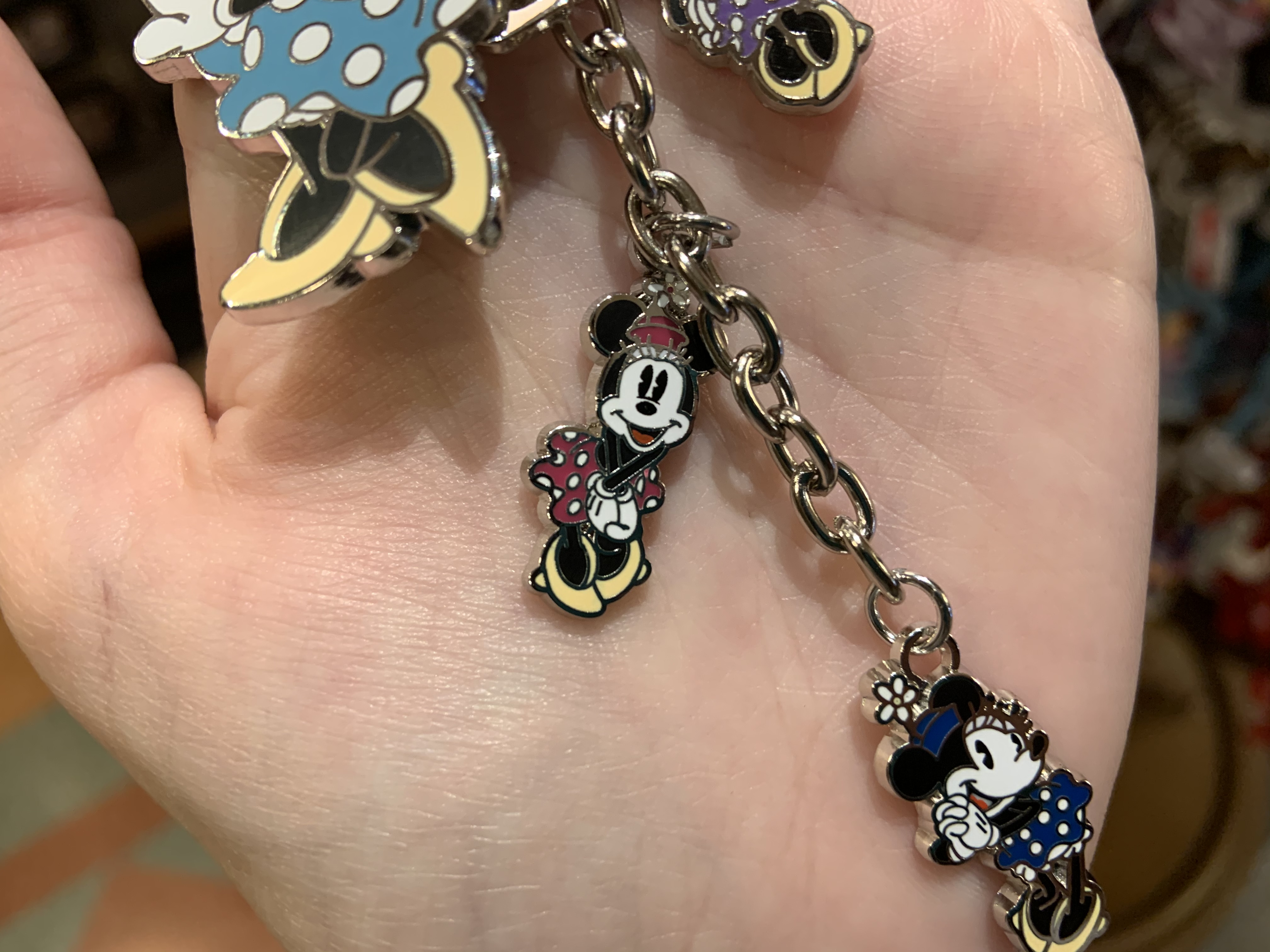 The smaller Minnie charms show her in three more sweet poses and different colored outfits. One outfit is purple, one is red and the last one is dark blue.