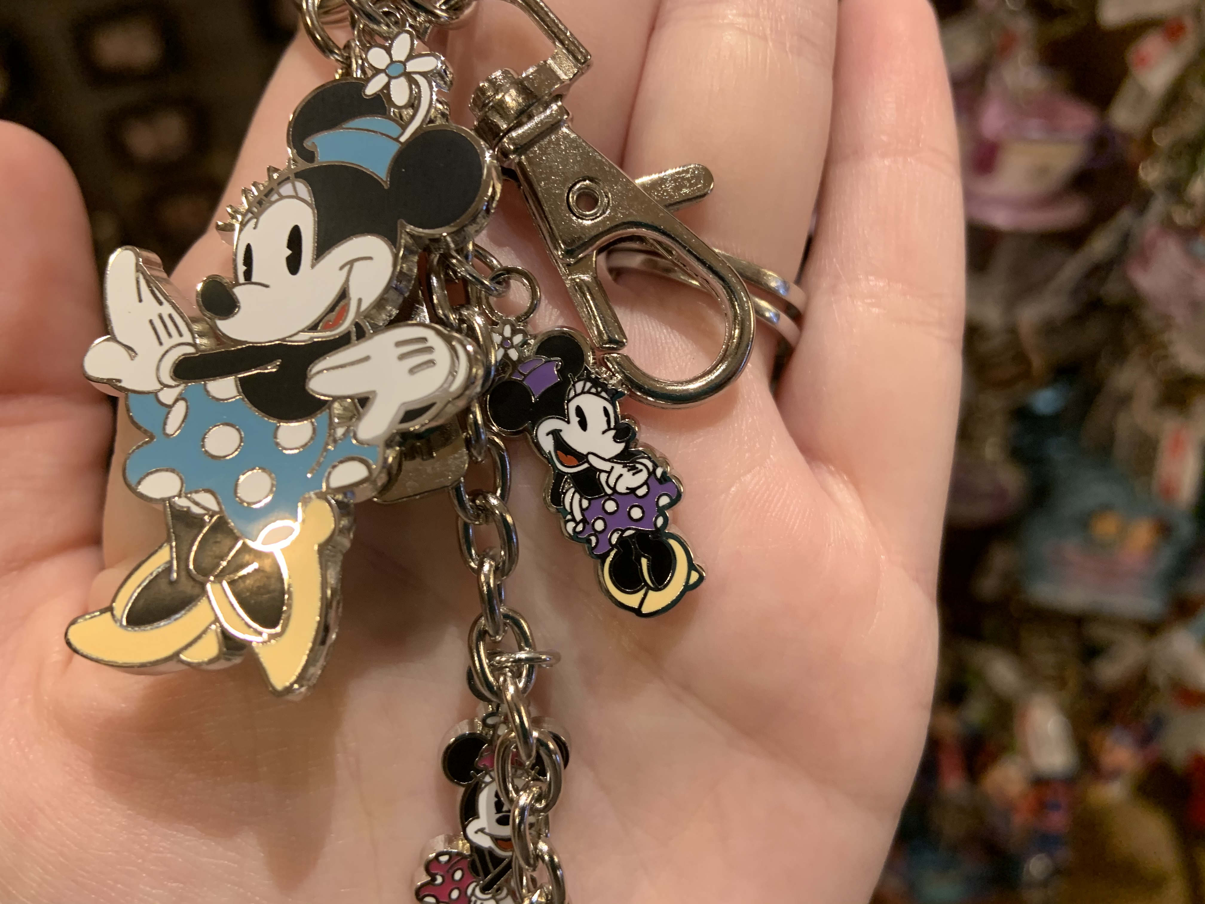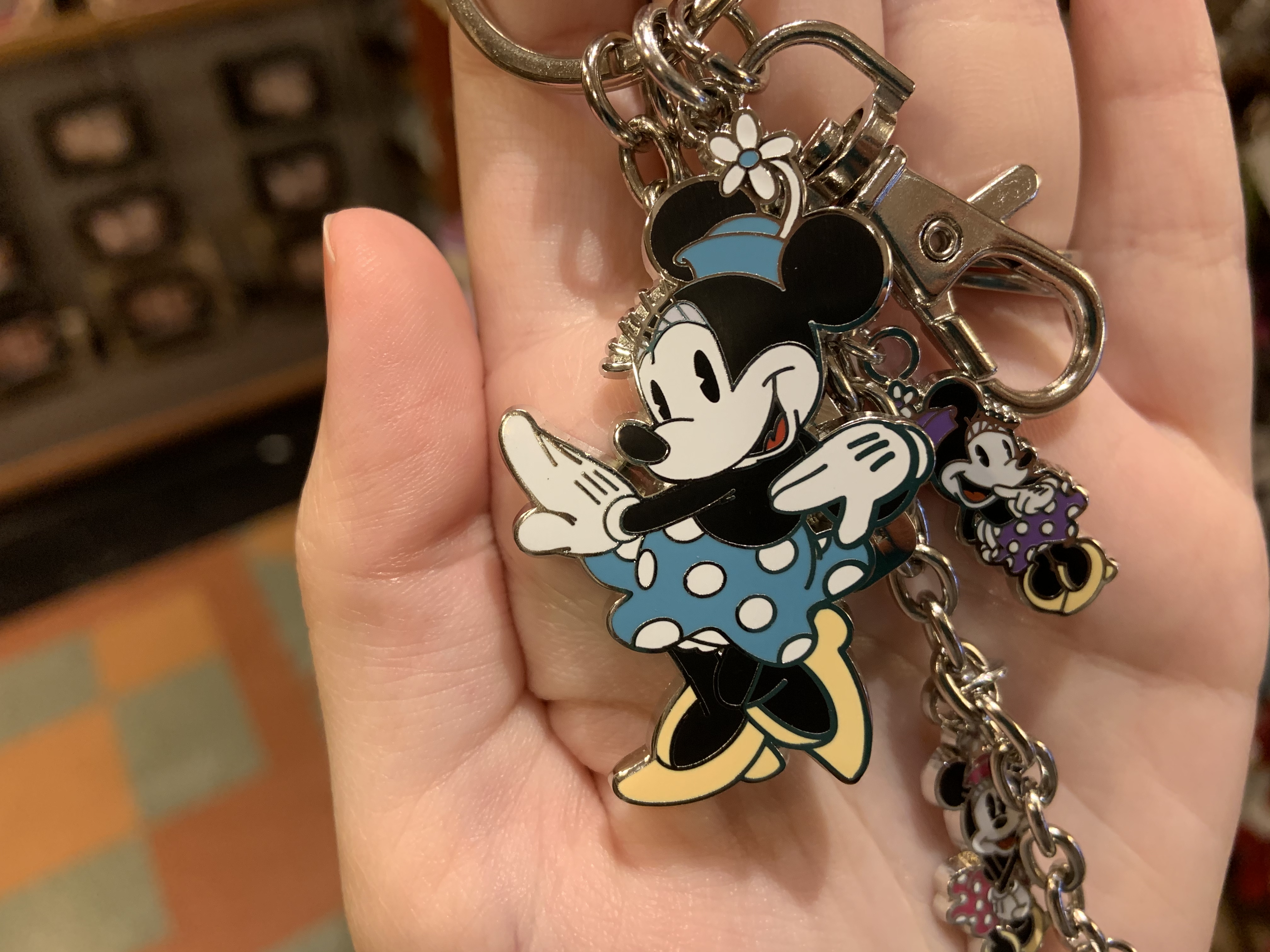 The Minnie Mouse version of the keychain has a large metal and enamel light Minnie looking flirty and fabulous in a blue dress and hat.