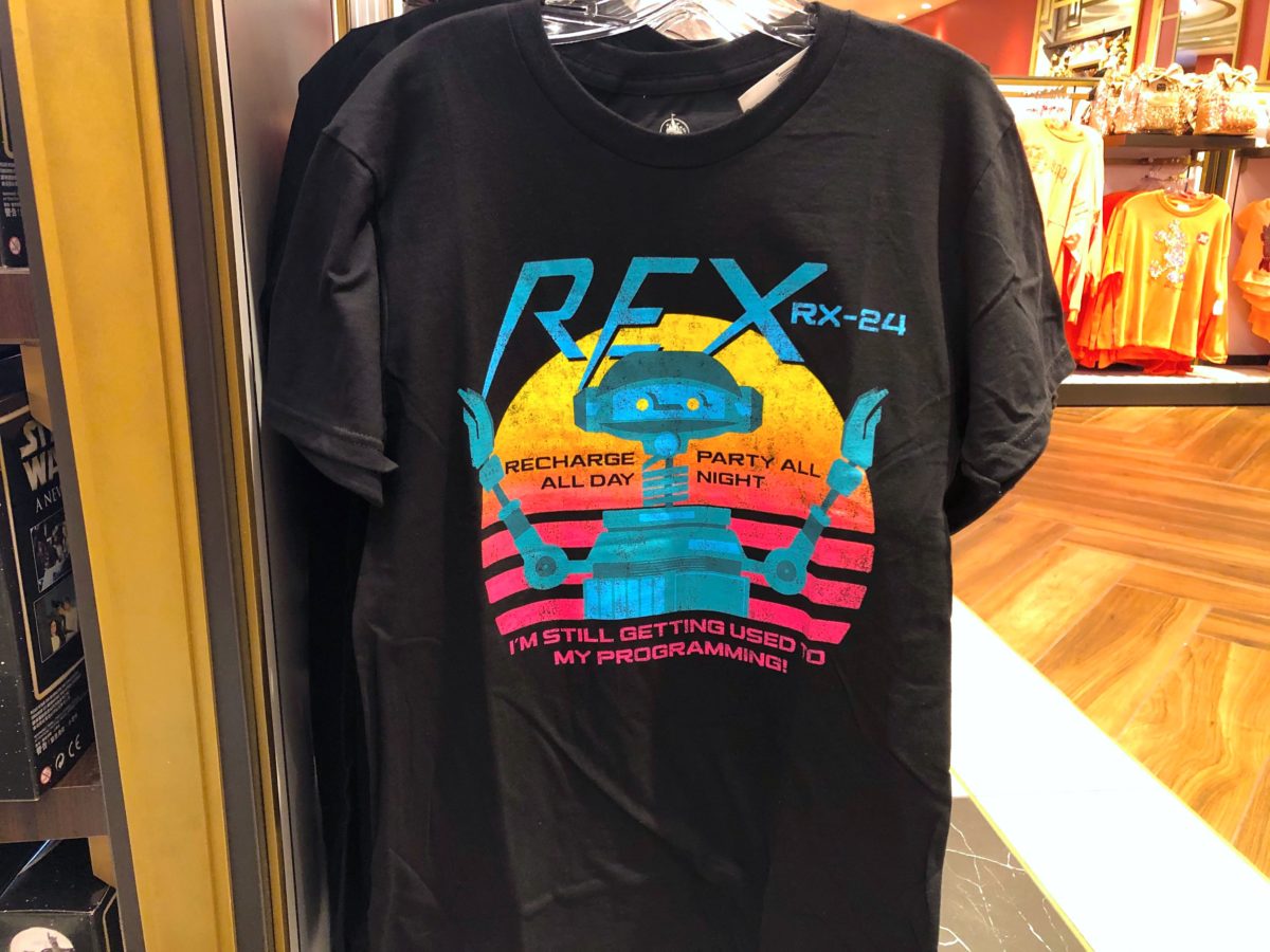 He occasionally powers down, but hey, he’s still getting used to his programming. You can find the new tee inside Mickey’s of Hollywood in Disney’s Hollywood Studios for $24.99… just make sure you have your drinks secured and your seats in the upright and rock position, because we are about to hit some turbulence!