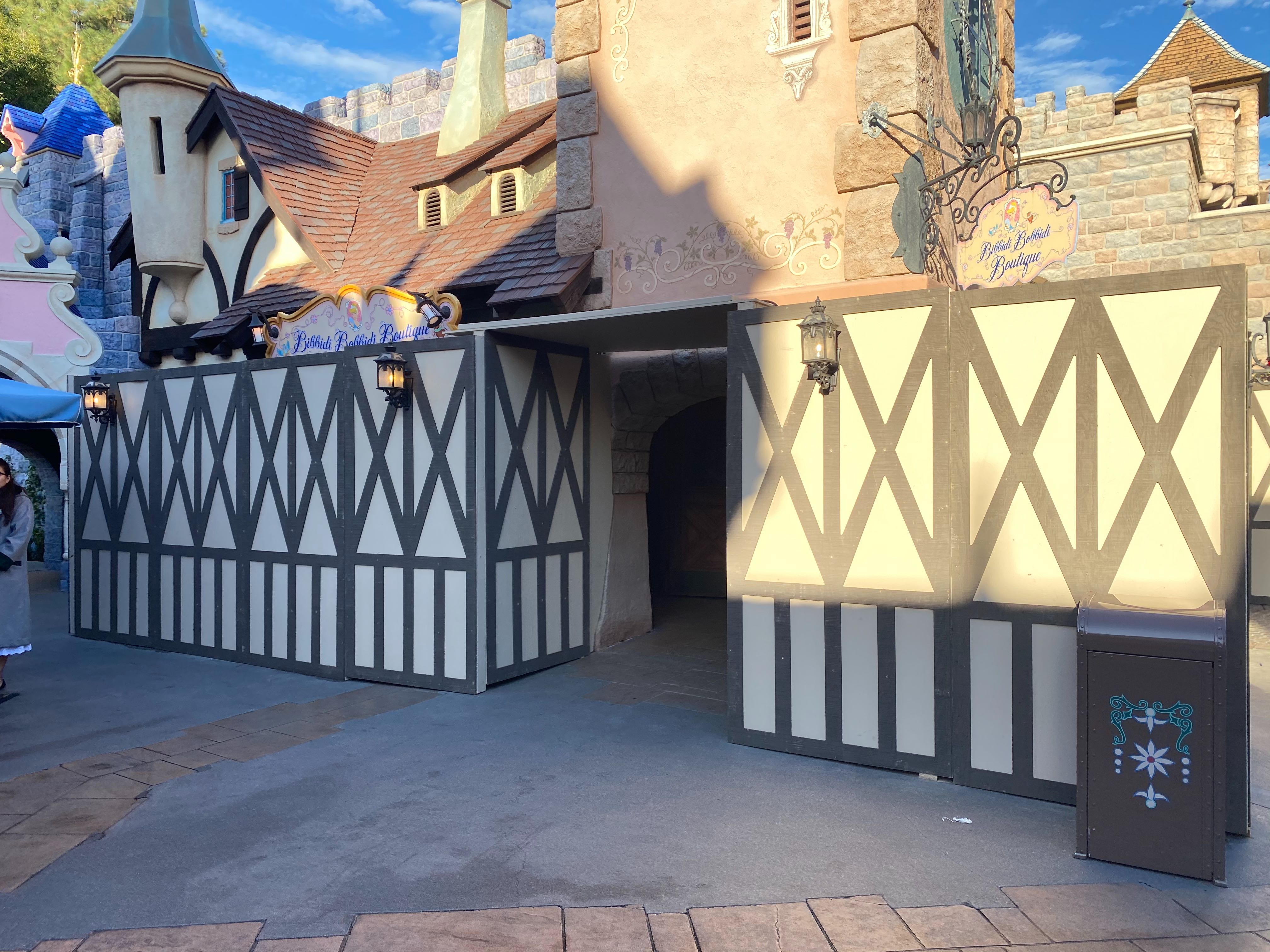 Here, we see the walls extended to the Bibbidi Bobbidi Boutique, though the shop remains open during construction.
