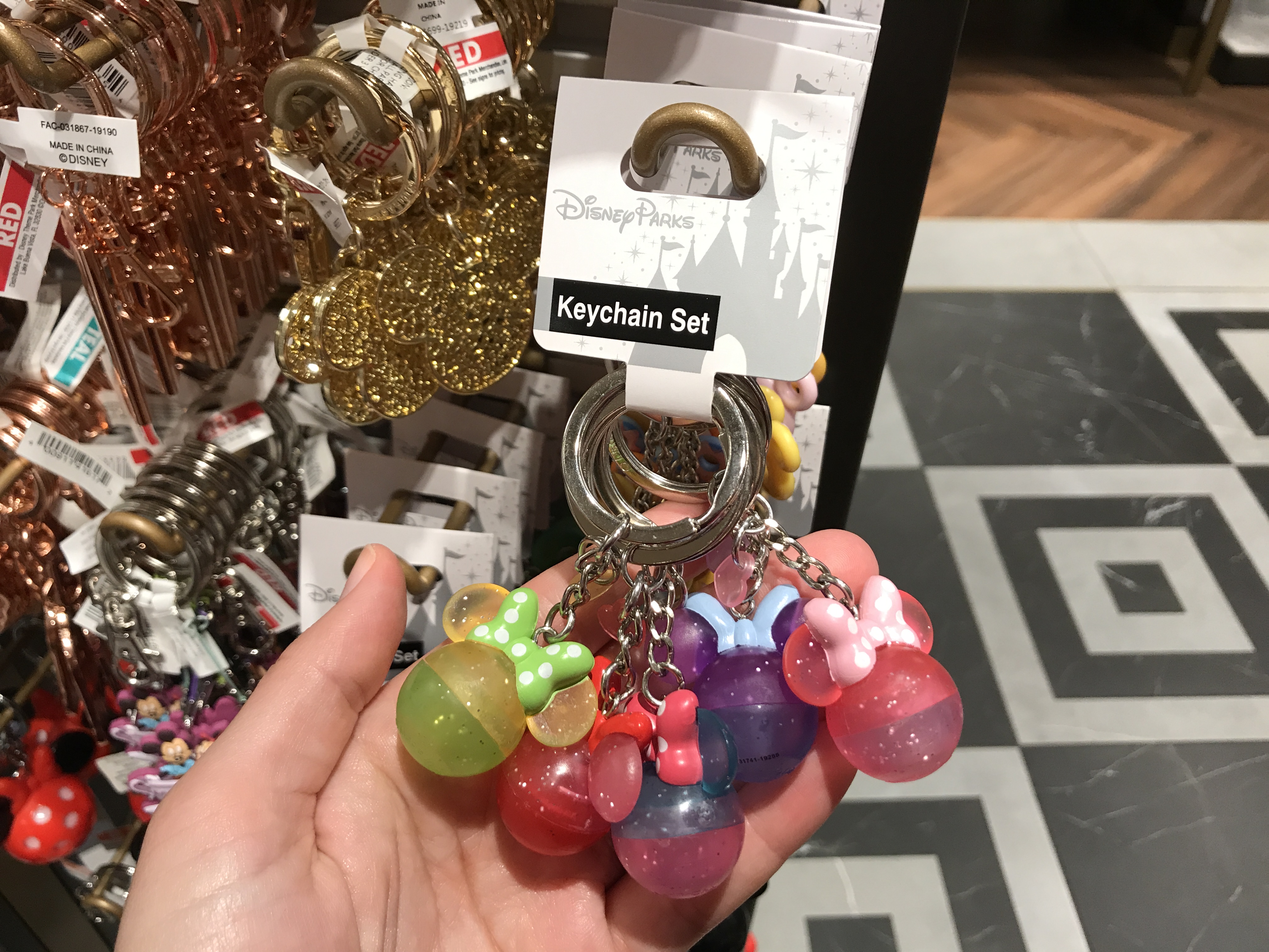 Each of the keychain sets are $16.99 each. We found the bag clips and keychains at Celebrity 5 & 10 at Disney’s Hollywood Studios.