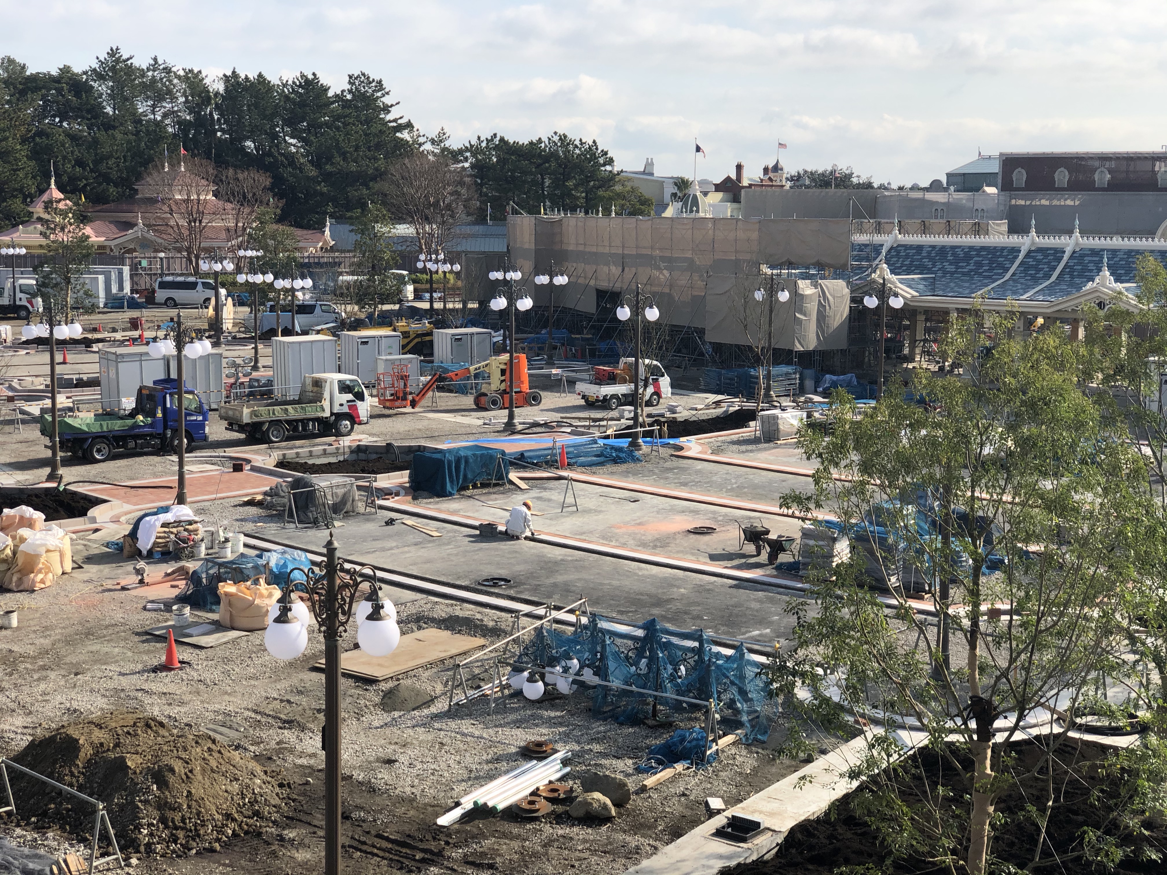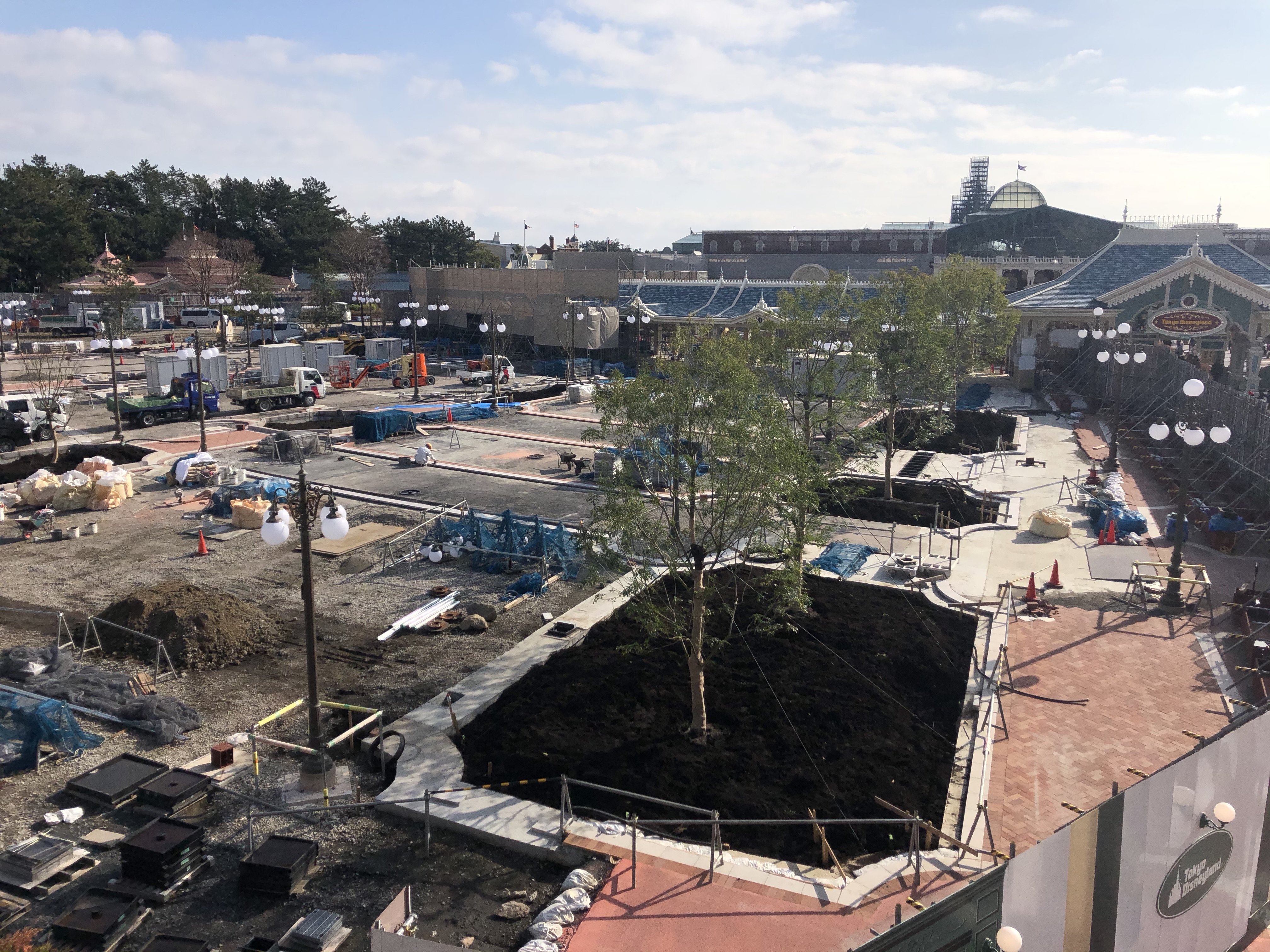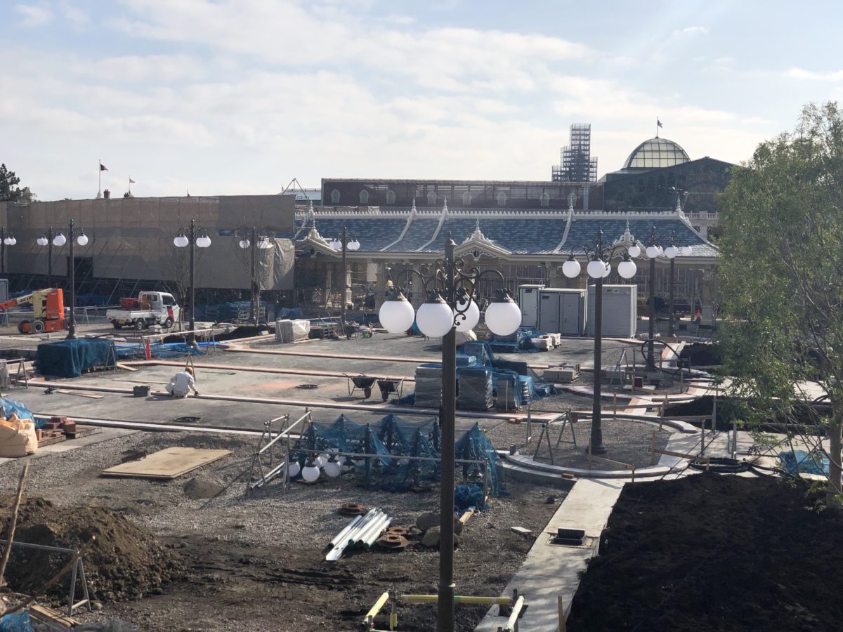 The new Tokyo Disneyland main entrance is well on its way to completion and opening this spring! We still don’t have a hard date on when the new section will open, unfortunately. But I’d put it around late March or early April. Fortunately, scaffolding is starting to come down, and the light posts have been installed. So, let’s take a look at what’s new as construction starts to conclude! You can watch a tour video, or keep scrolling for pictures and descriptions!