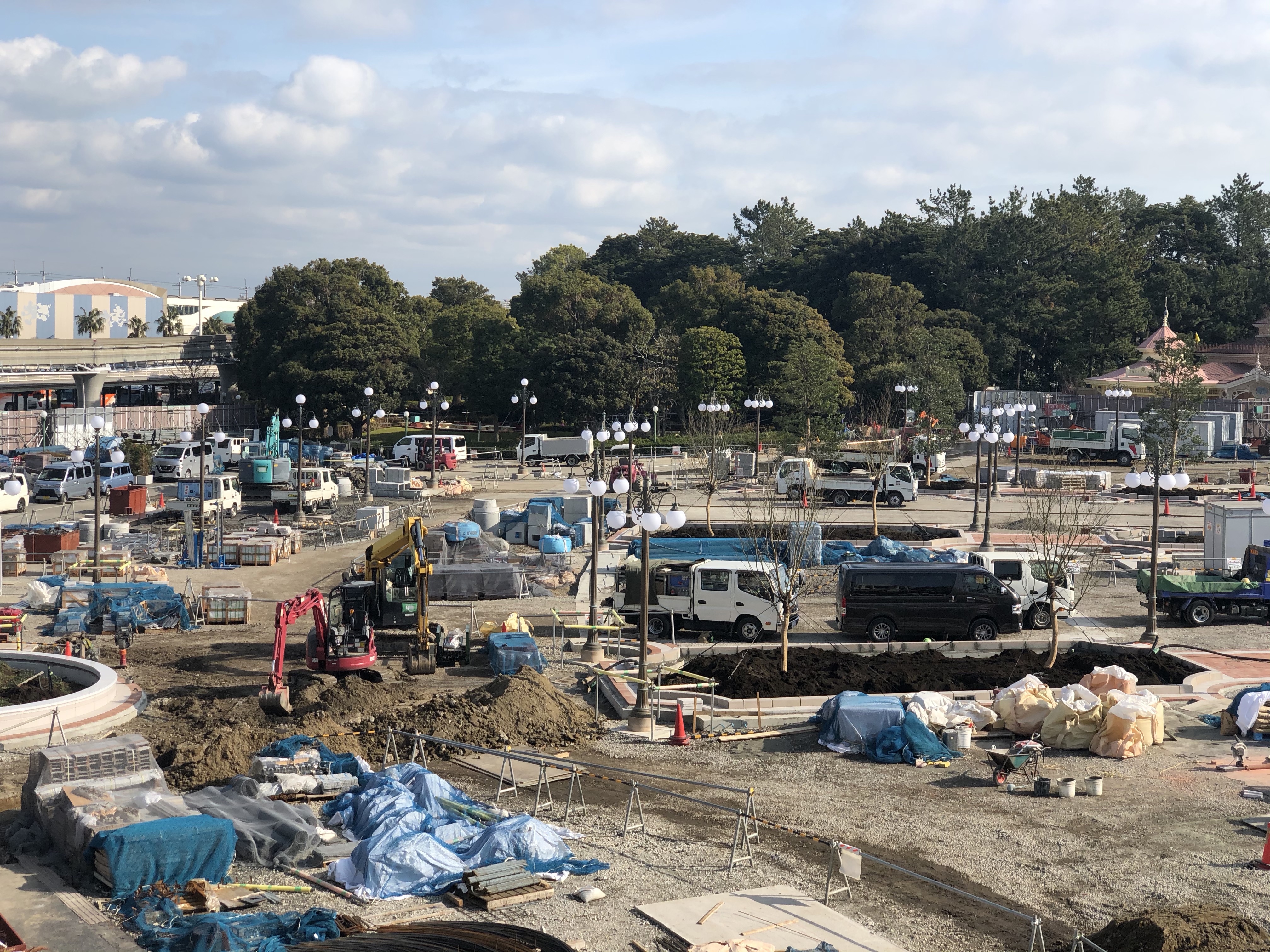 The construction area next to the Disney Resort Line station is active once again. This area has been used largely as a staging area, but things are actually moving forward to finish this area up.