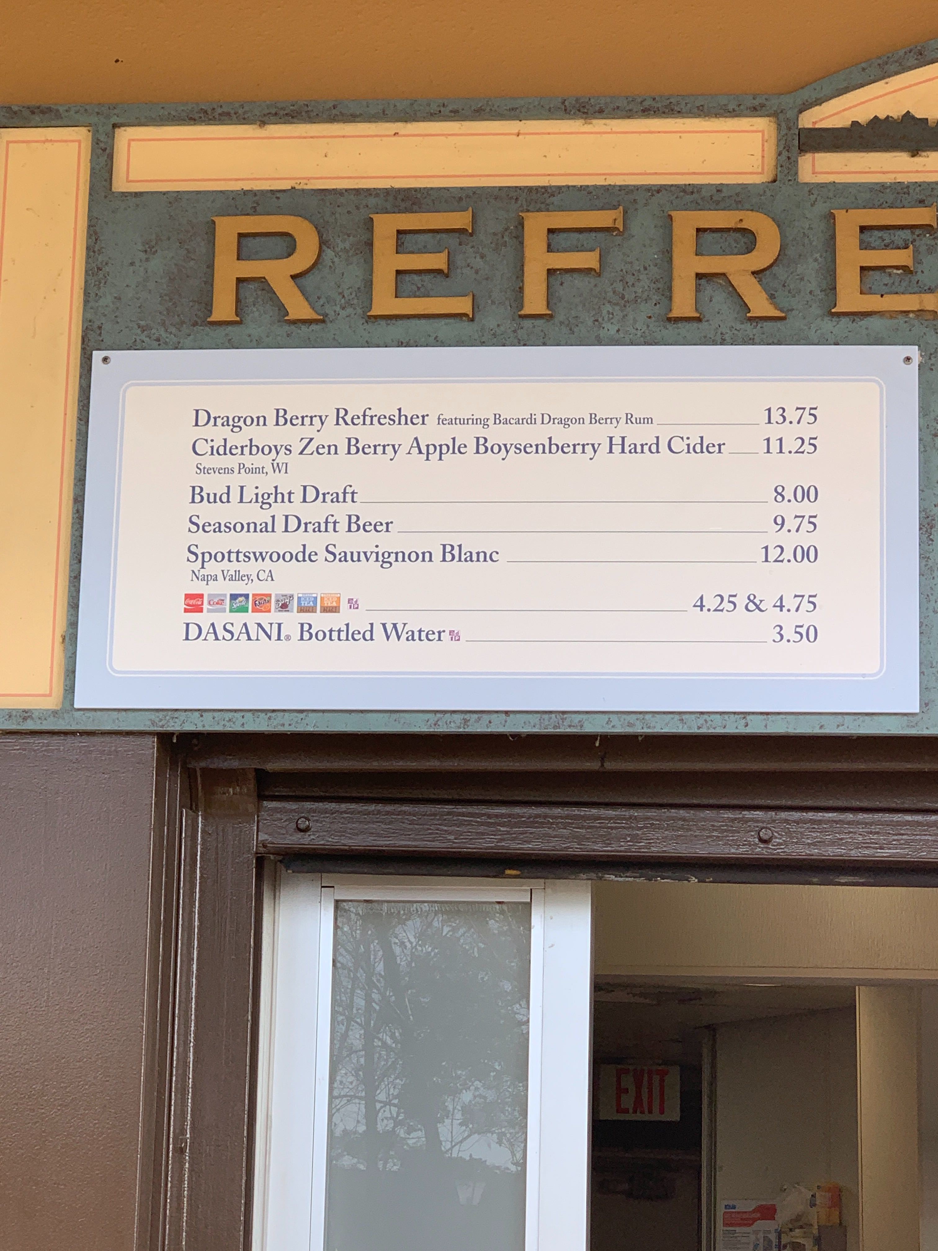 Menu for Refreshment Port at the EPCOT International Festival of the Arts