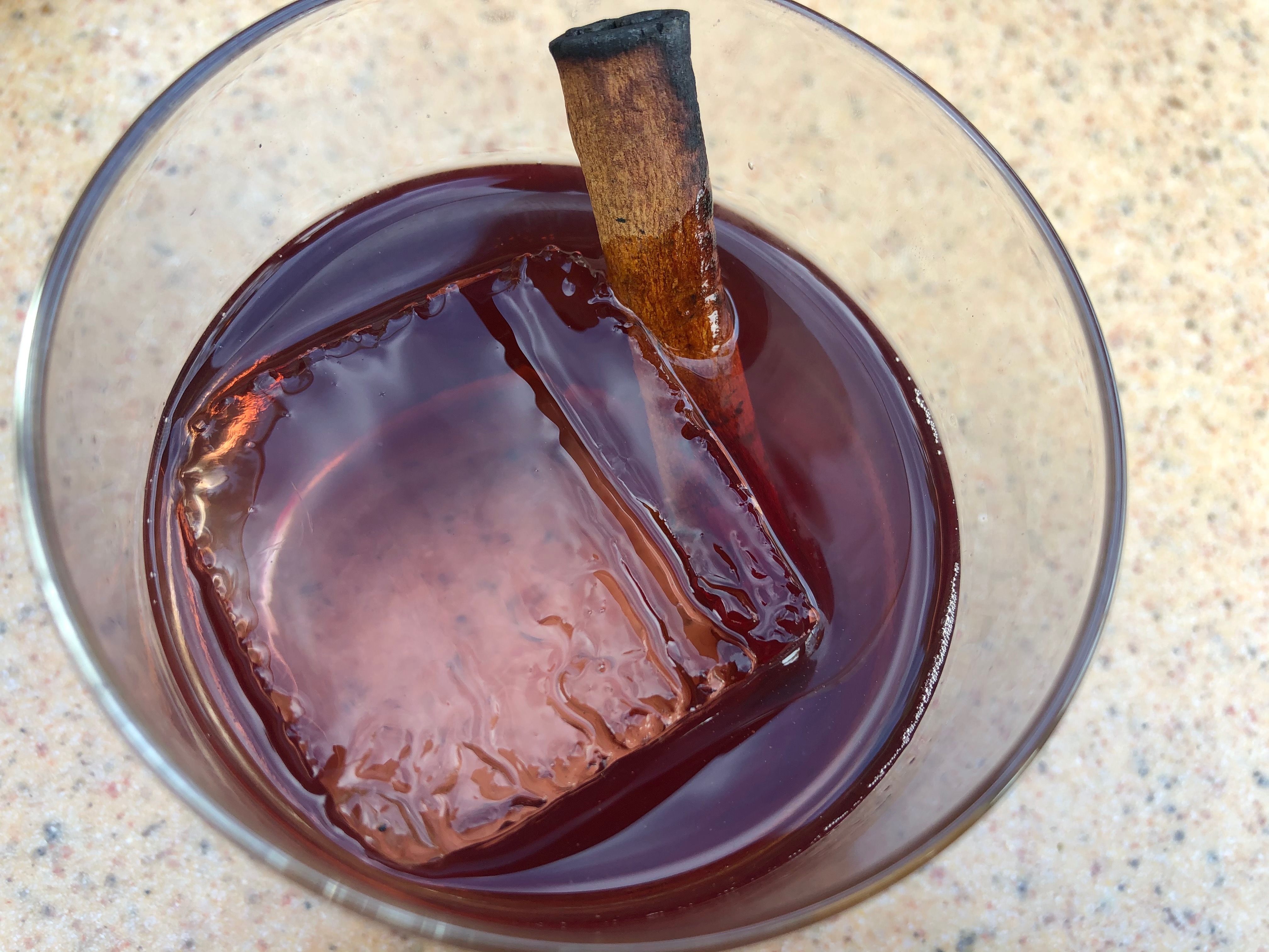 We would suggest letting this one sit for a bit. Drop the cinnamon stick in and swirl it around for a few minutes. The bourbon was smooth and takes over the taste at first. Then as you sip, the pinot noir adds just a hint of red wine finish to really round this out. The simple syrup is barely noticeable and works with the wine and bourbon to bring this whole drink together.