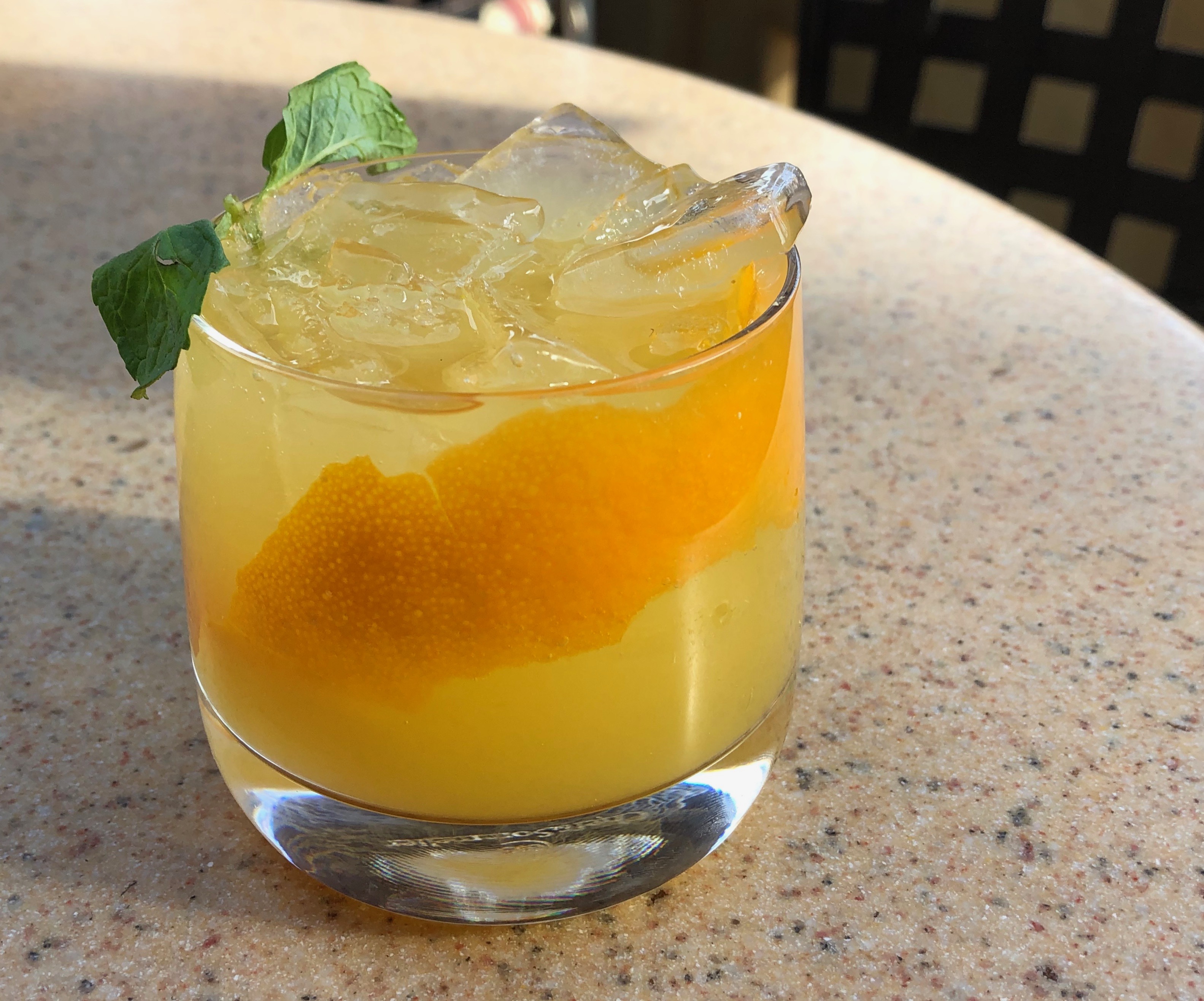 The presentation was fun and after a good mix this tasted like an upscale piña colada… although that cute orange garnish looks more like it belongs on the Fun Wheel Drink.