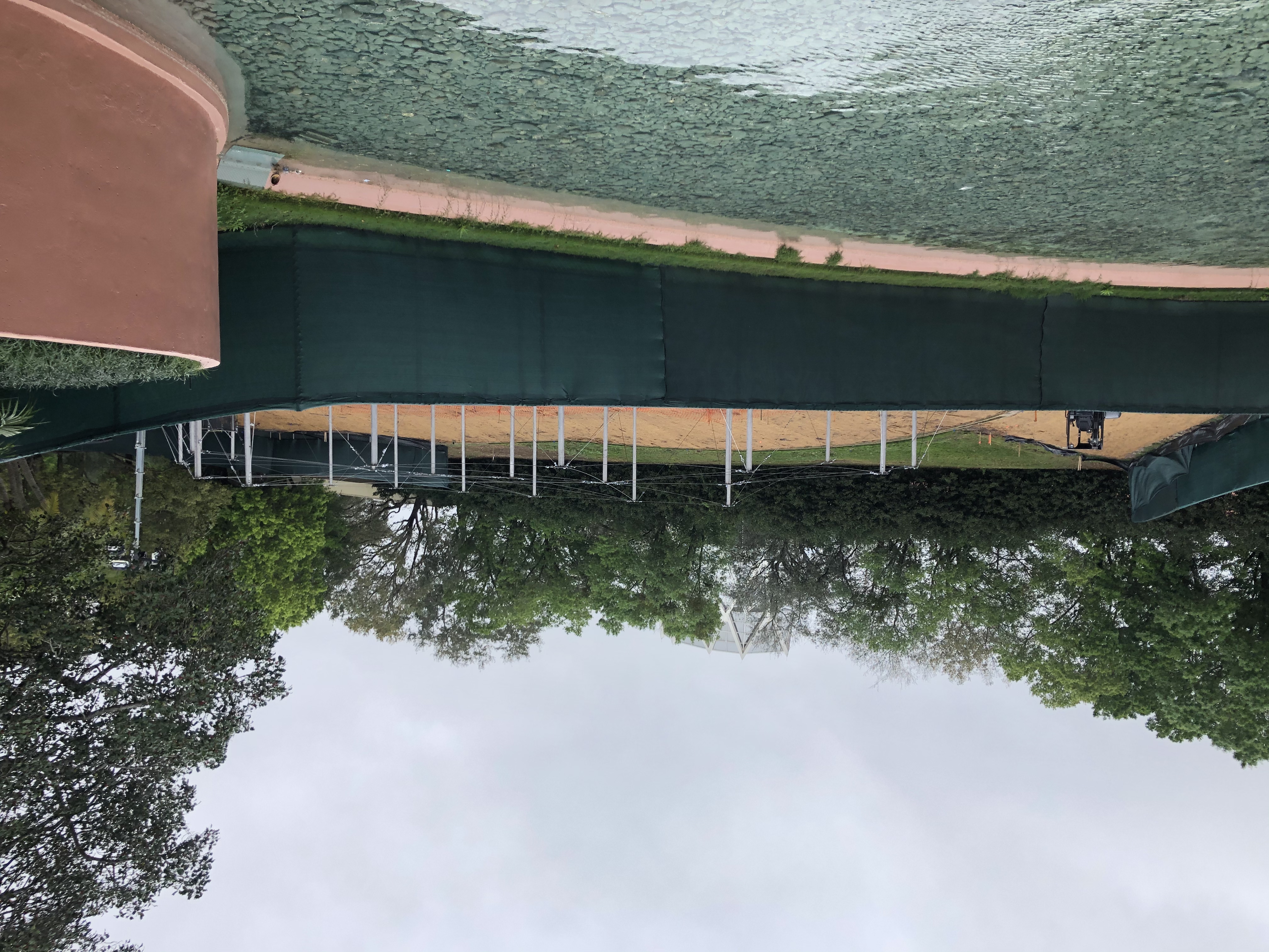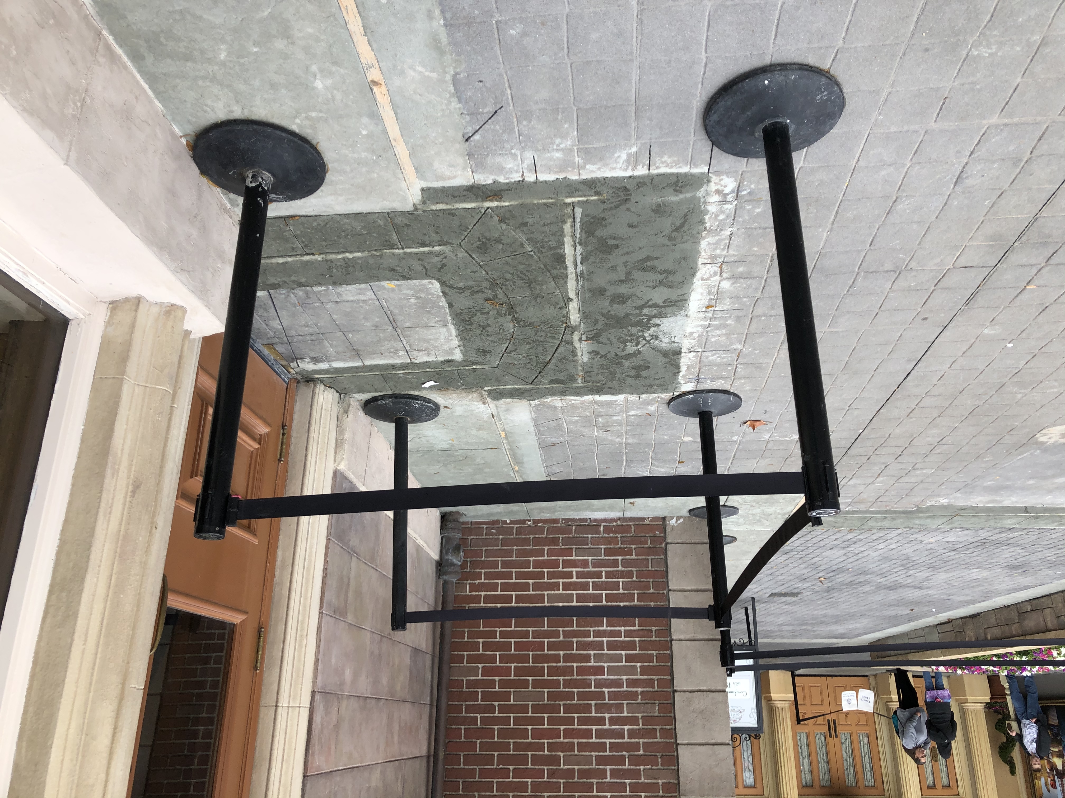 Over in front of Starbucks, green railing has been added to complete this planter.