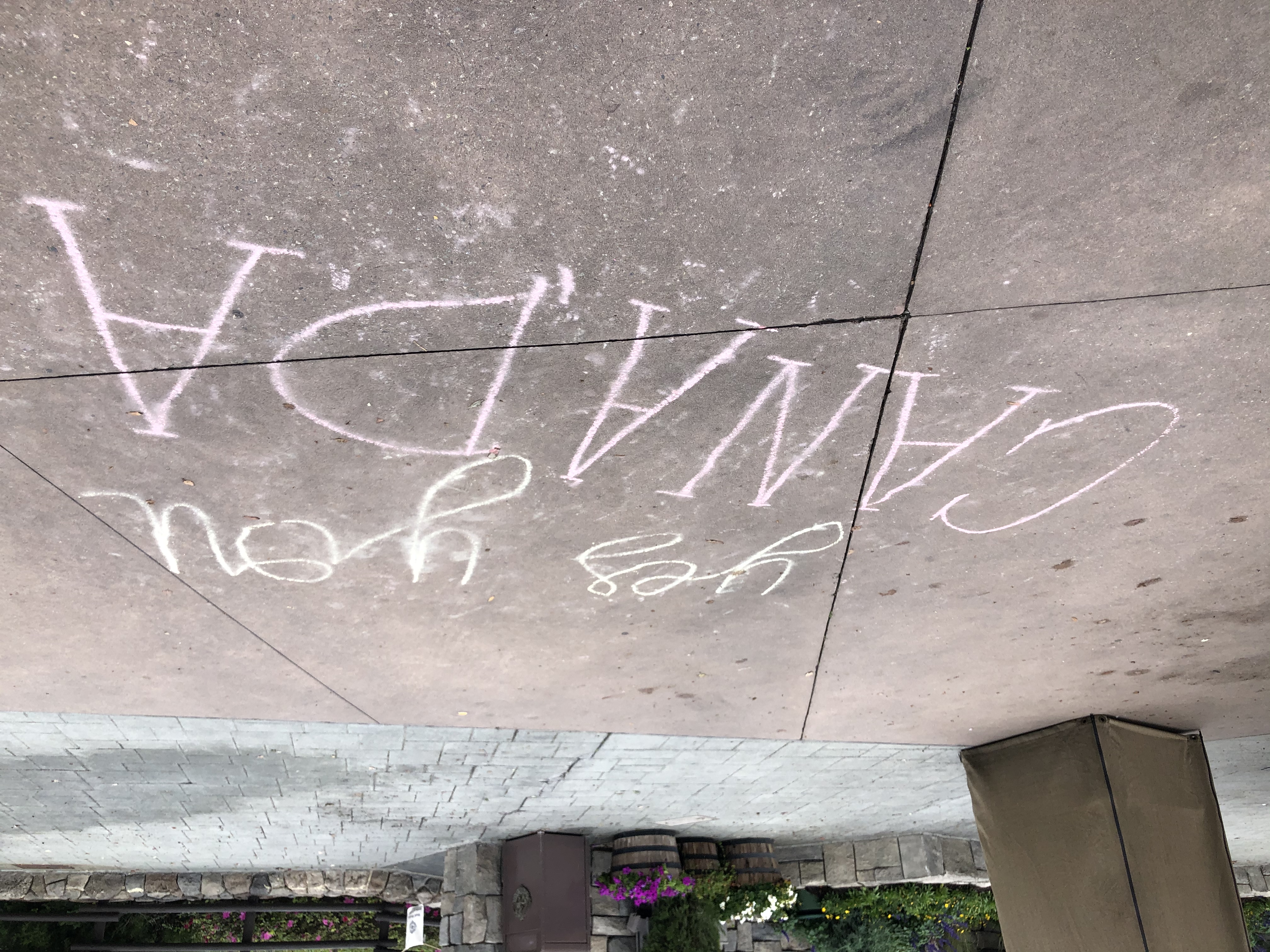 In France, work on the new cobblestone paving continues to take part in stages. This section was blocked off in front of Plume et Palette.