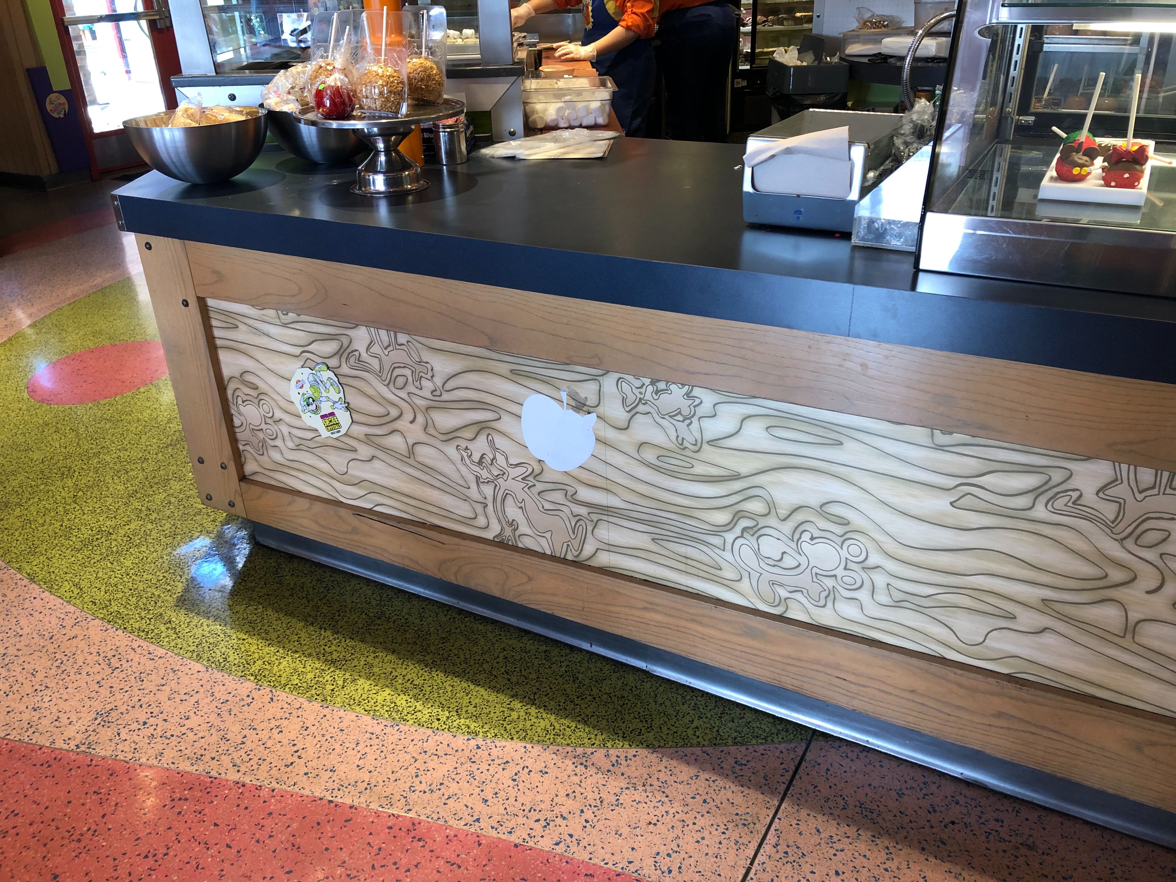 Goofy’s Candy Co. needs a little touch up along the counters. There’s a giant apple-shaped piece missing.