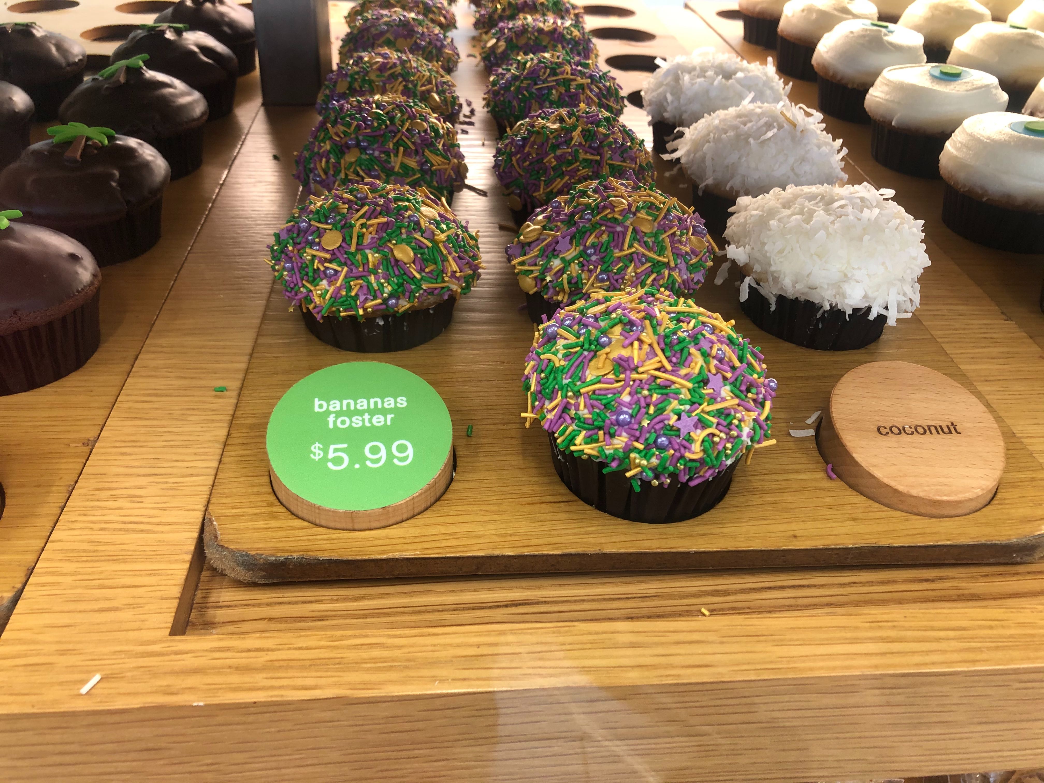 Sprinkles Cupcakes has some tasty new offerings right now. There is a new bananas foster cupcake with Mardi Gras colored sprinkles.