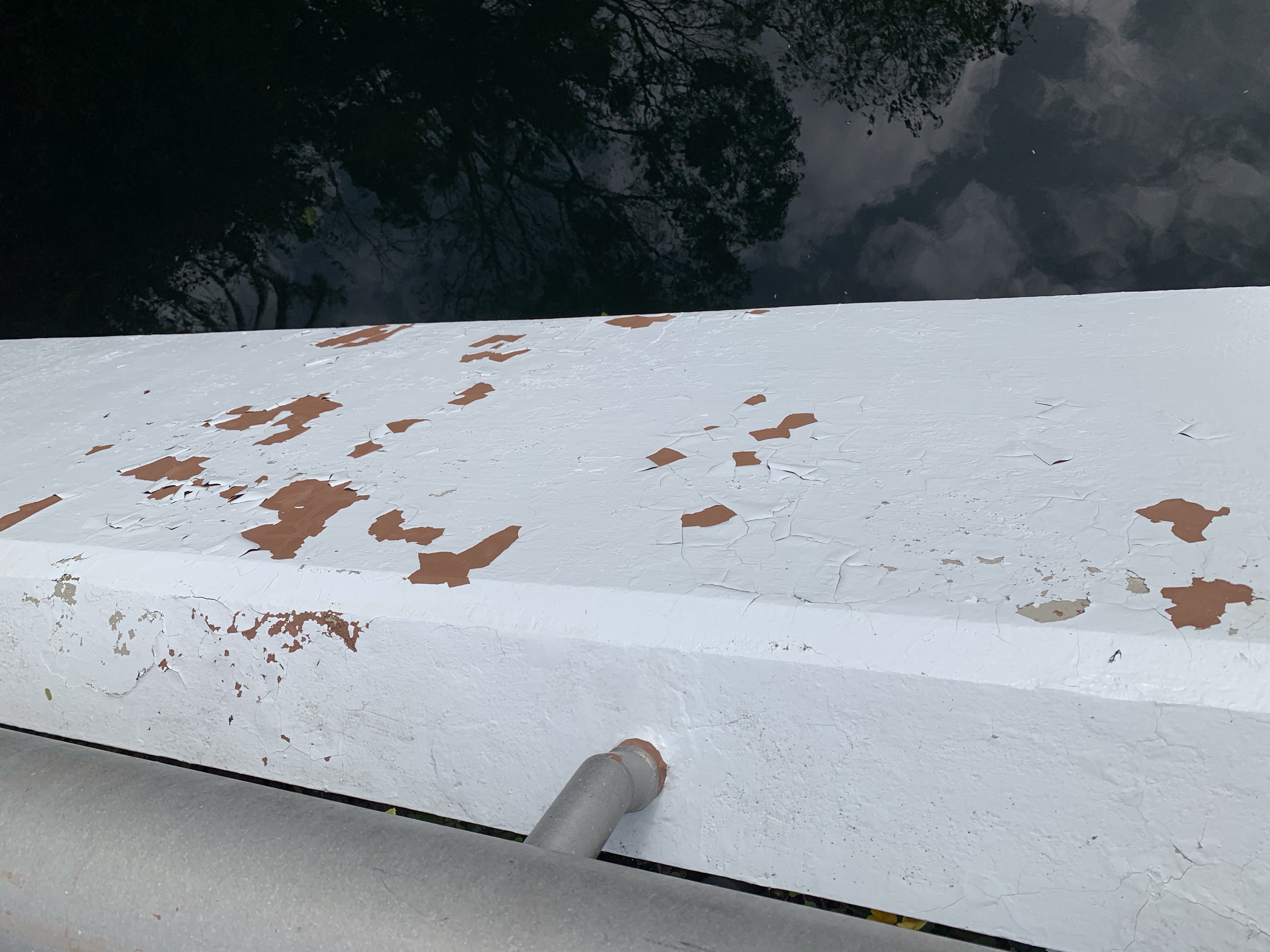 The very freshly painted walls outside of the Odyssey Pavilion are looking rough already. Major portions of the paint have already started peeling.