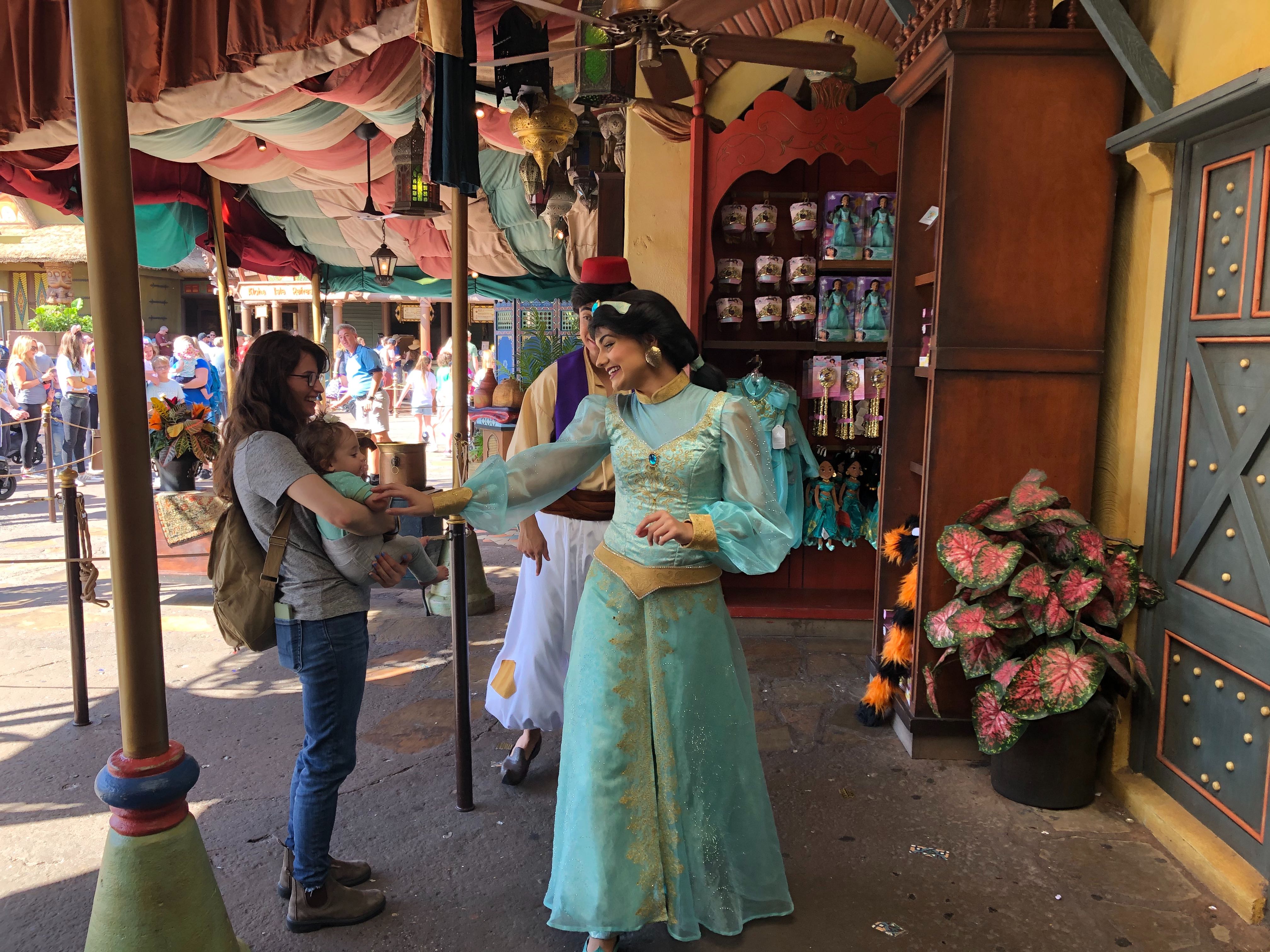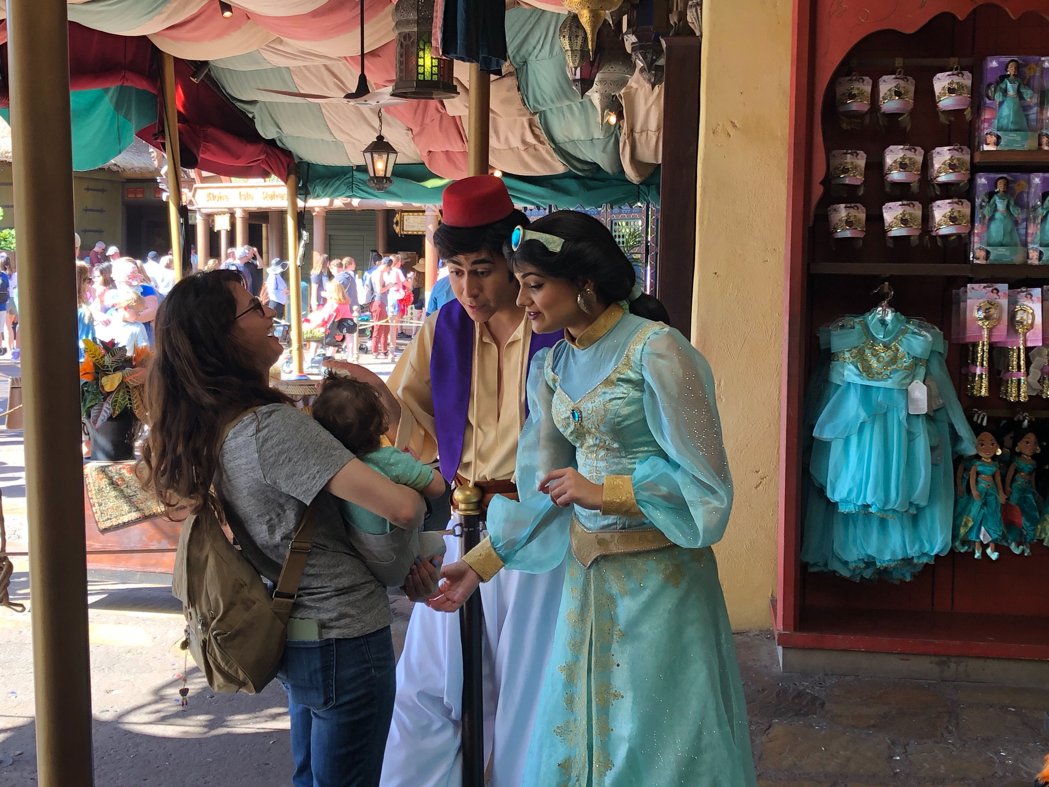 We spotted Aladdin and Jasmine having fun with an adorable baby.