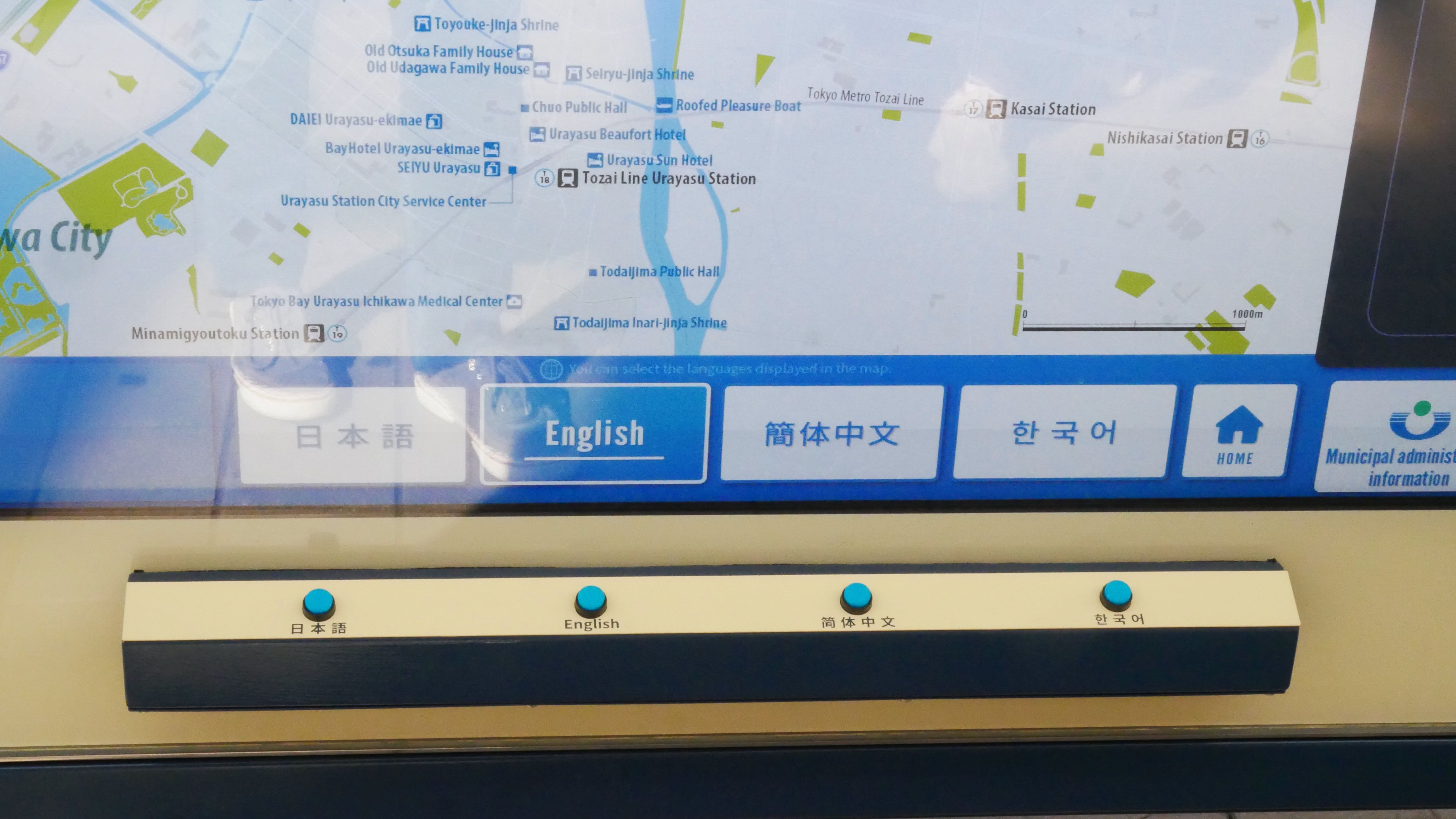 The map is available in Japanese, English, Mandarin, and Korean. We set it to English to take some pictures, but it resets to Japanese after a few minutes.