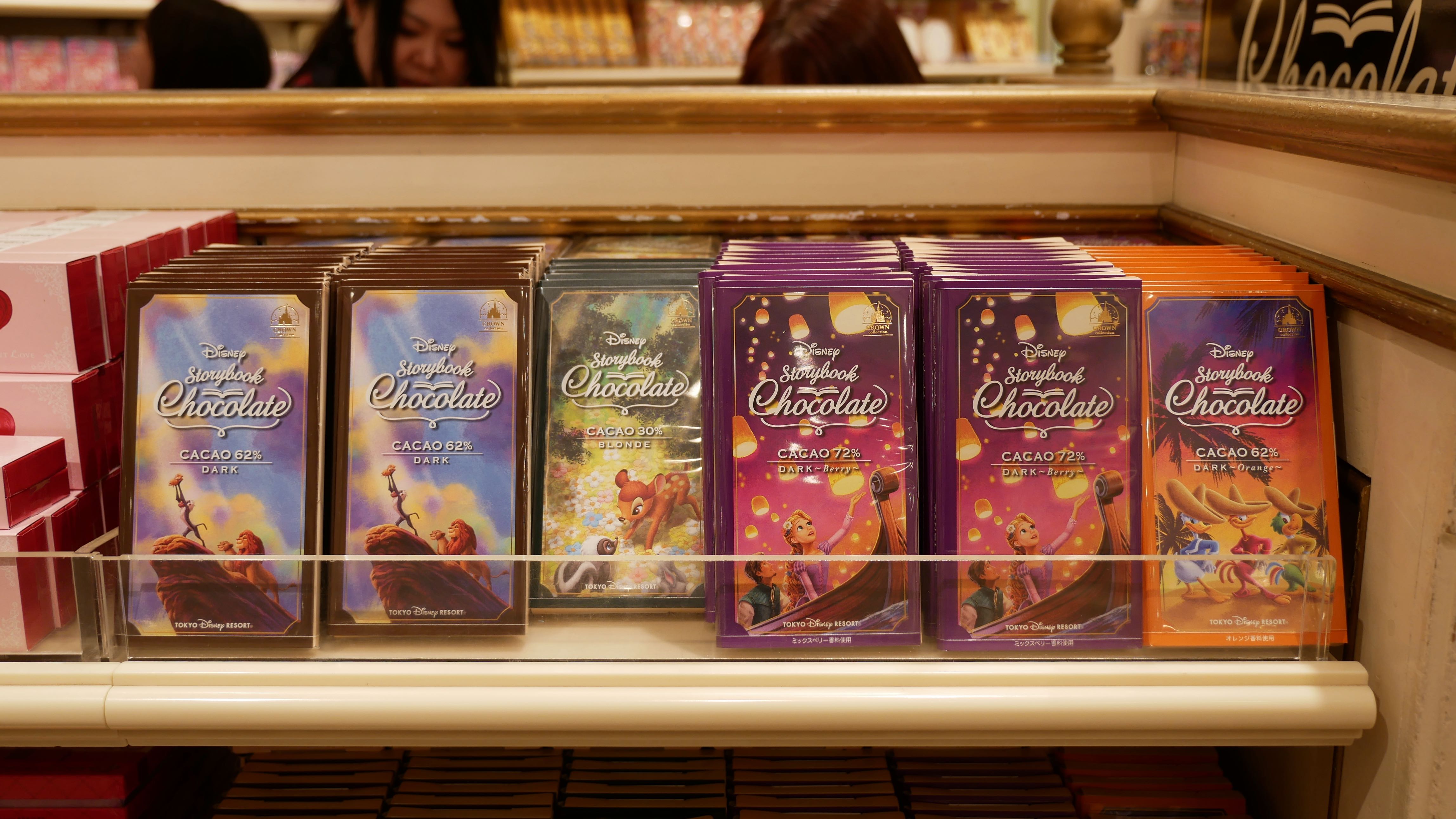 Since Valentine’s Day was last week, I figured we could take a look at the edible side of merchandise. Japanese people typically bring back small souvenirs or edible gifts to give to friends and family upon their return, called omiyage. The gift is meant as an apology for one’s absence during travel. These Storybook Chocolates, each with designs from a different Disney franchise (and corresponding amount of chocolate and/or flavor) all went for ¥750 ($6.83)