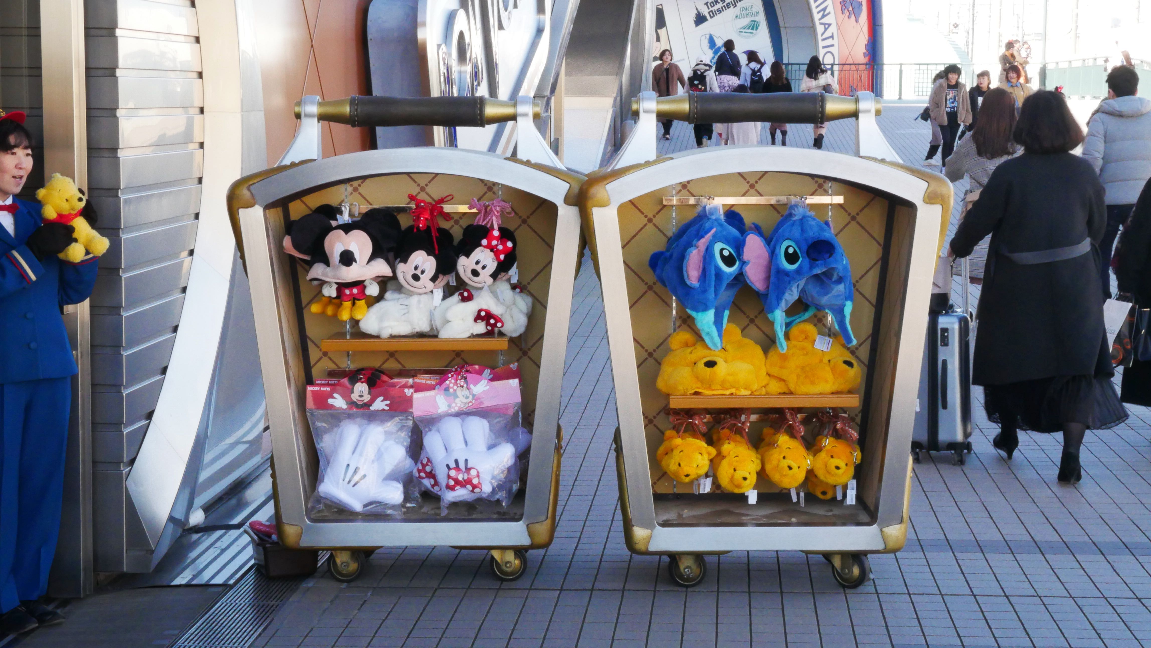 Merchandise carts featuring a few impulse purchases were on display outside Bon Voyage. Just in case you need a quick hat or pass case on the way to Tokyo Disneyland!