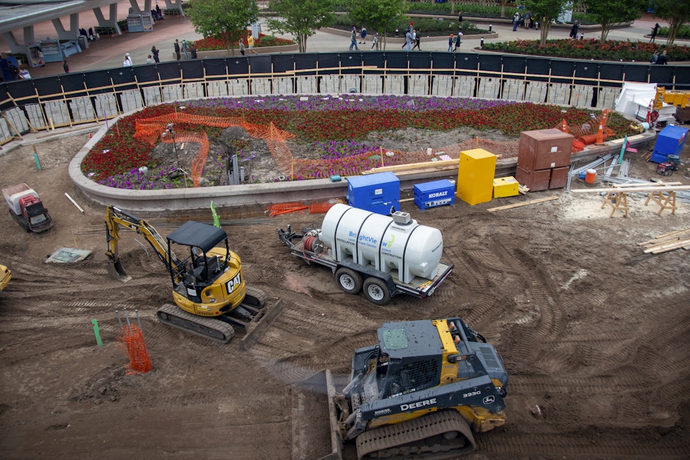 PHOTOS: EPCOT Entrance Enhancements Add New Paving, Planters Begin to Form
