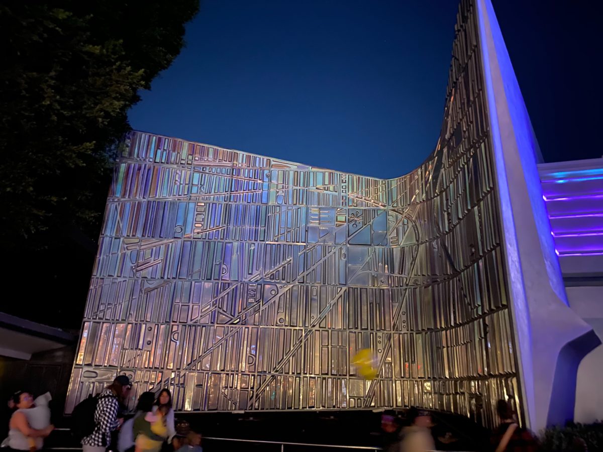 Although there are no sconce lights shining up to help illuminate the new walls like on the other side, this wall still catches our eye and the other bright lights in Tomorrowland help it glow in the meantime.
