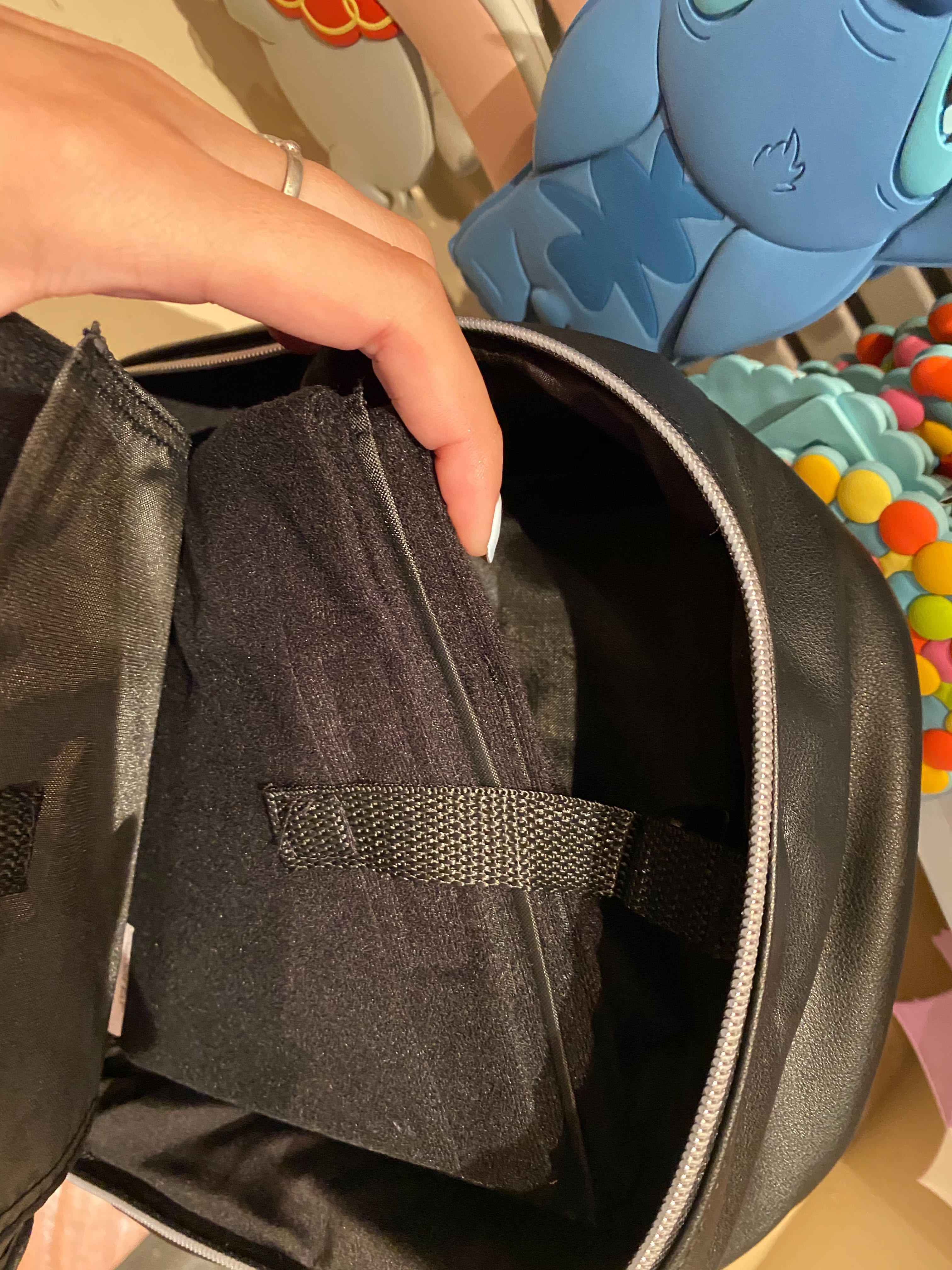 The Mickey cutout elevates the design of this simple black backpack.