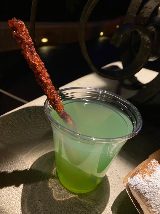 Ah, here is where the magic stopped and the voodoo kicked in. The Voodoo Magic drink is lemonade with green apple syrup garnished with a rock candy straw.