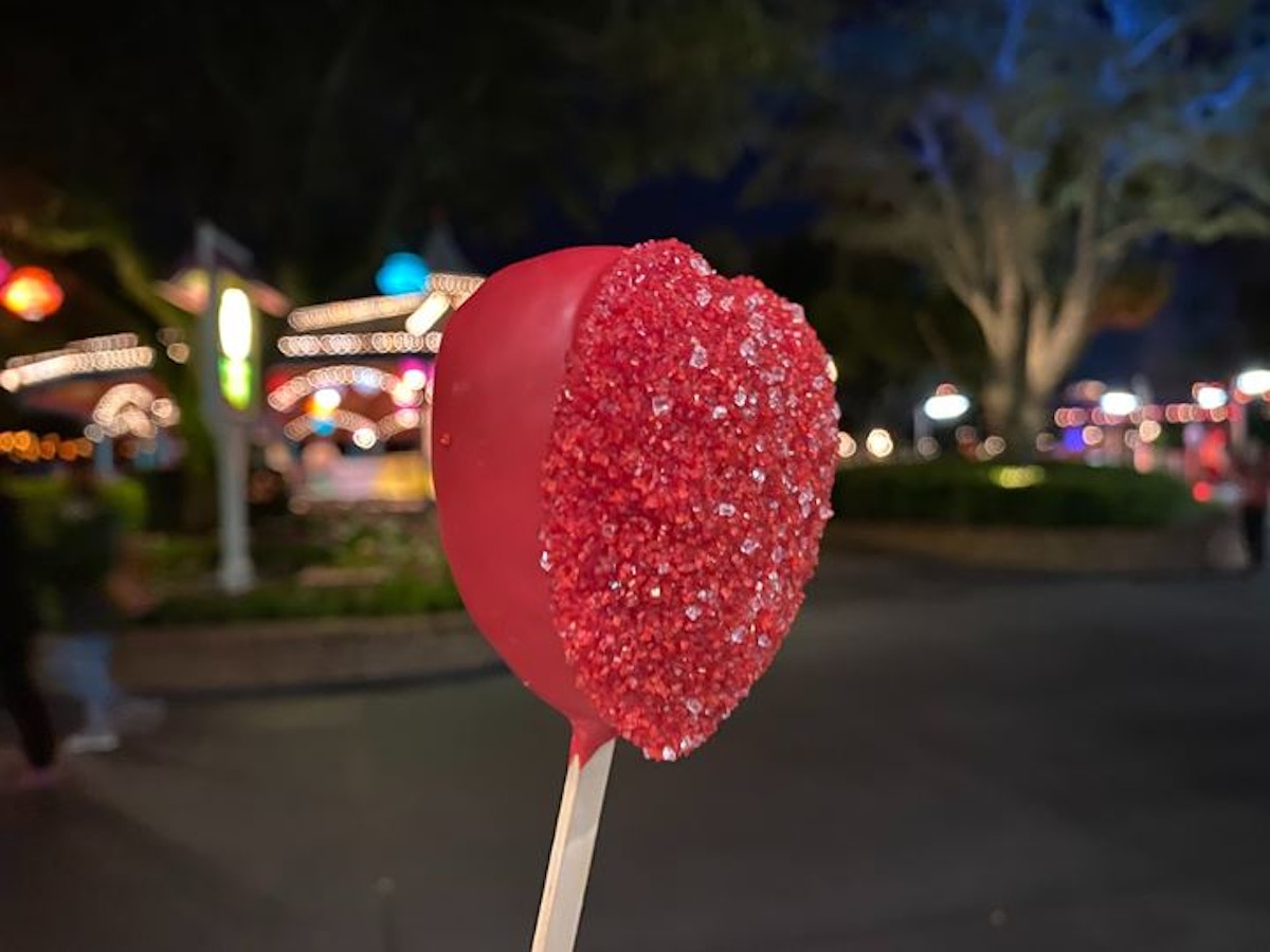 The Royal Majesty is a strawberry flavored cake pop, dipped in red chocolate and coated in red sprinkles.