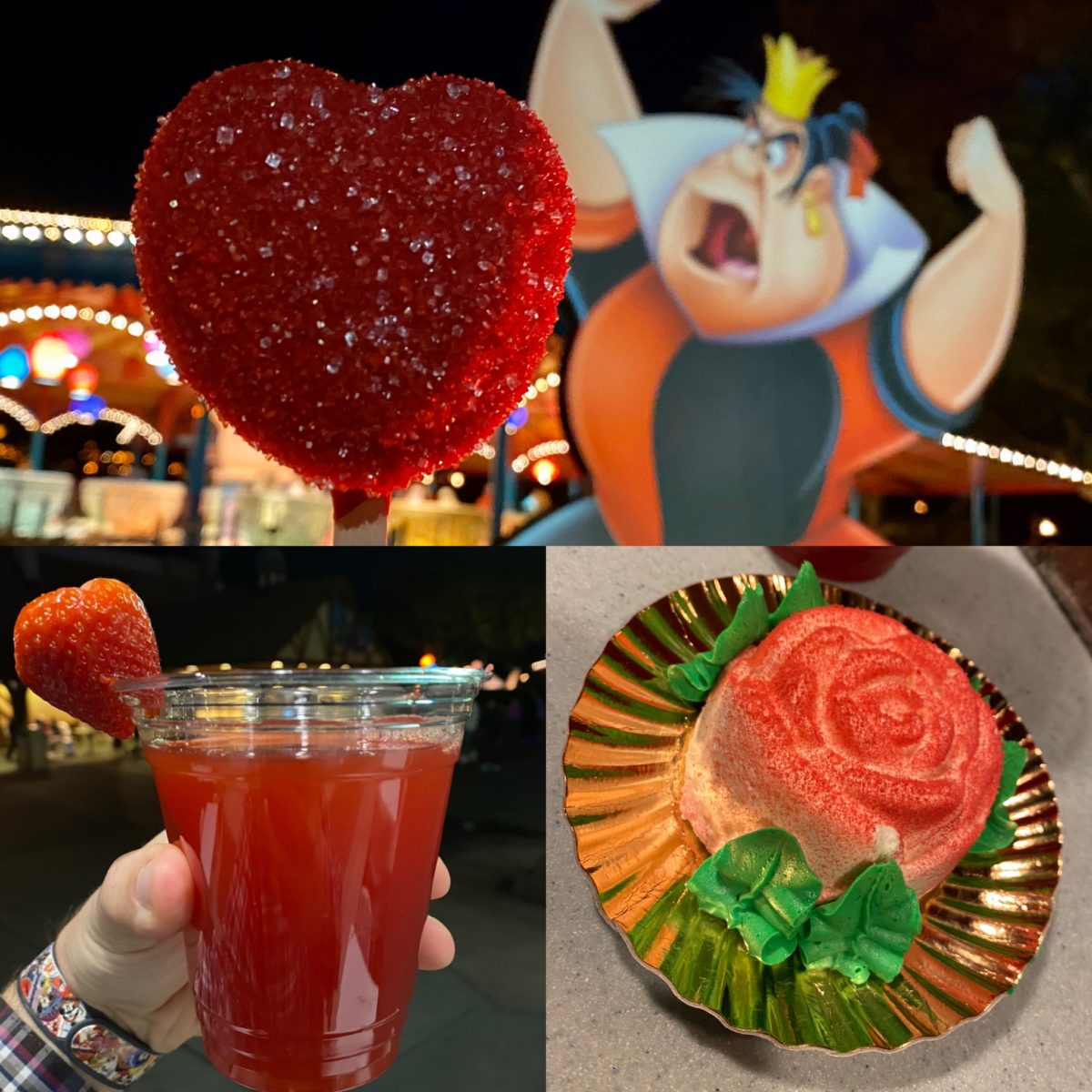 Tonight starts the first of many Disney Villains After Hours 2020 events that will run on select nights until July 10th, 2020. The event this year has brought new merchandise, a new parade, and tasty treats themed after several classic Disney villains. We’ve been snacking our way through them and next up is the Queen of Hearts, who has a multitude of treats at the Chesire Cafe.