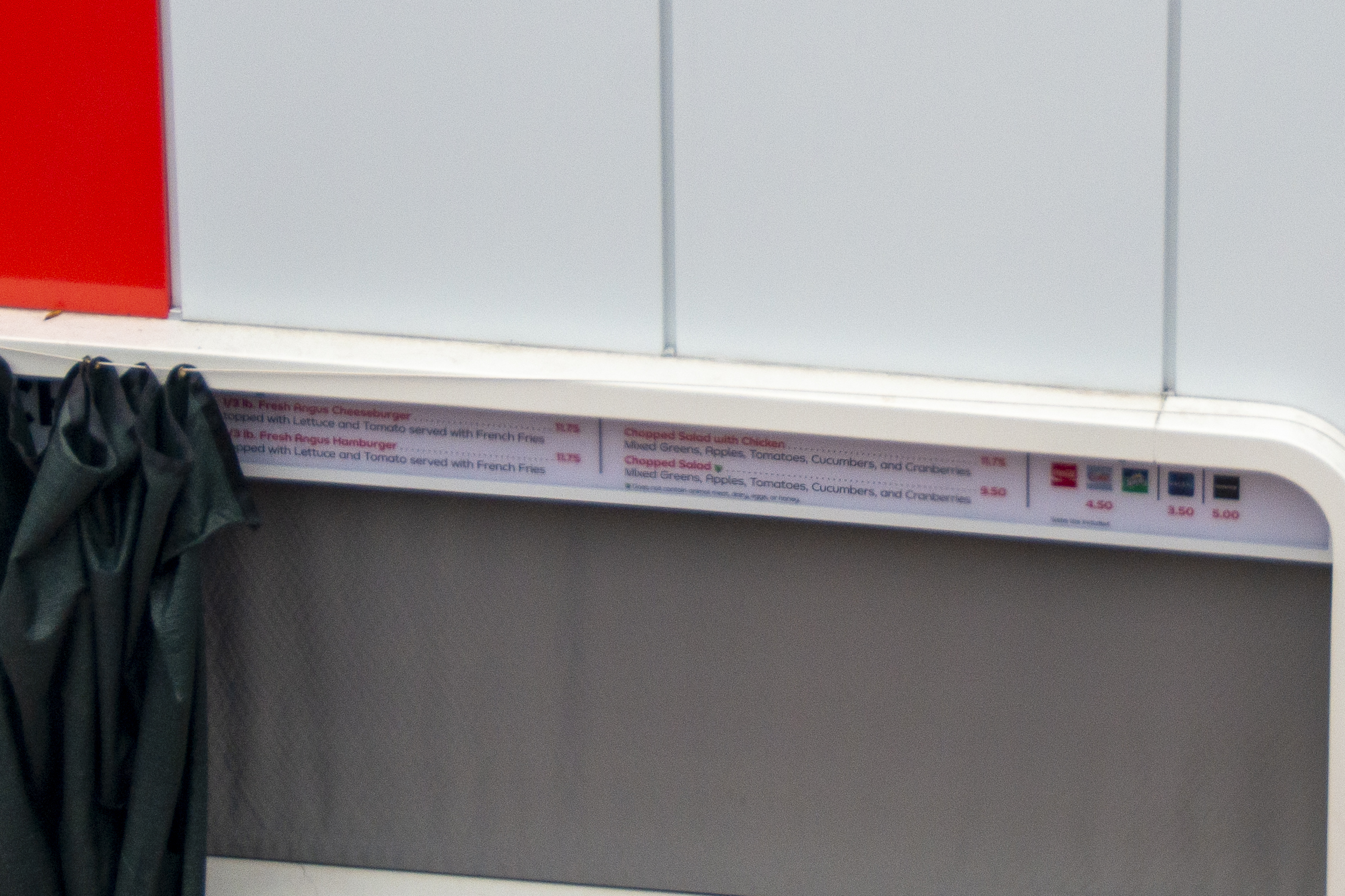 Here are the food items we could detail from the partially-revealed menu: