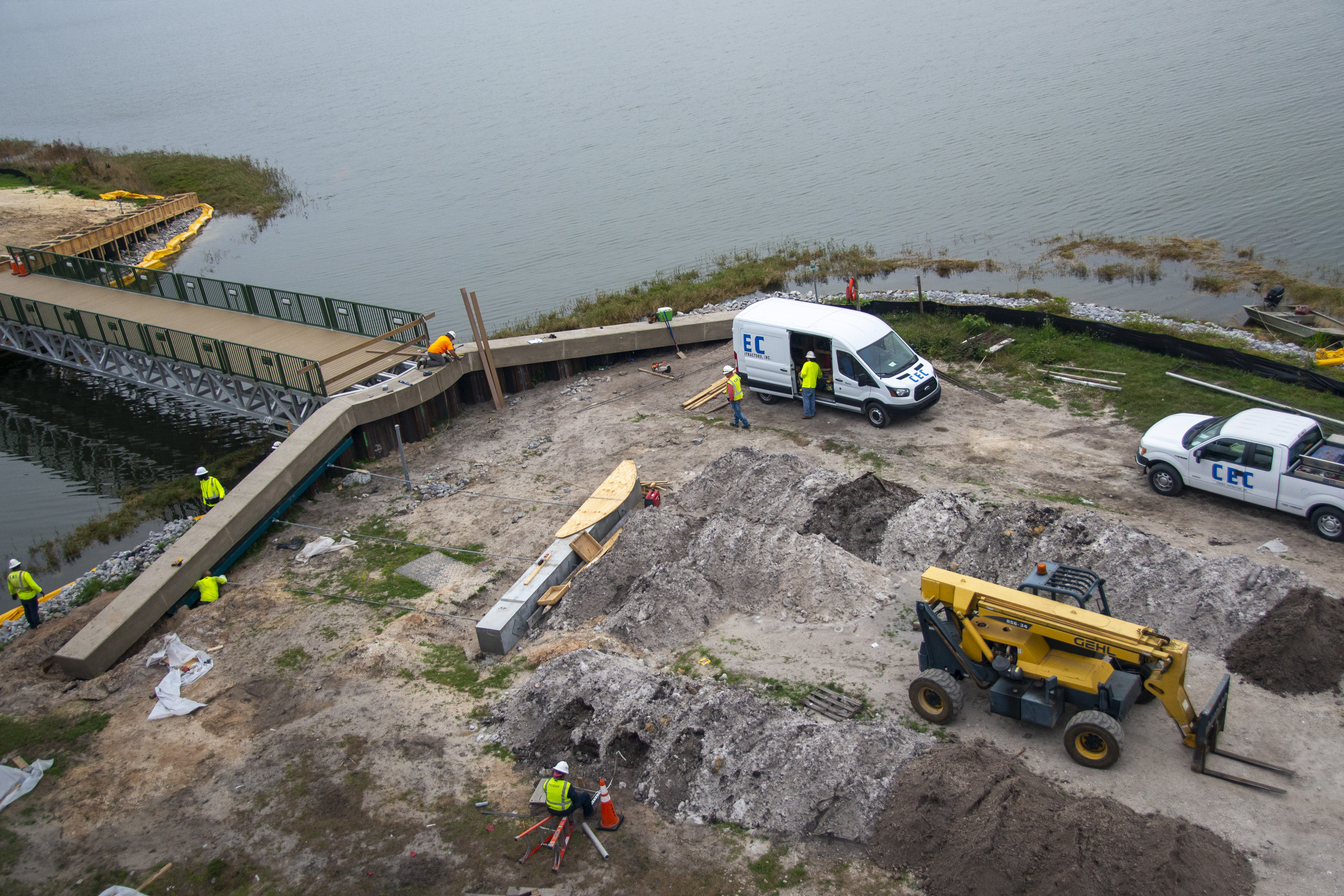 As guests approach the site of the bridge over the main canal, the structures are starting to take shape at either end of the pathway.