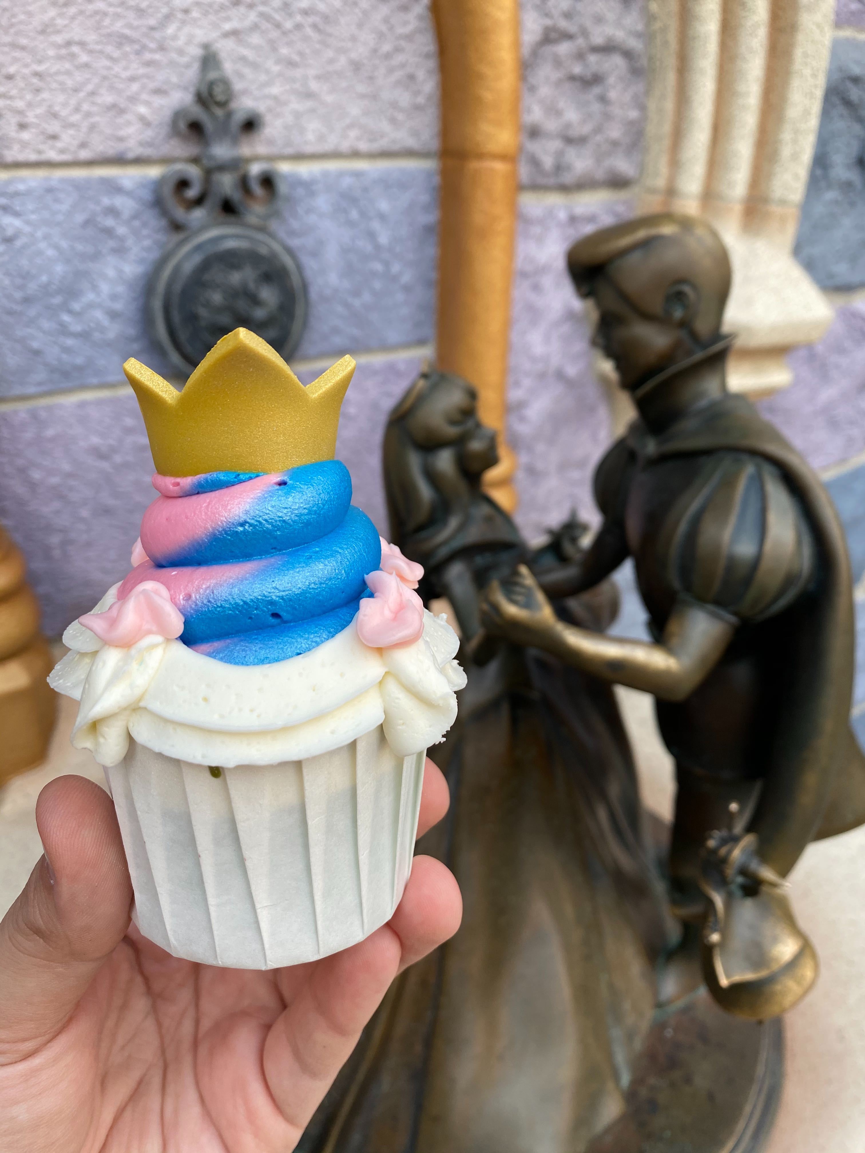 You will feel like a princess looking at your crown on top of this vanilla cupcake. If you feel like you’ve seen this crown before, you have. The same crown is used in the Poor Unfortunate Soul float at Disney Villains After Hours in Walt Disney World. Like we mentioned in our review there, it’s more for show than anything else, and we don’t recommend eating it.