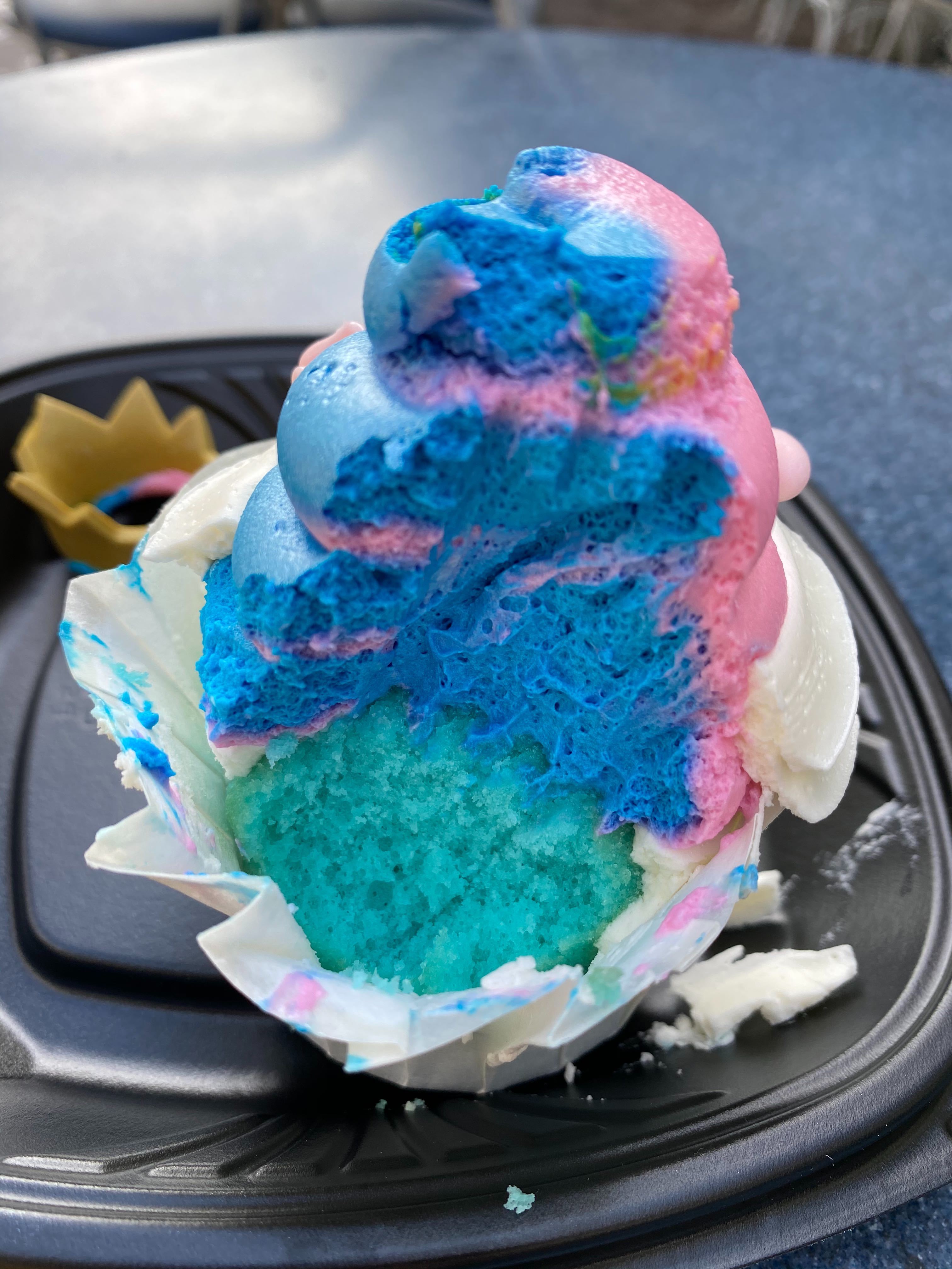 Overall, we thought this was one of the best cupcakes we have ever had at a Disney Park. It wasn’t too rich where we felt awful for eating it, and it was a tie between beautiful appearance and great flavor.