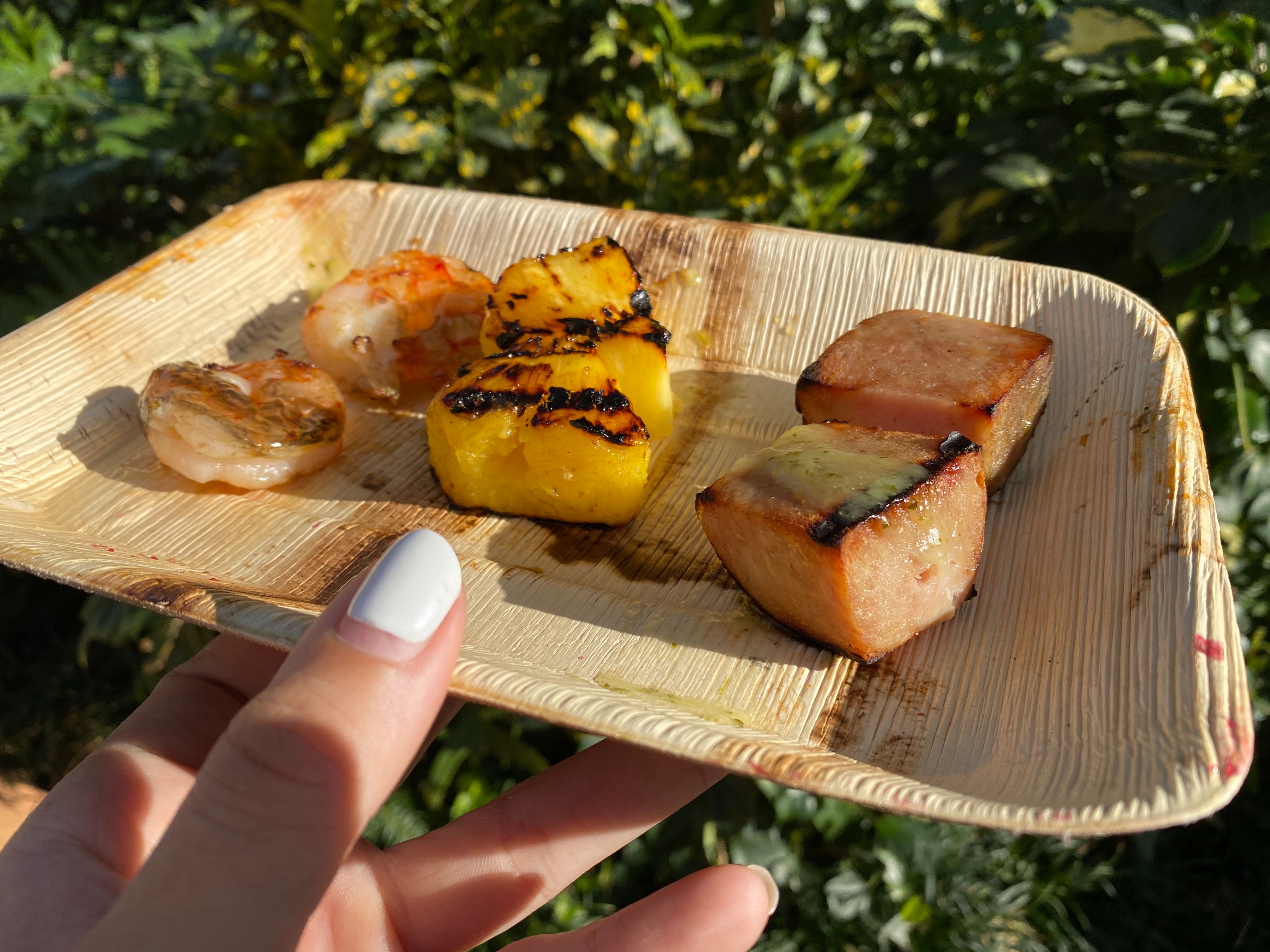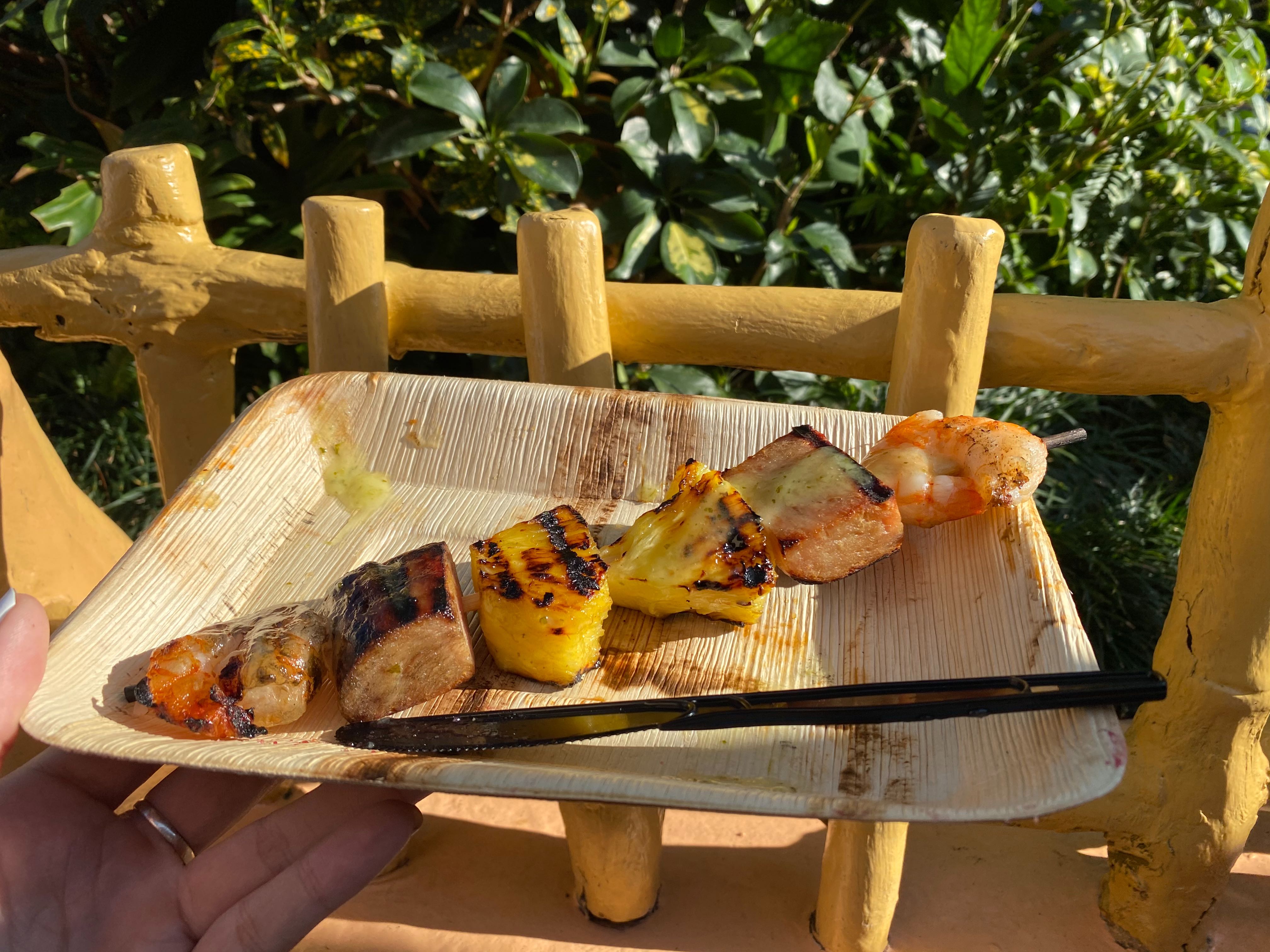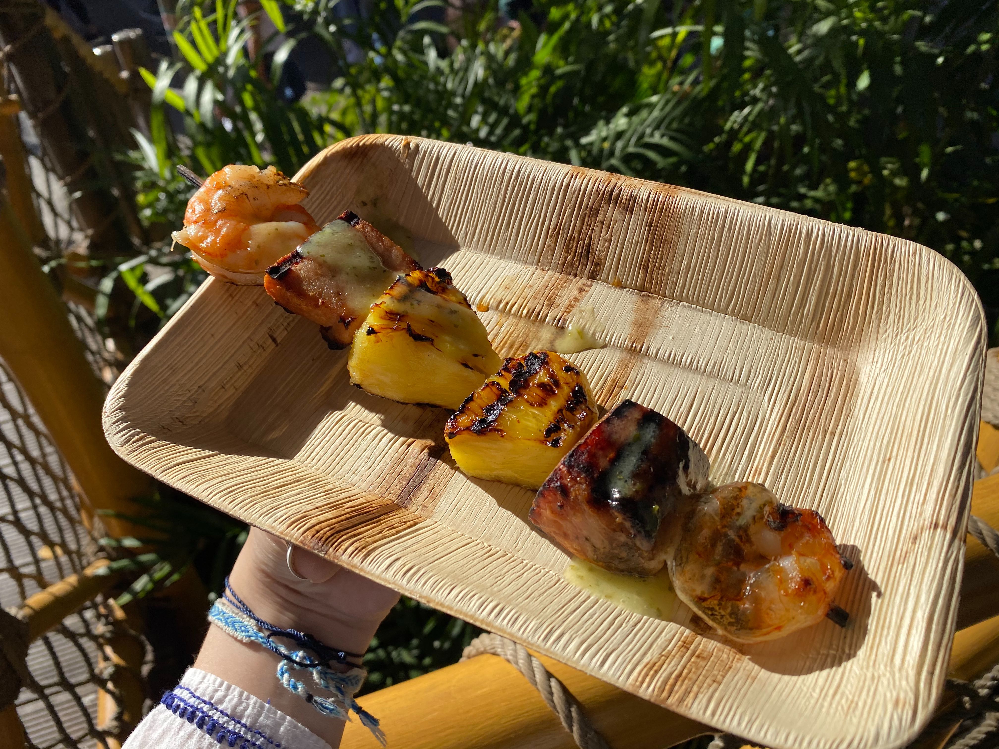 The piña colada sauce was the best part. We wish there was more of it. It added a sweet fruity flavor to all of the items on the skewer. It was light, but it coated all the food.