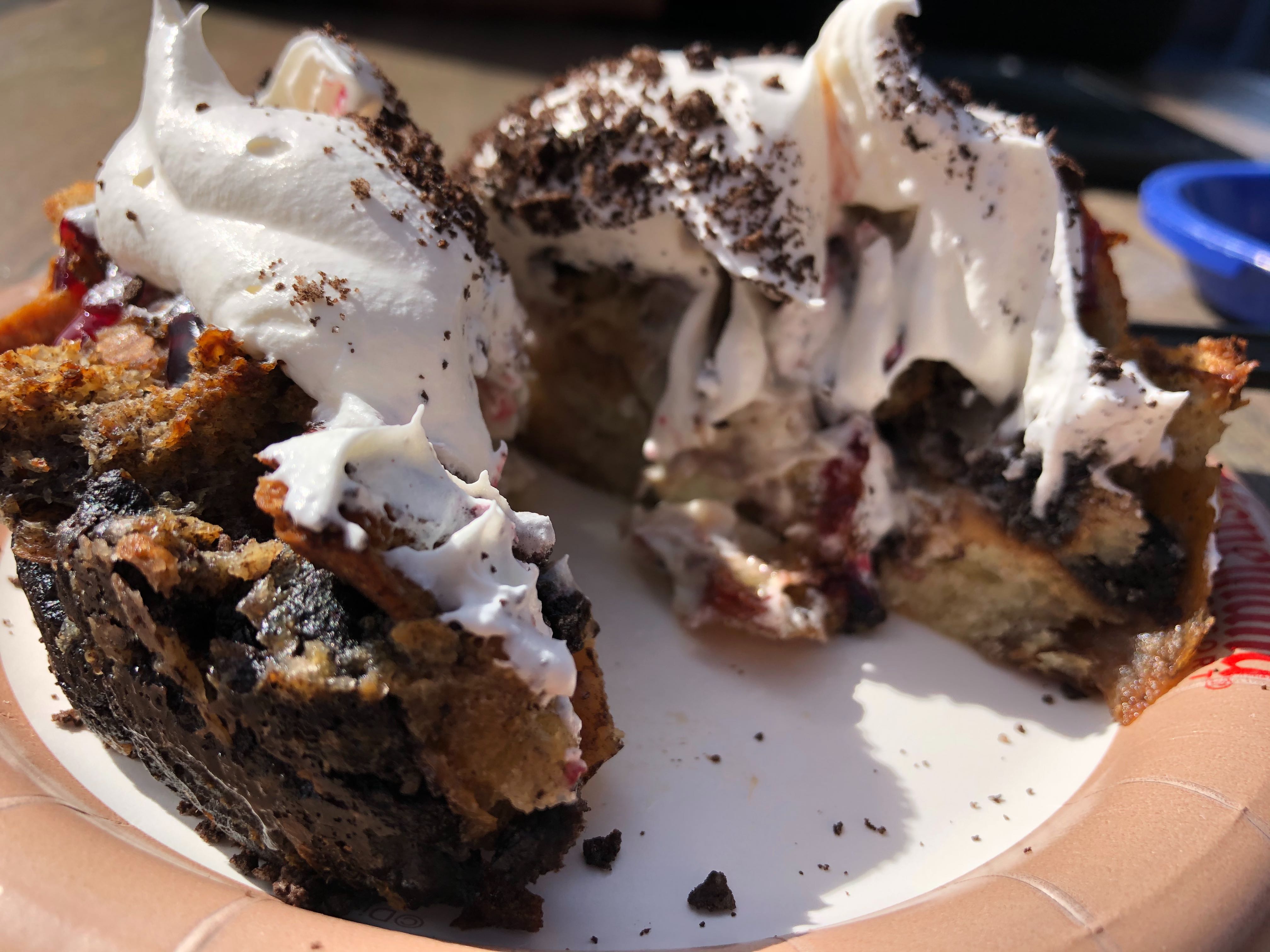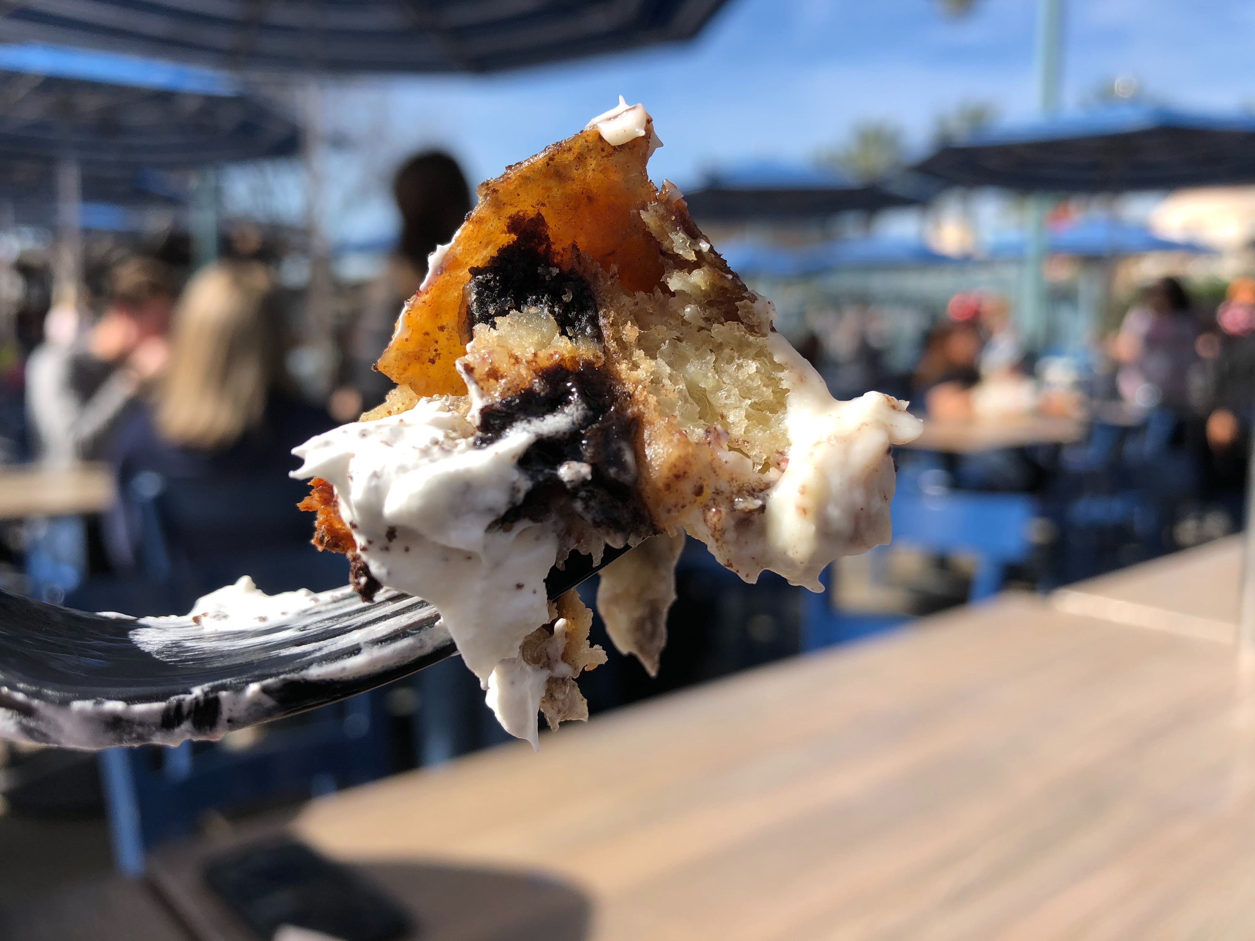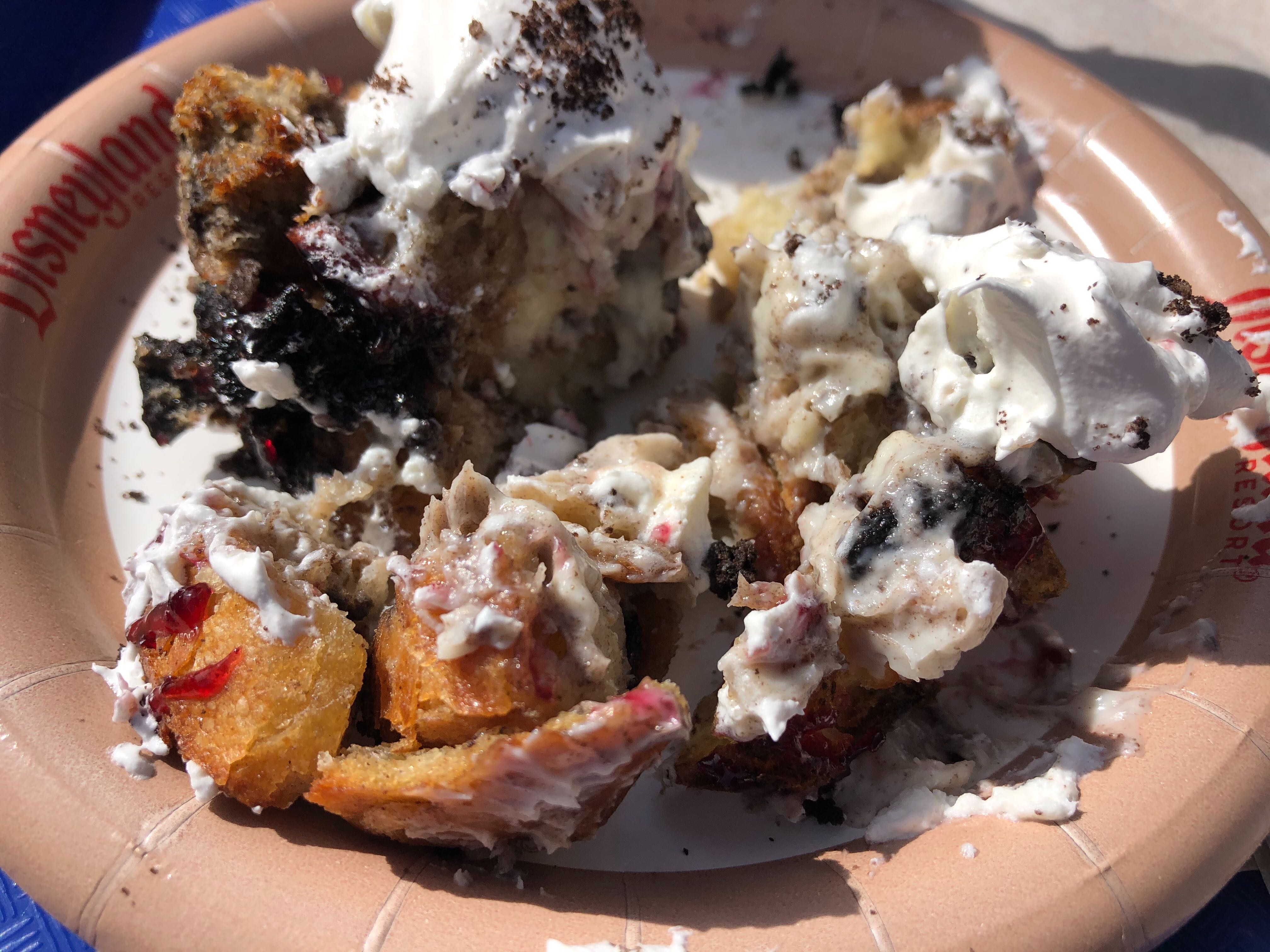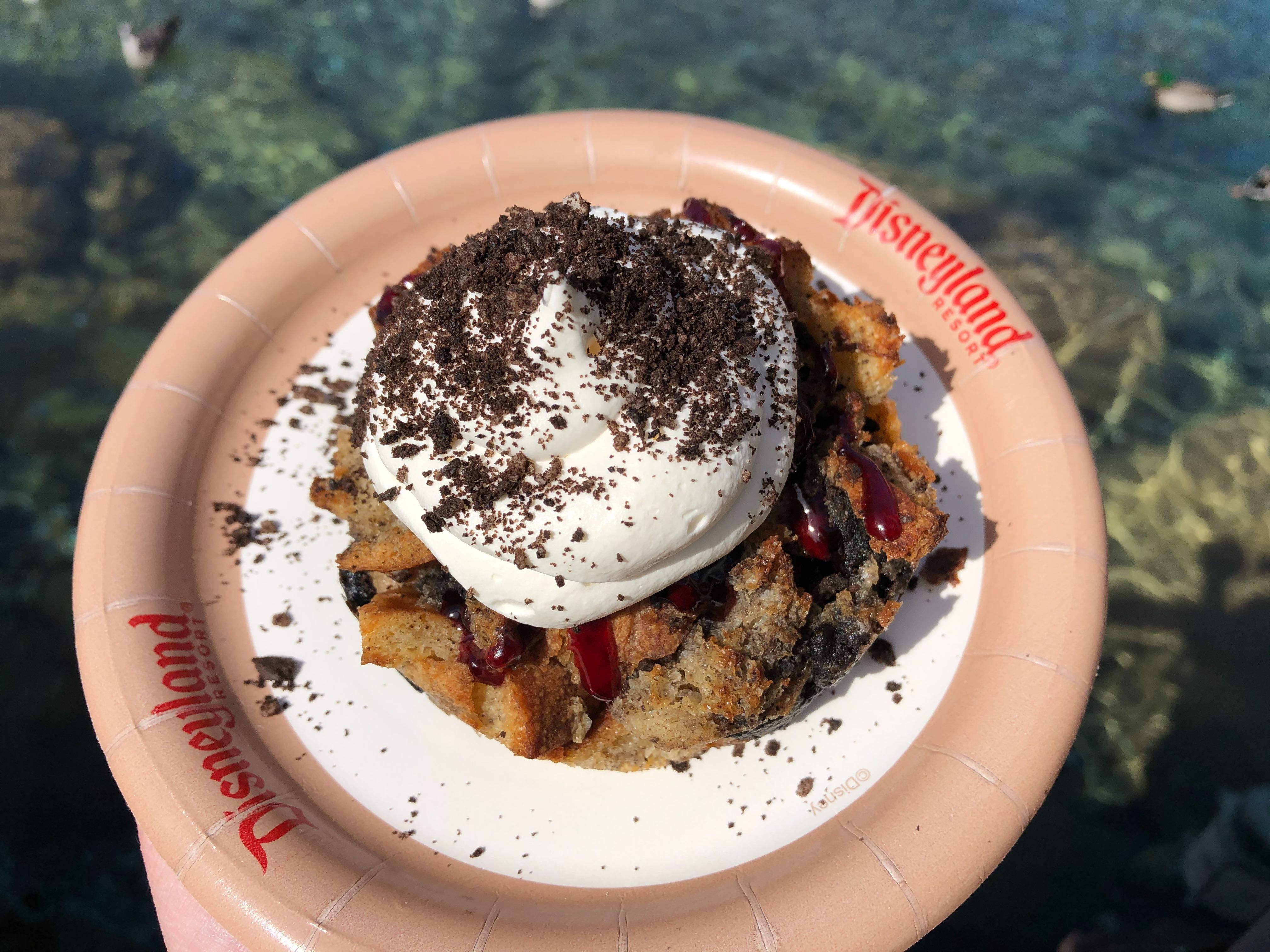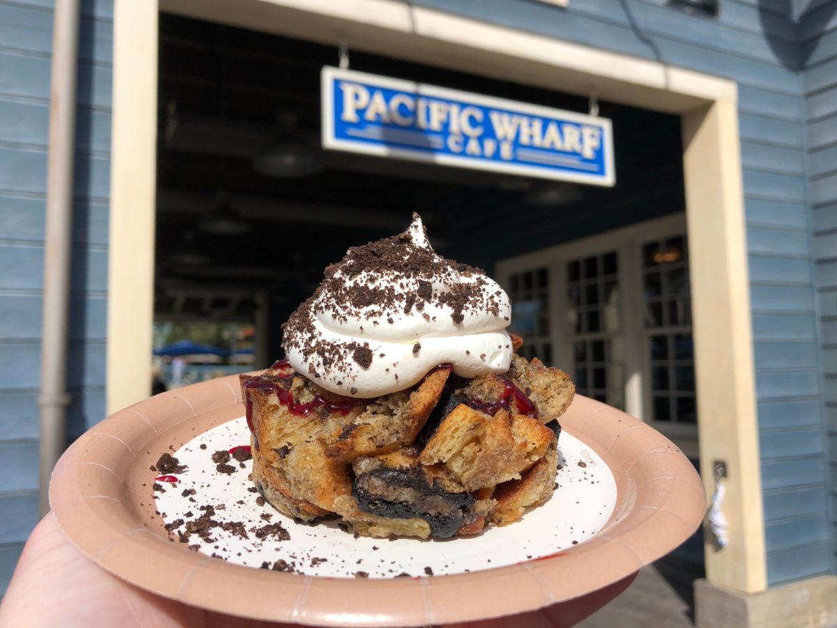 It’s still wintertime at Disney California Adventure and Pacific Wharf Café has you covered with a Seasonal Bread Pudding. This bread pudding comes with Cookies and Cream Cheesecake Filling topped with Raspberry Sauce, Whipped Cream, and Cookie Crumbles. We found this to be an overall solid dessert option at the park, but not a bonafide winner based on your flavor preference.