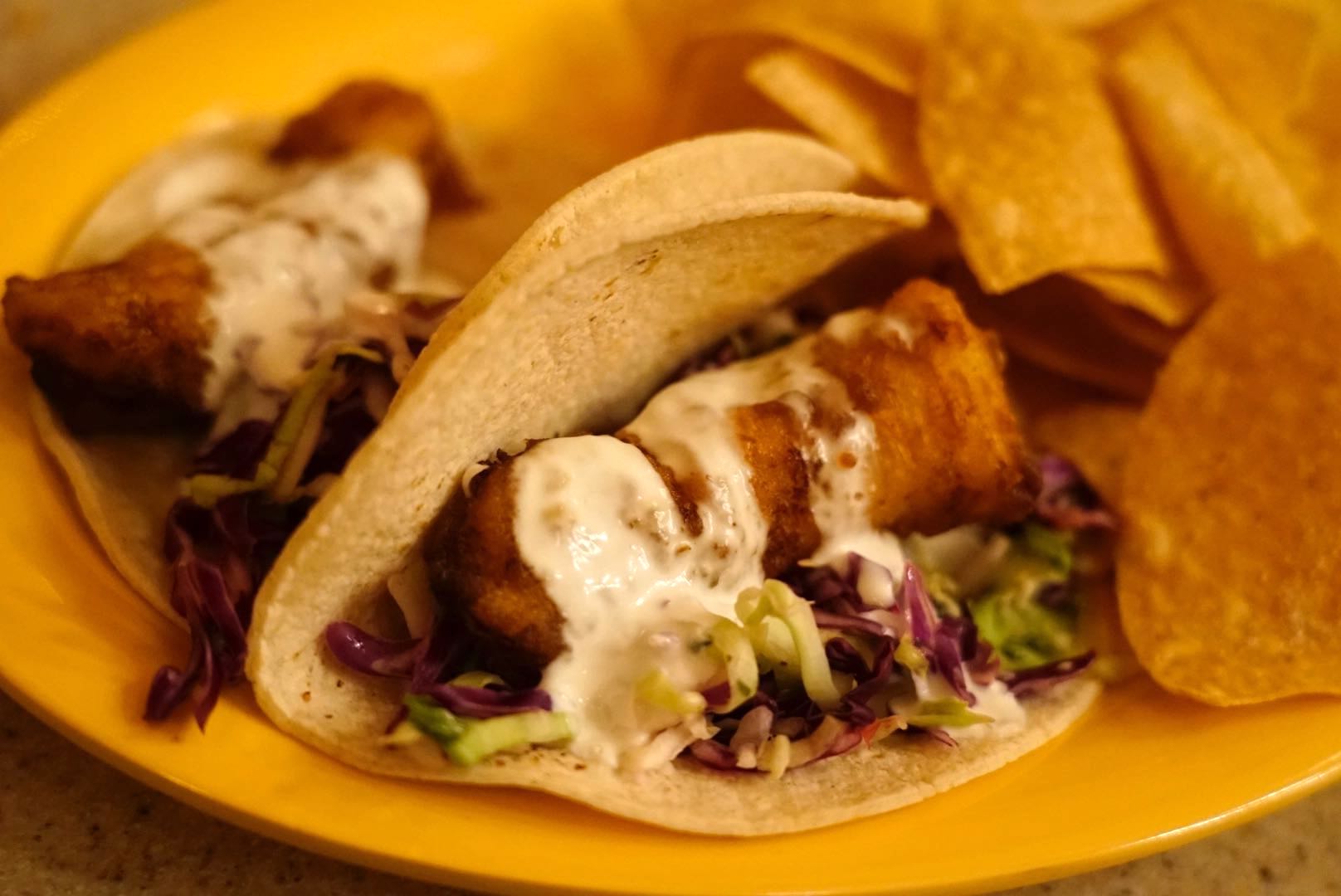 Beer-battered Fish Tacos, with Karl Strauss® Follow the Sun Pilsner-infused Batter – $13.49