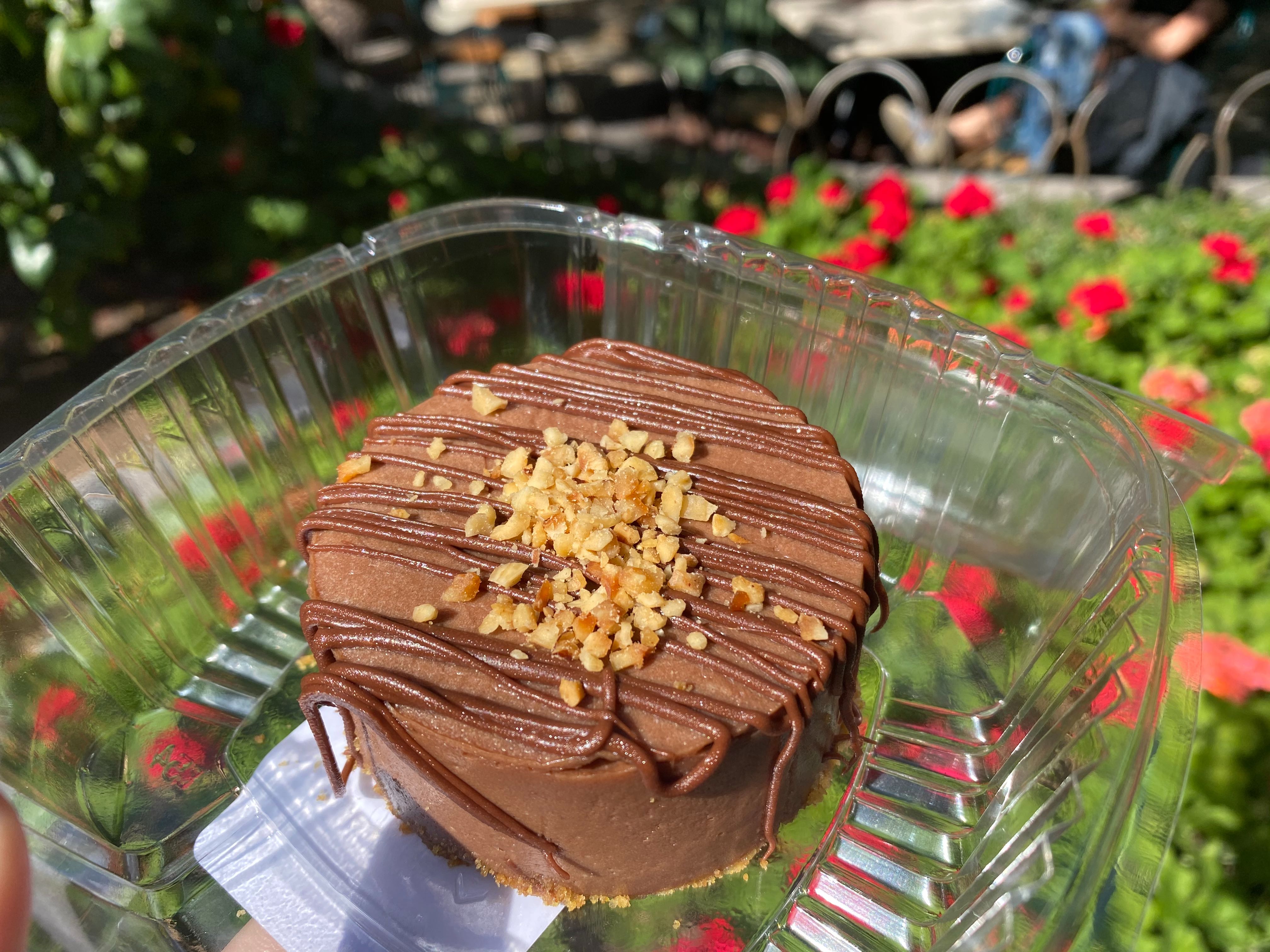 This cheesecake is topped with a chocolate hazelnut drizzle and chopped hazelnuts. Aesthetically, the drizzle and topping really glams up what could’ve been a very boring-looking cheesecake.