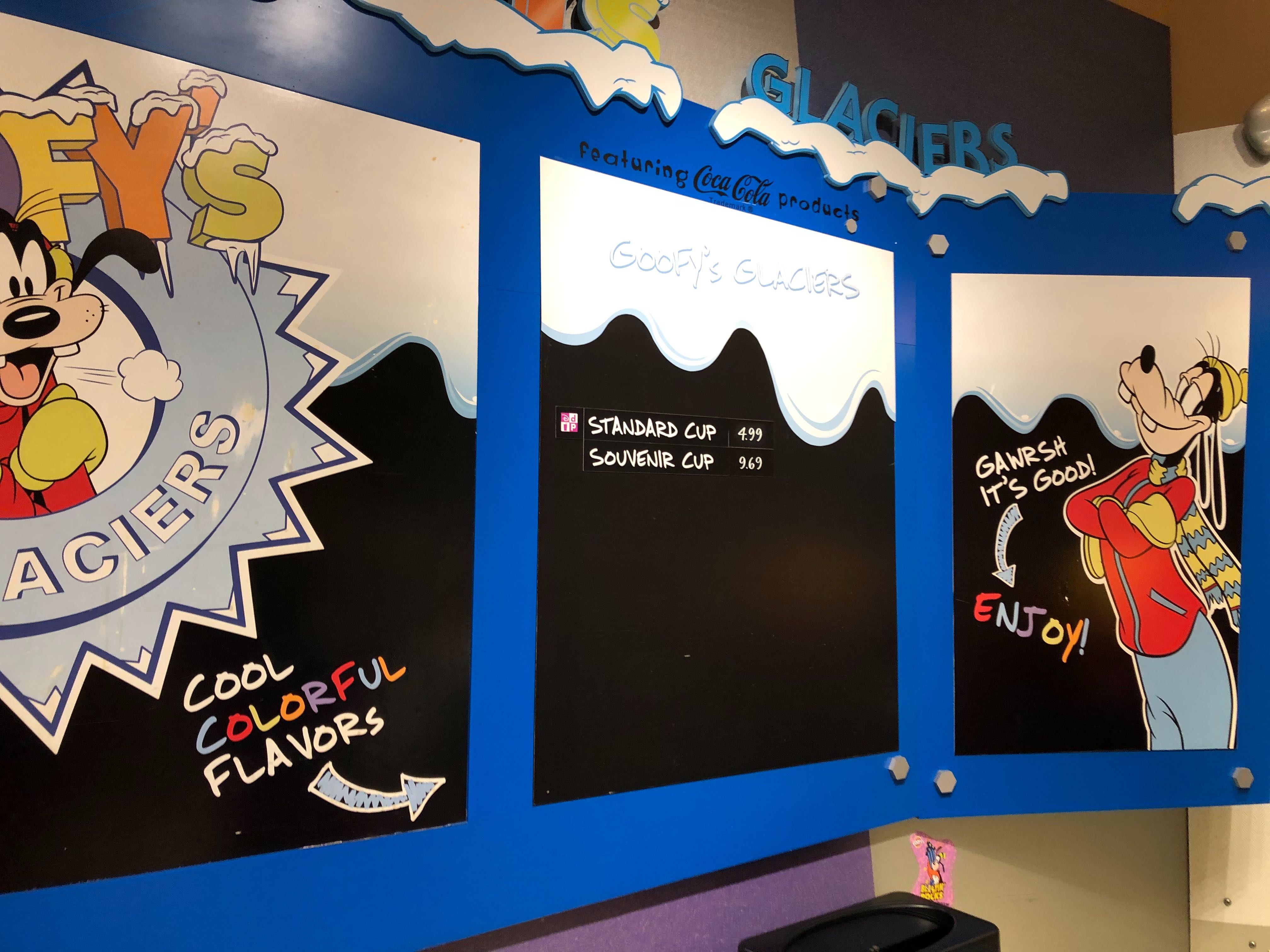 Inside Goofy’s Candy Co., Goofy’s Glaciers were unavailable. Cast Members had started to clean the machines early.