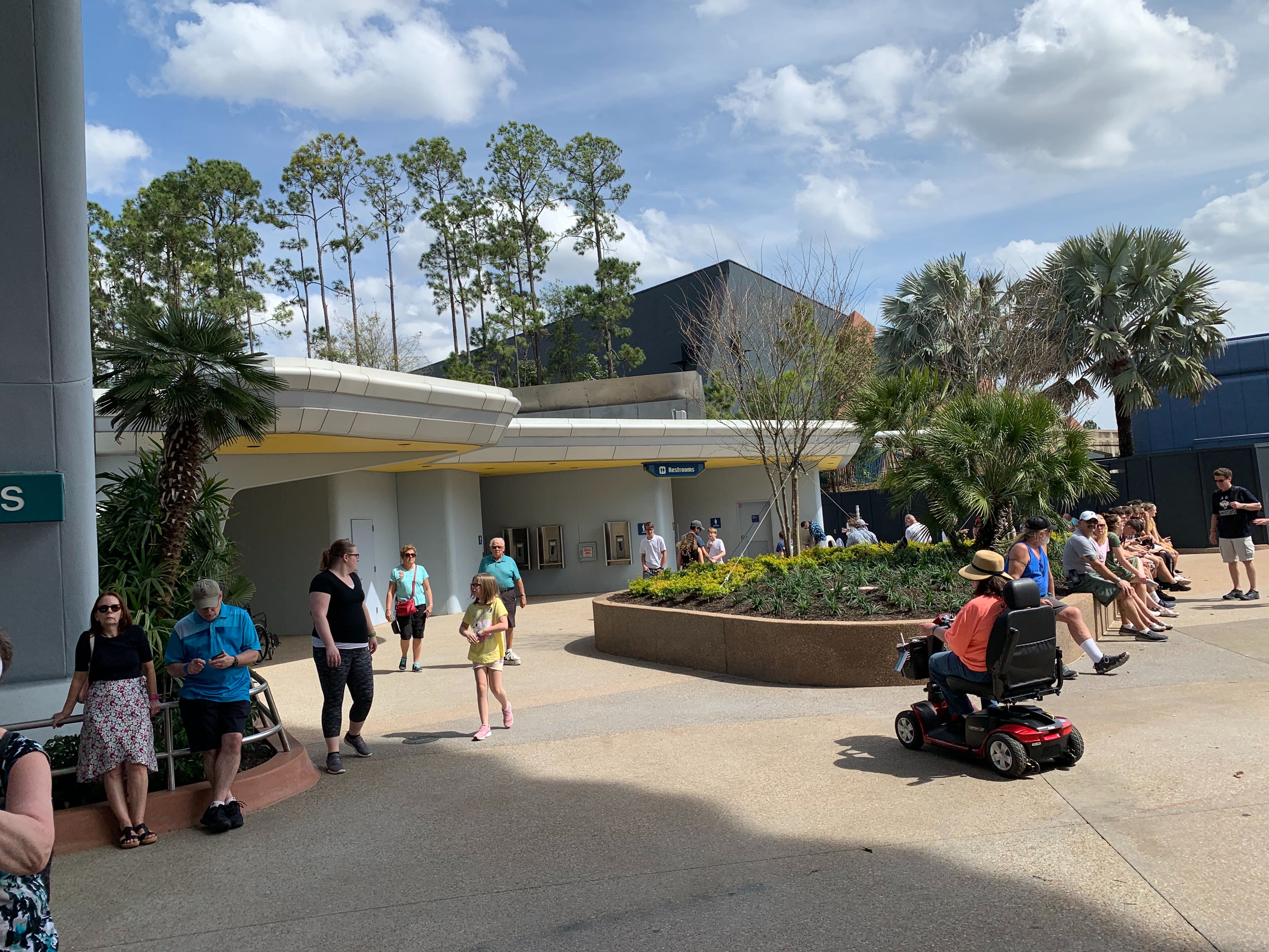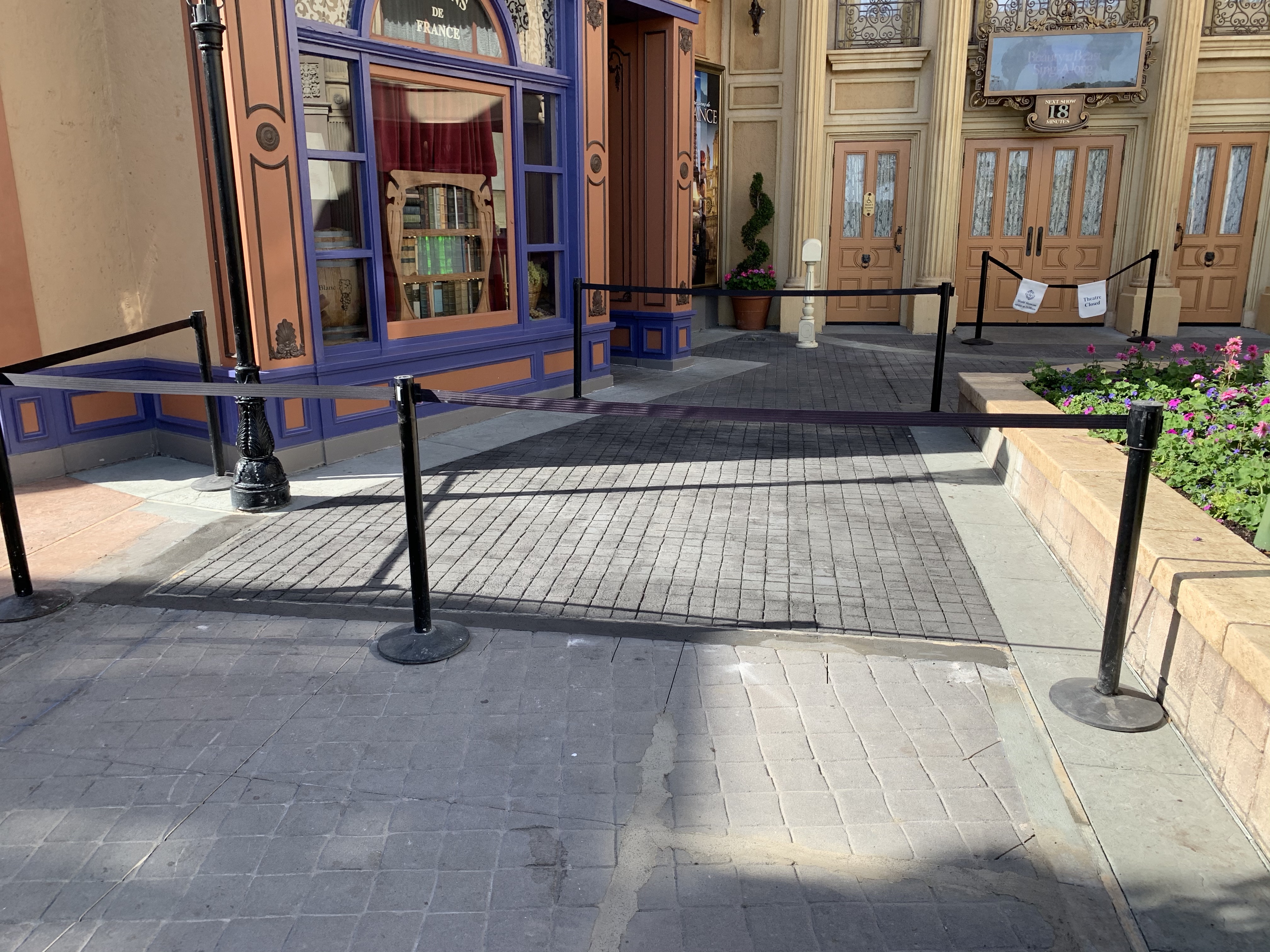 The restrooms on the east side of Spaceship Earth reopened today. This change also caused a new walkway to open, featuring new construction wall art from “Big Hero 6”.