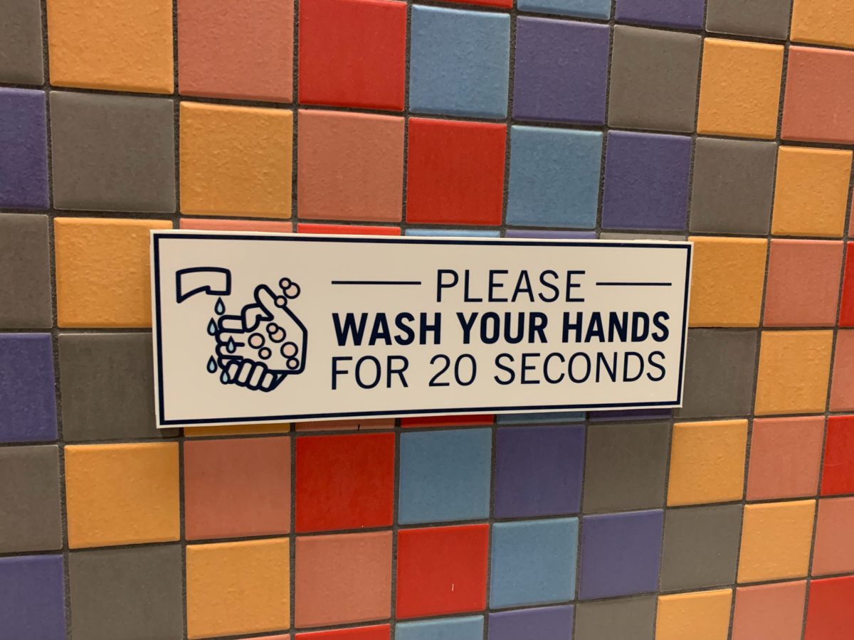 Over in Disneyland, new signs have been added to the restrooms located below the Mickey and Friends Parking Structure. The signs state: “Please wash your hands for 20 seconds”––the minimum amount of time recommended by the CDC.