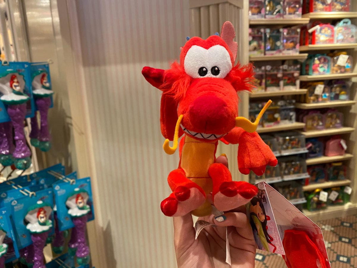 Mushu is seen here in a felt and plush form, ready to assist you in any of your adventures! He sits a little bit differently than the other shoulder plush figures we’ve seen, such as Pascal or Baby Groot, but he’s still sure to look great on top of your shoulder.