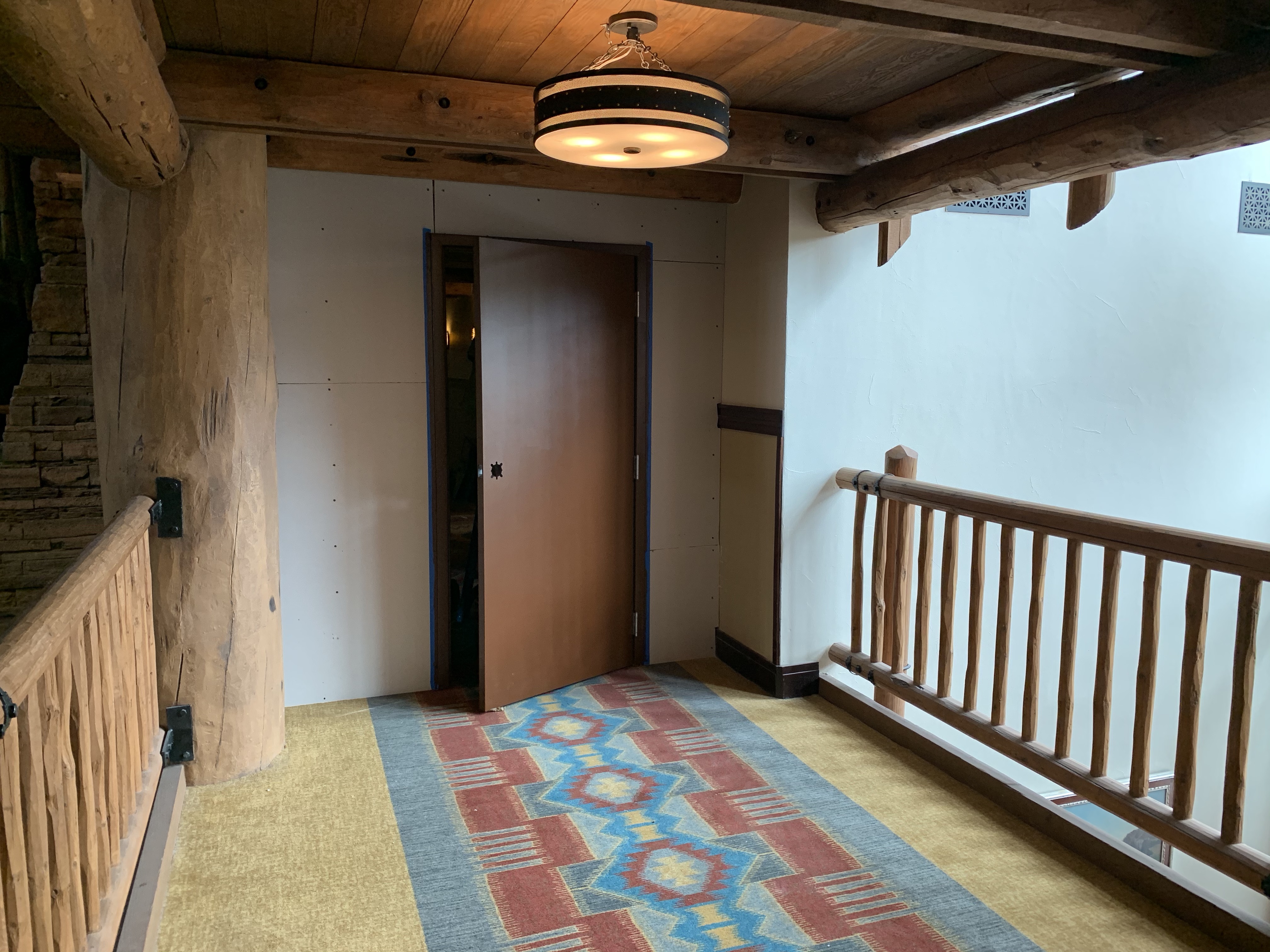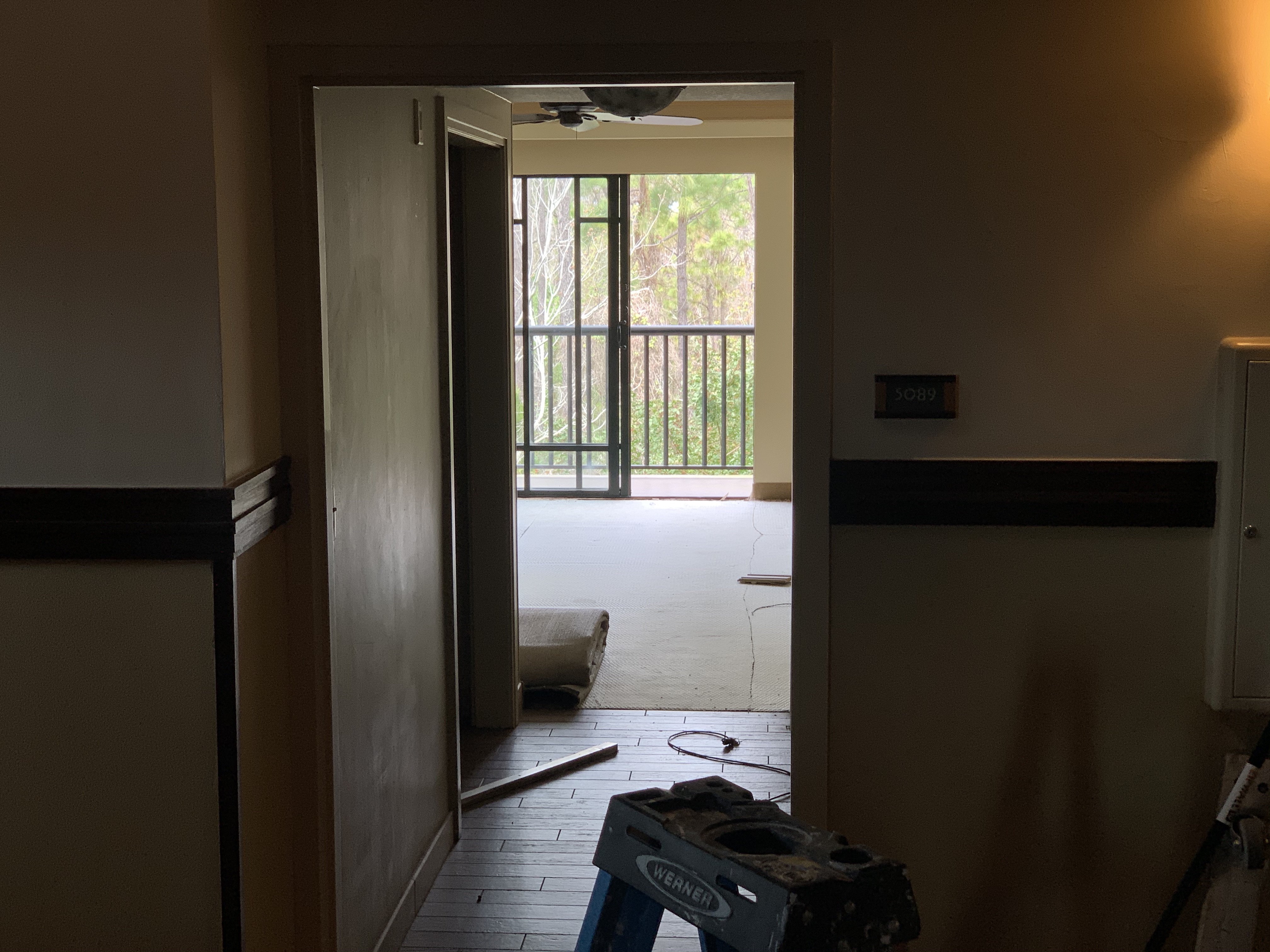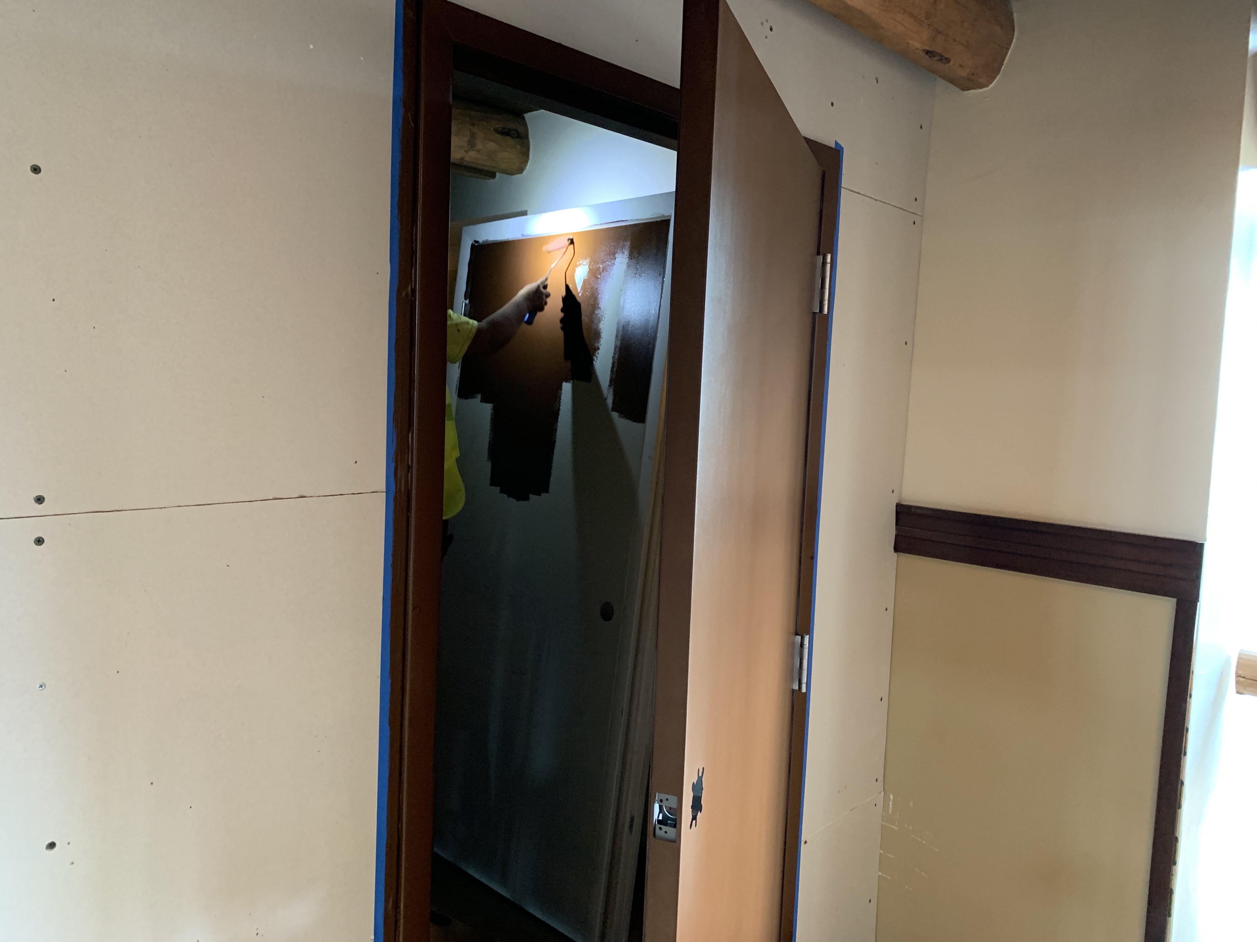 Behind this construction wall on the 5th floor, we were able to see some doors being painted with a fresh coat of brown paint.