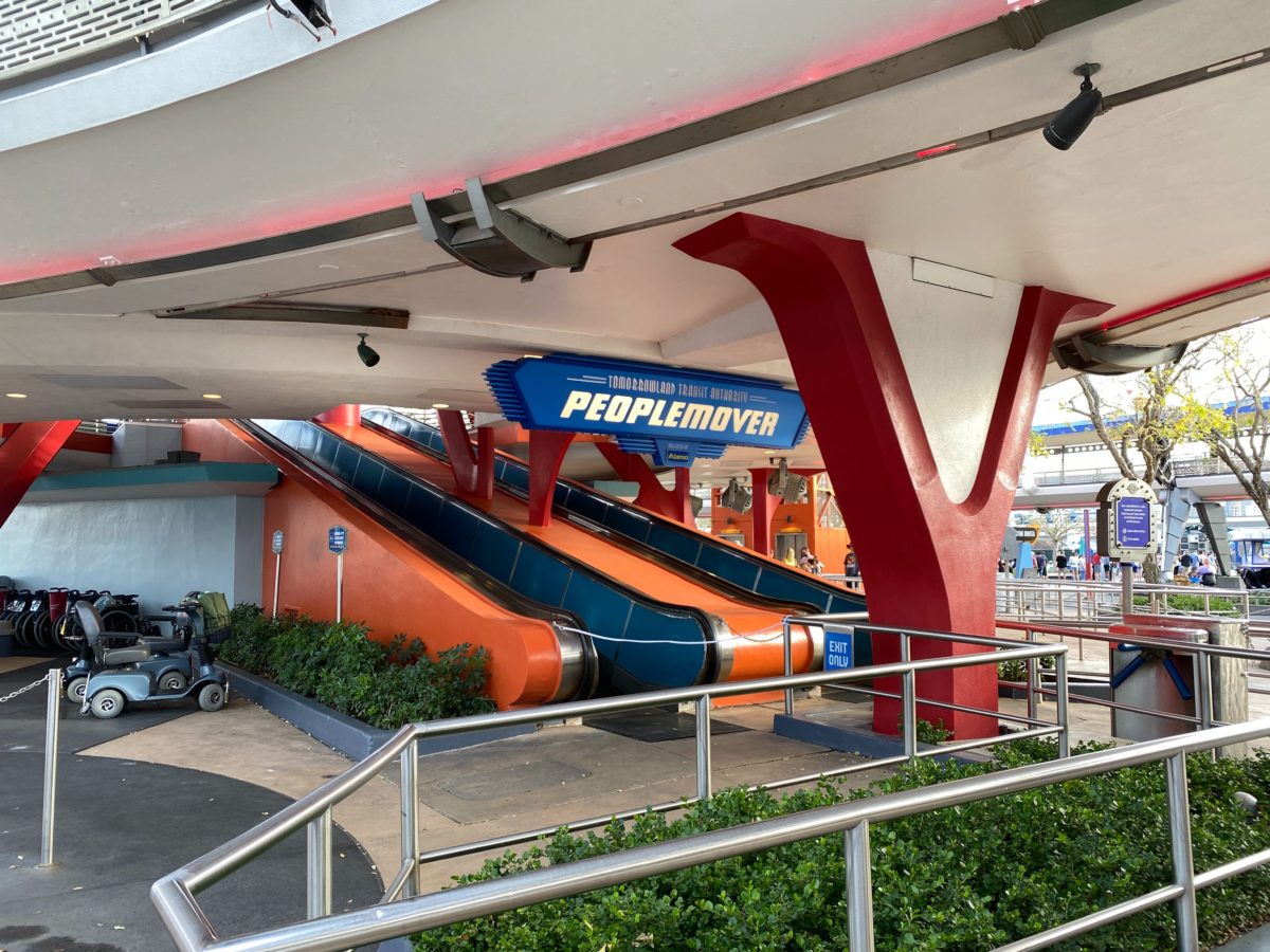 The attraction is expected to be closed all day today, with no known reopening date in the coming days. An A-frame sign was placed just outside the queue informing guests that the PeopleMover is not operating at this time.
