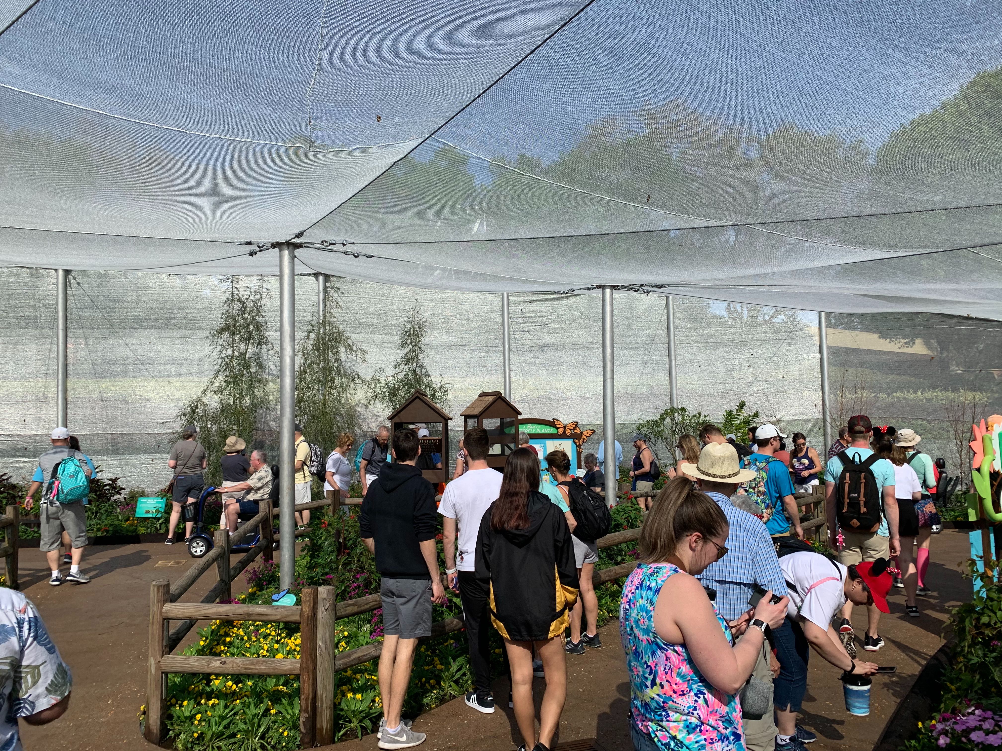 The Goodness Garden Butterfly House has a new home this year in between The Land and the Imagination! Pavilion. If you recall past Flower & Garden Festivals, the butterfly garden activity was always located near Innoventions West, just off of Club Cool. With that whole area under demolition, the activity had to be relocated in order to find a new, more tranquil spot for the butterflies to rest.