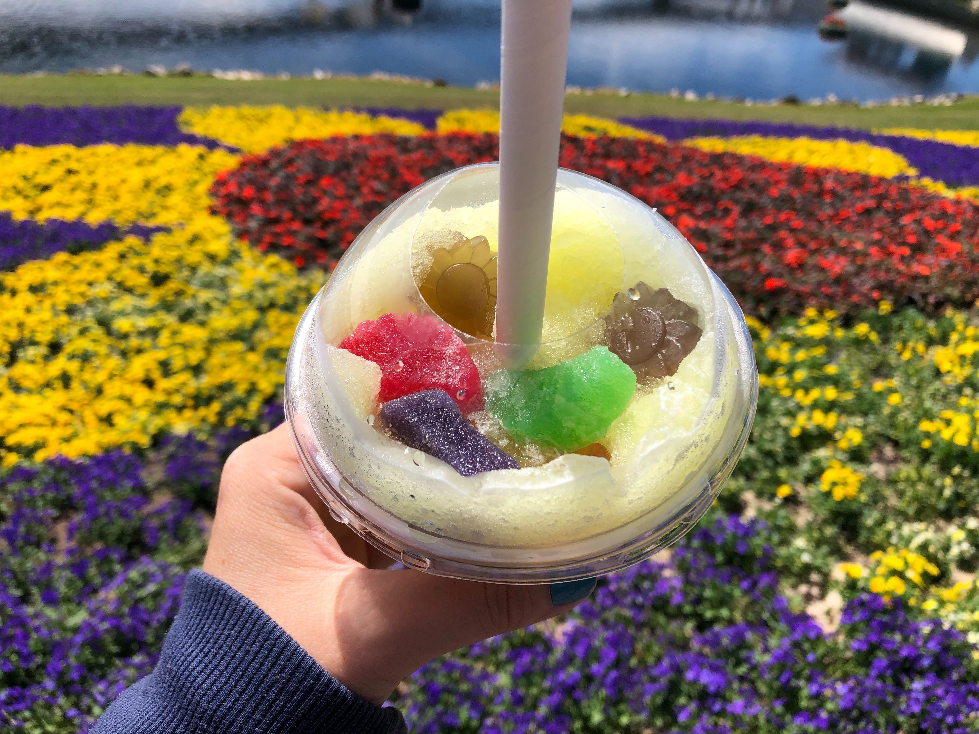 For the Flower & Garden festival, you have the option of Coca-Cola, Wild Cherry, Orange Cream, or Piña Colada flavored slushies. You can also then pick from candy pebbles (much like Nerds candy), gummy blossoms, gummy butterflies, and assorted fruit slices.