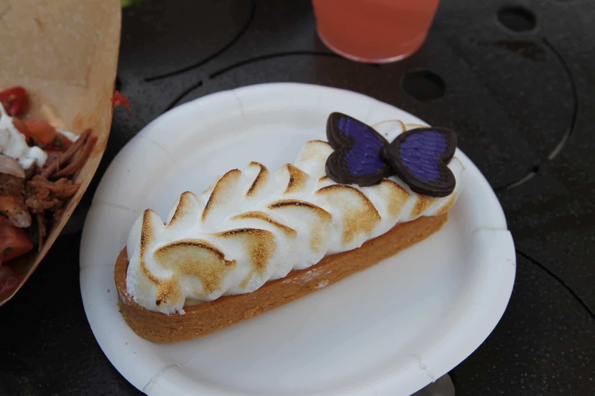 An extremely large dessert for the price, the key lime tart impresses on all levels. The tart ‘looks’ like it belongs at Flower and Garden, garnished with a festive edible butterfly. Below the layer of wonderfully toasted meringue you’ll find a distinct tart lime filling encased in a buttery crust. It’s a crowd favorite and one of the must gets of the festival. Recommended.